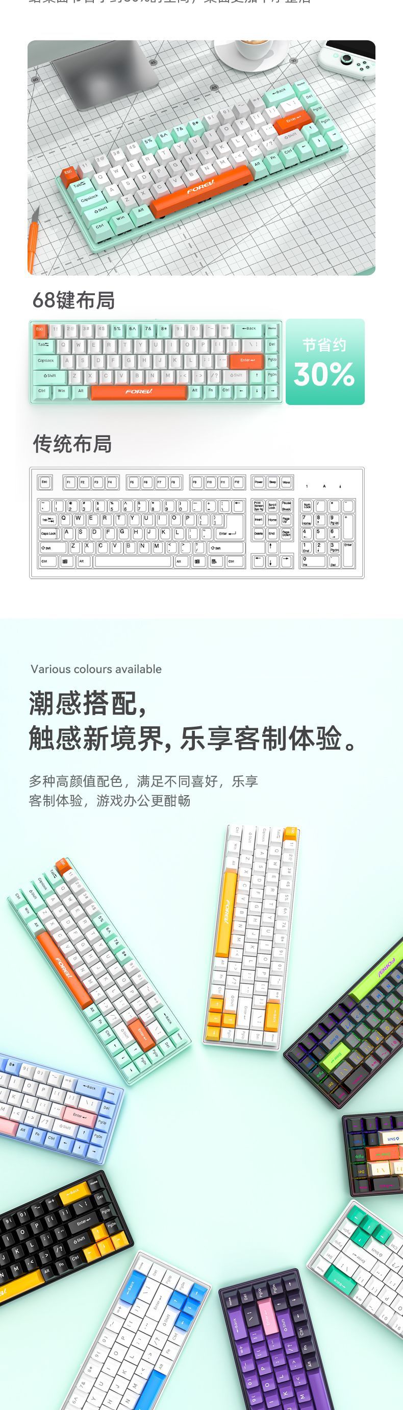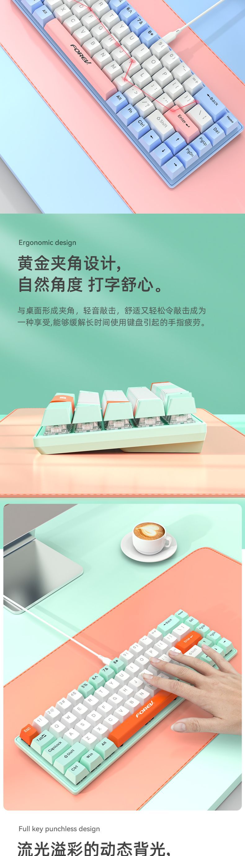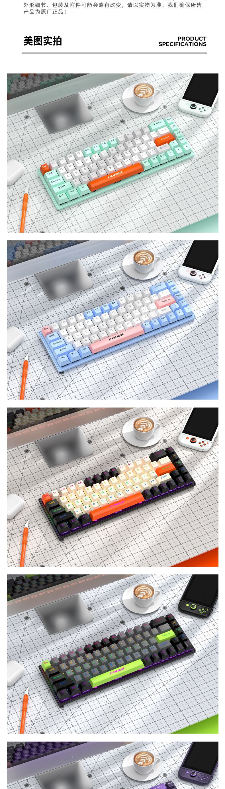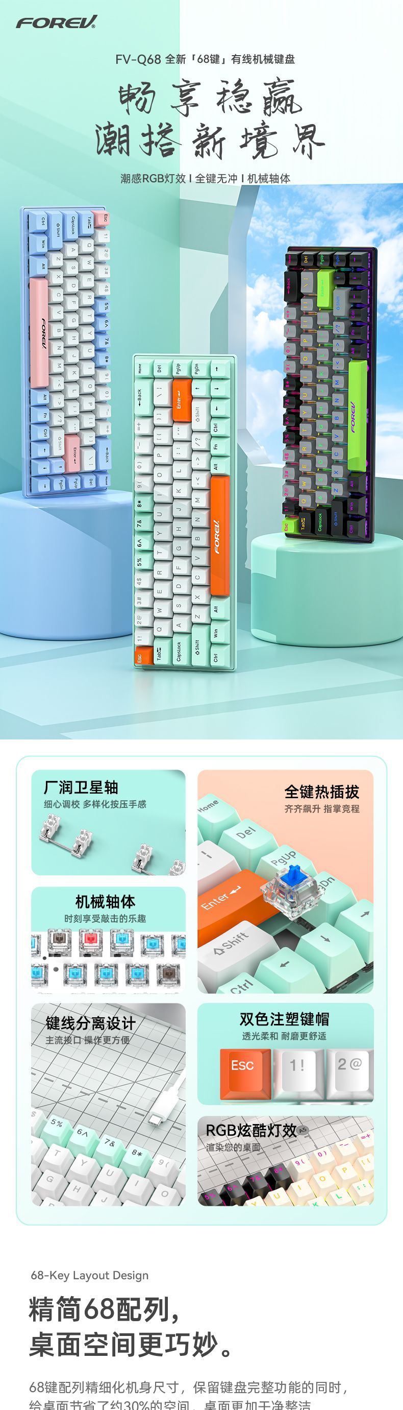유선 게임 e스포츠 RGB 러시아어 공동 브랜드 맞춤형 3모드 기계식 키보드 FV-Q68 컴퓨터 휴대용 키보드스토어 가기