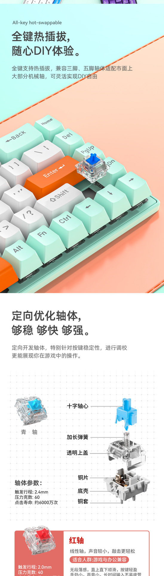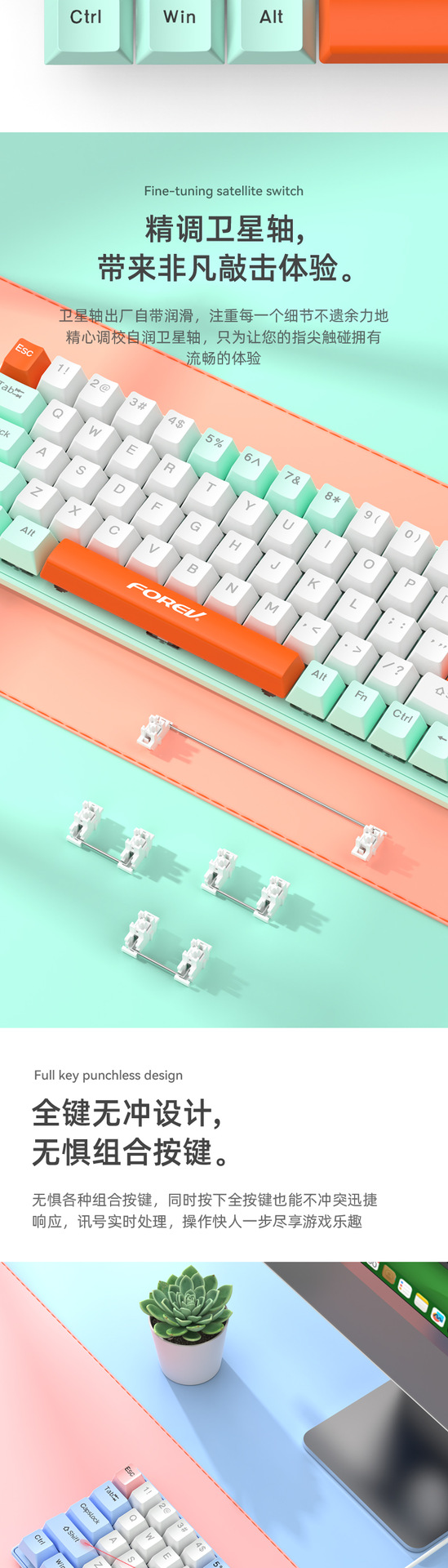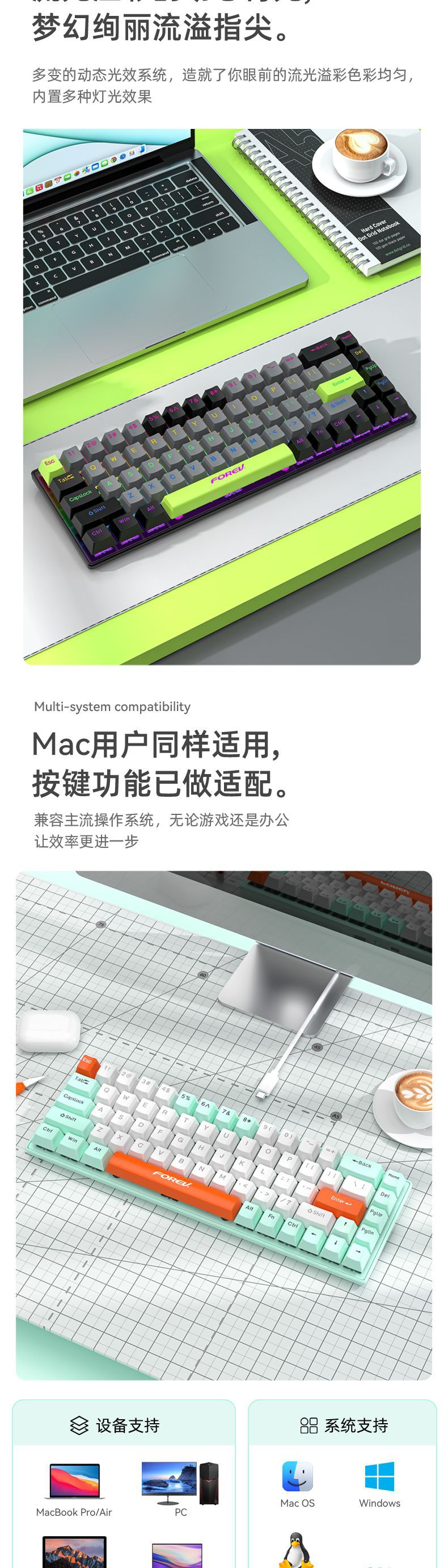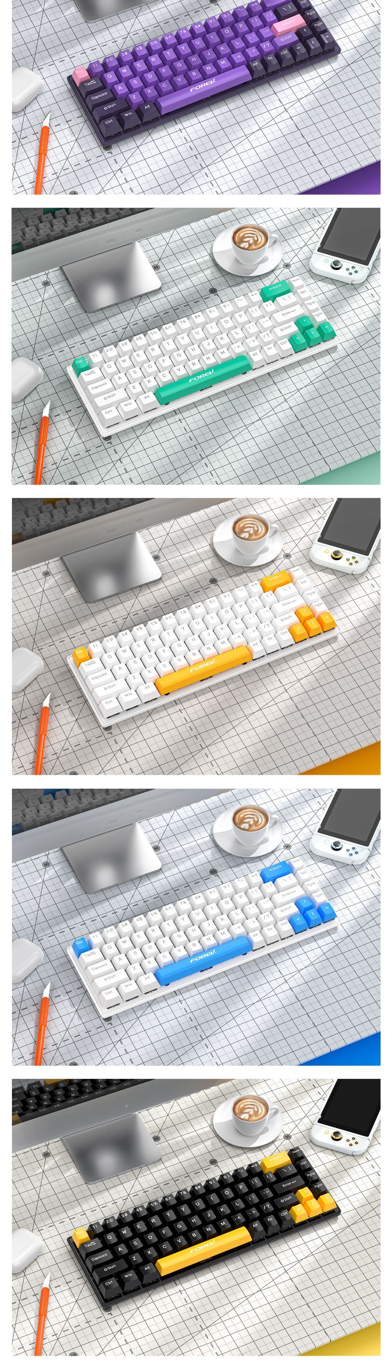 유선 게임 e스포츠 RGB 러시아어 공동 브랜드 맞춤형 3모드 기계식 키보드 FV-Q68 컴퓨터 휴대용 키보드스토어 가기