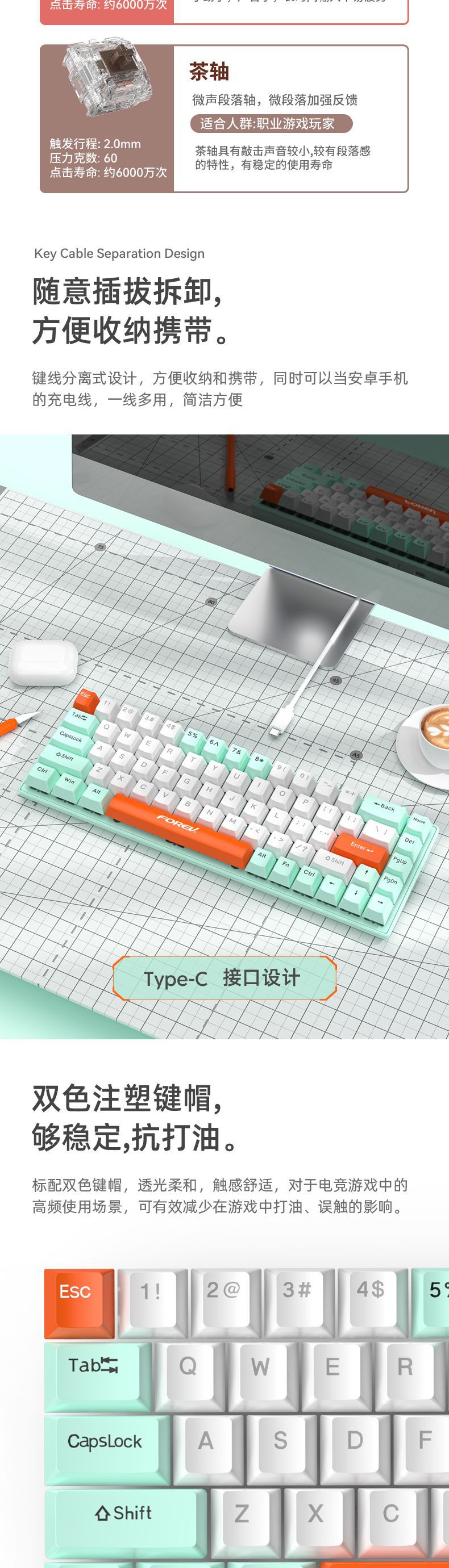 • 민트 녹색 단일 키보드 "키 라인 분리"