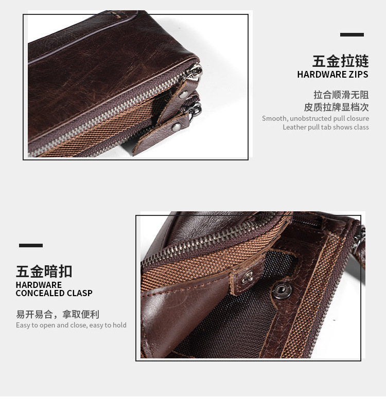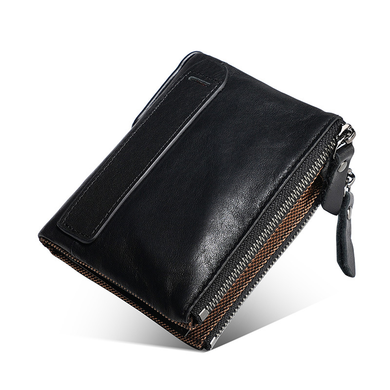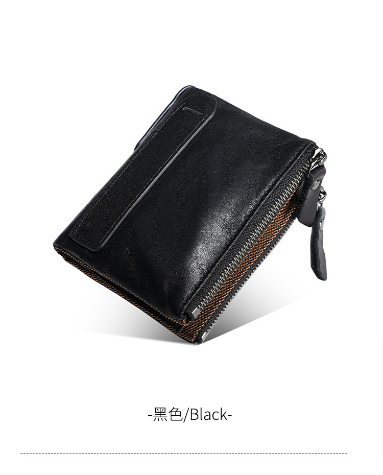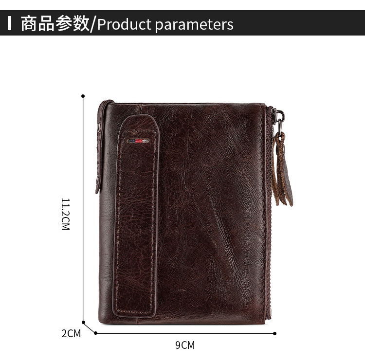 크레이지 호스 소가죽 남성 지갑 RFID 도난 방지 브러시 소가죽 짧은 남성 티켓 클립 지갑 더블 지퍼 동전 지갑