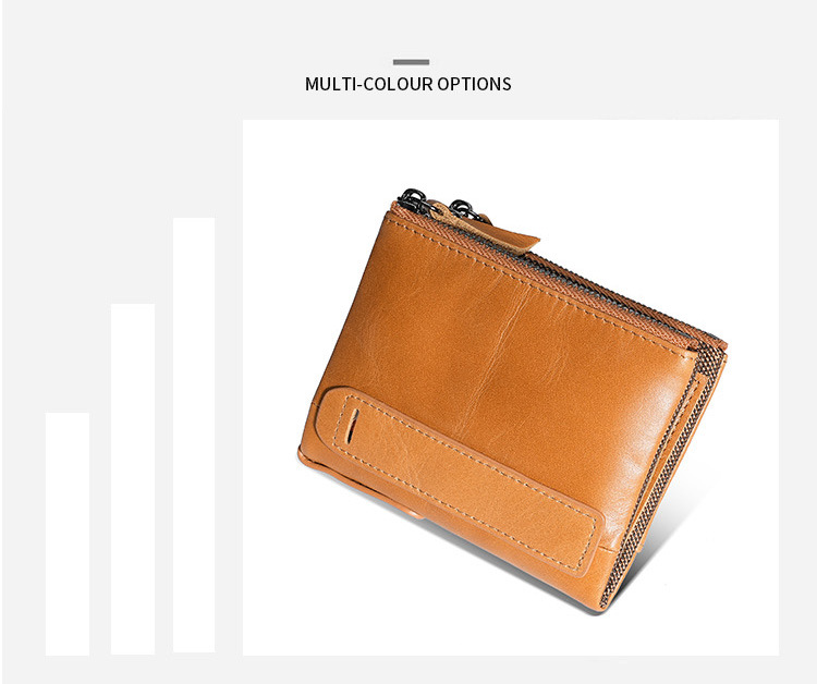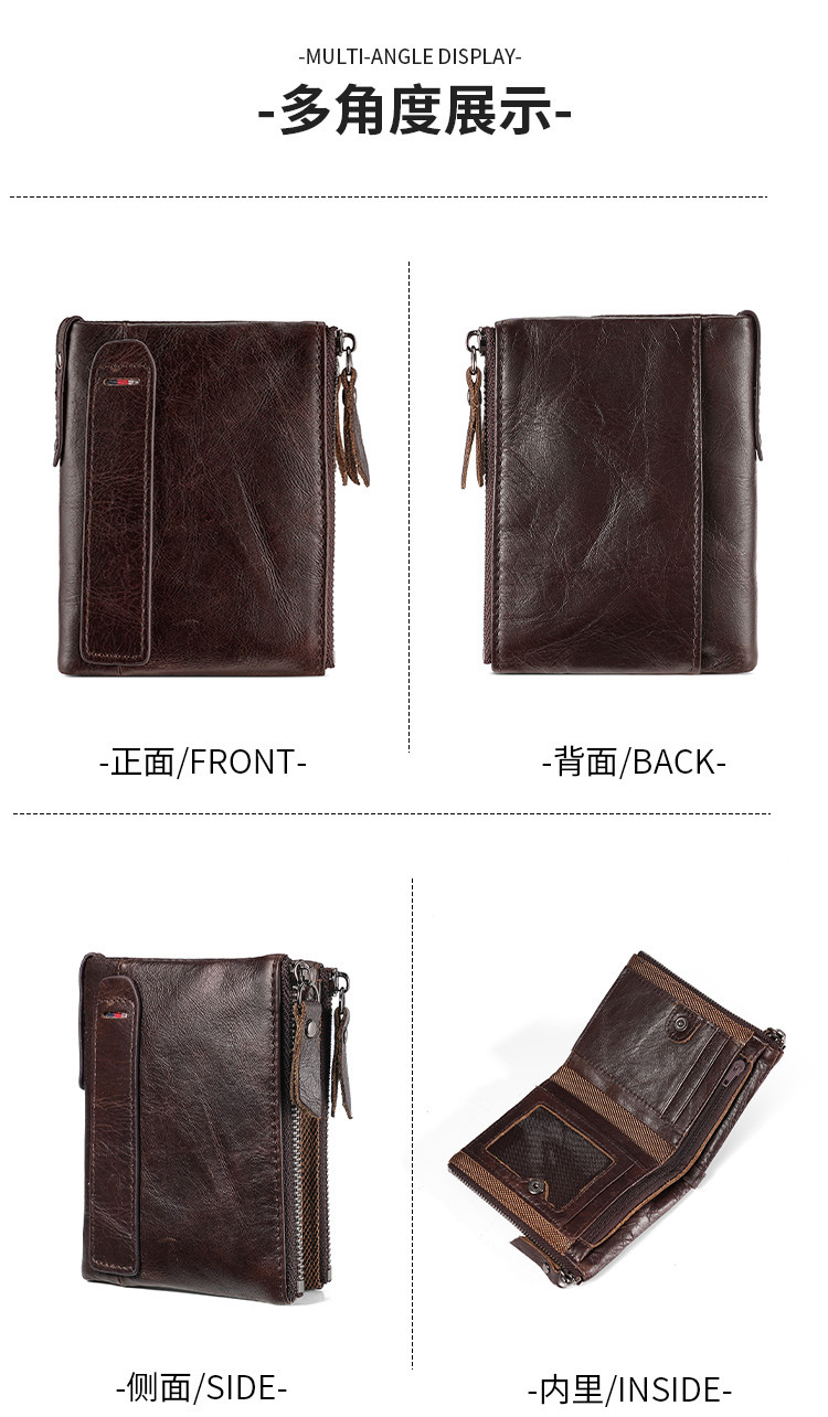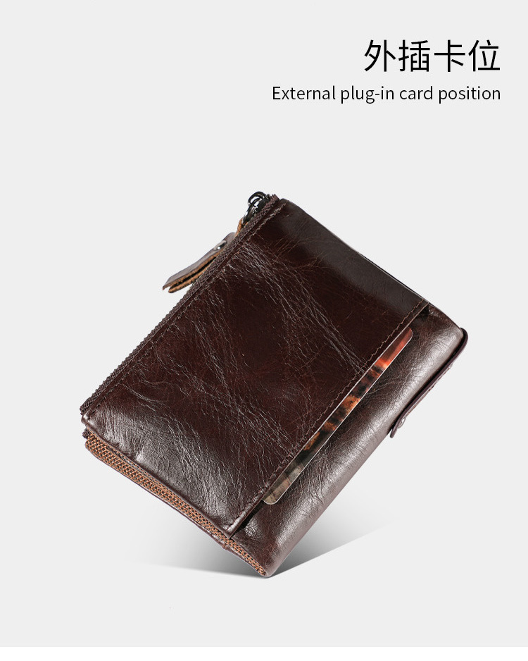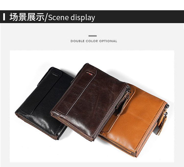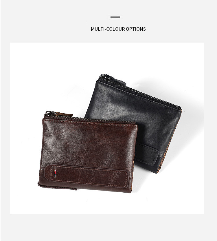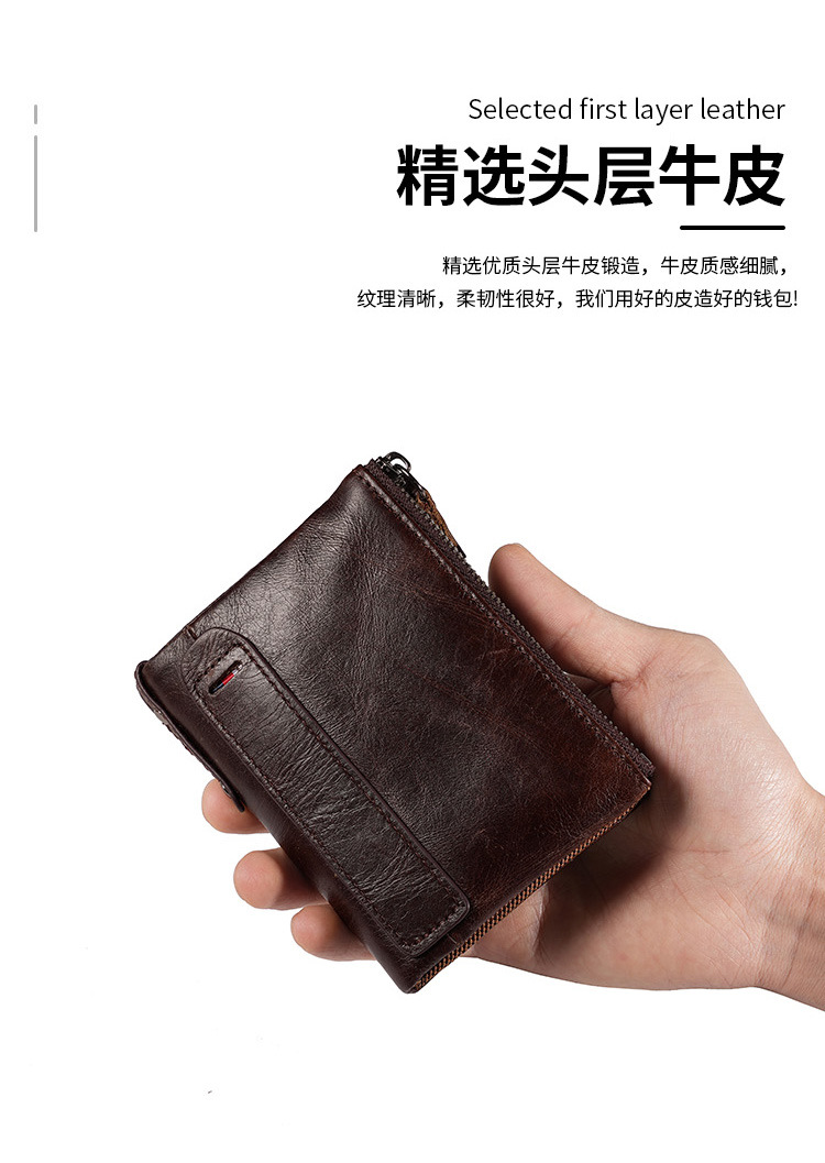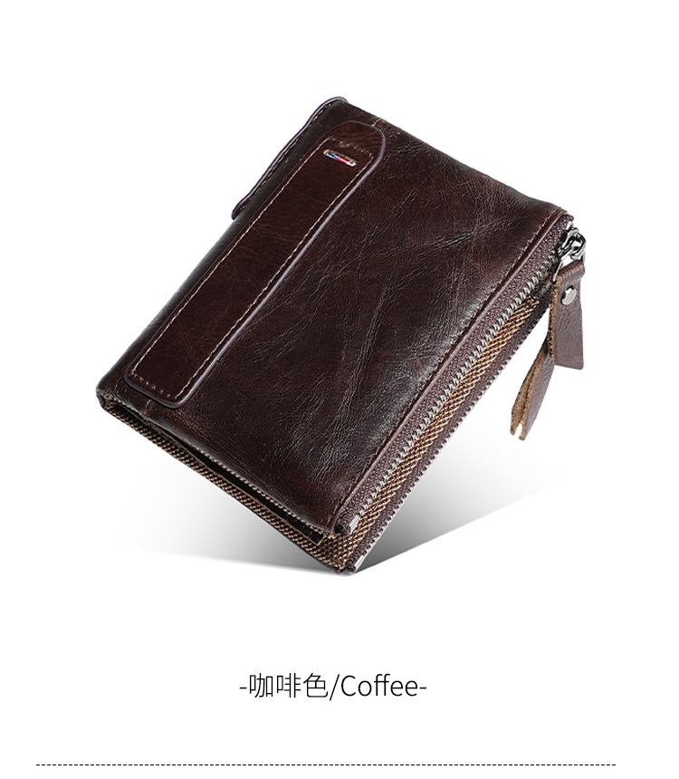 크레이지 호스 소가죽 남성 지갑 RFID 도난 방지 브러시 소가죽 짧은 남성 티켓 클립 지갑 더블 지퍼 동전 지갑스토어 가기