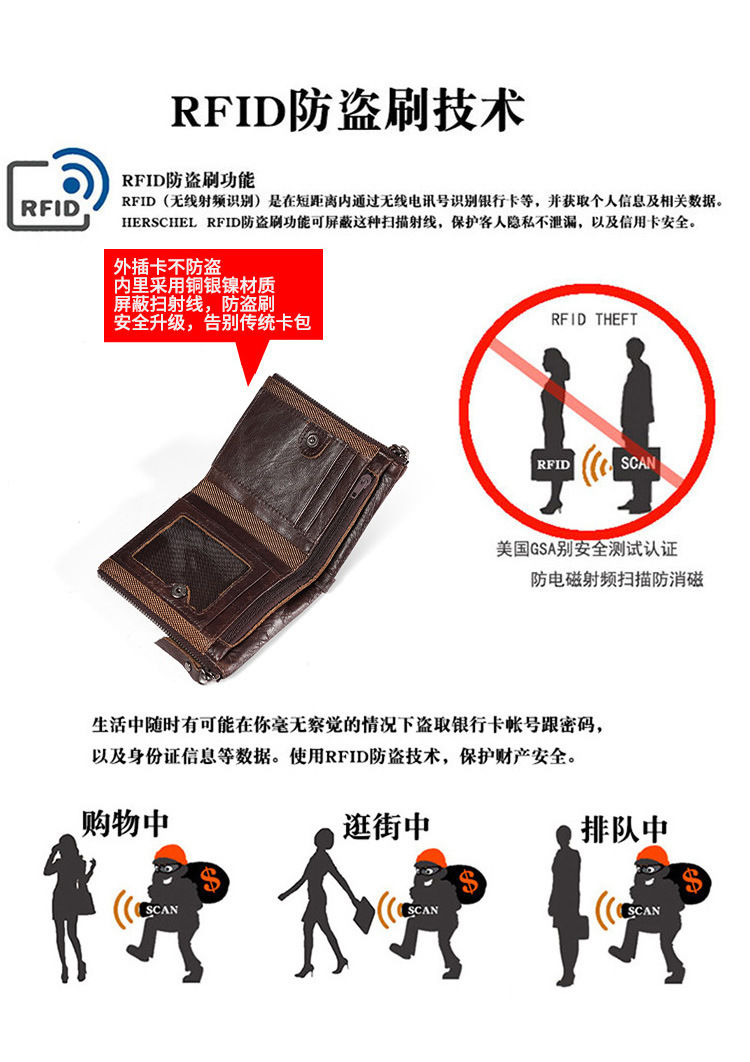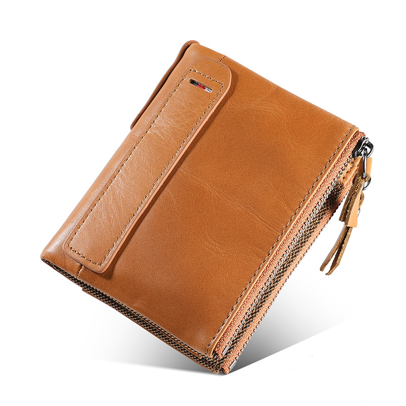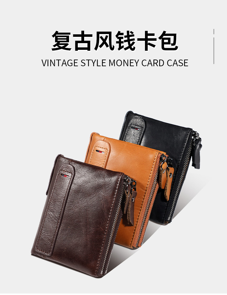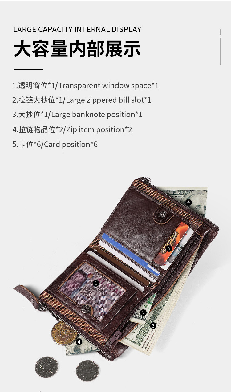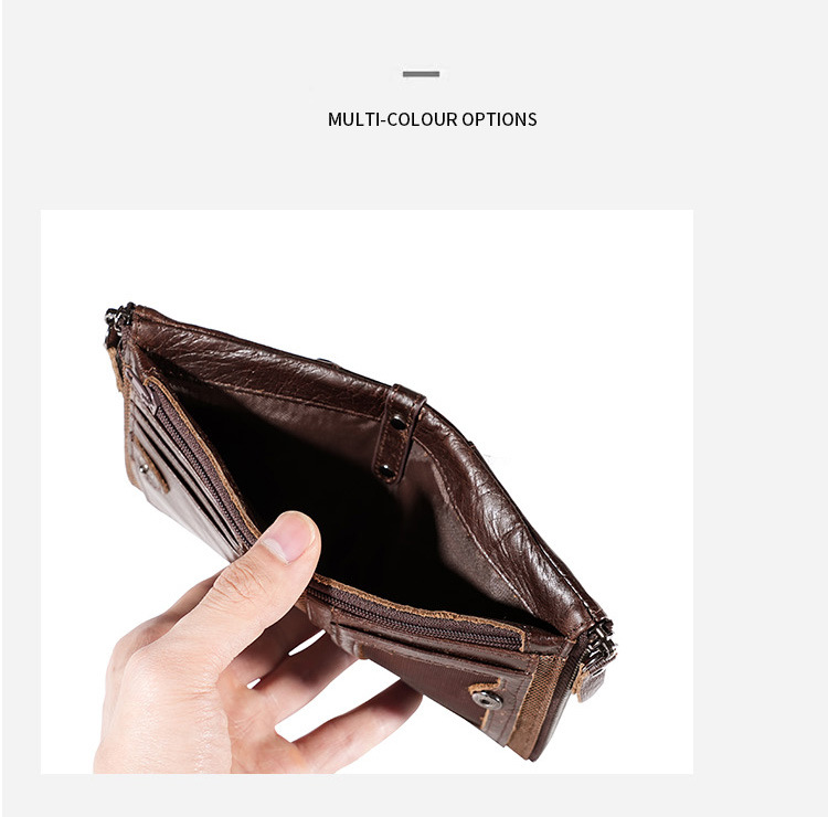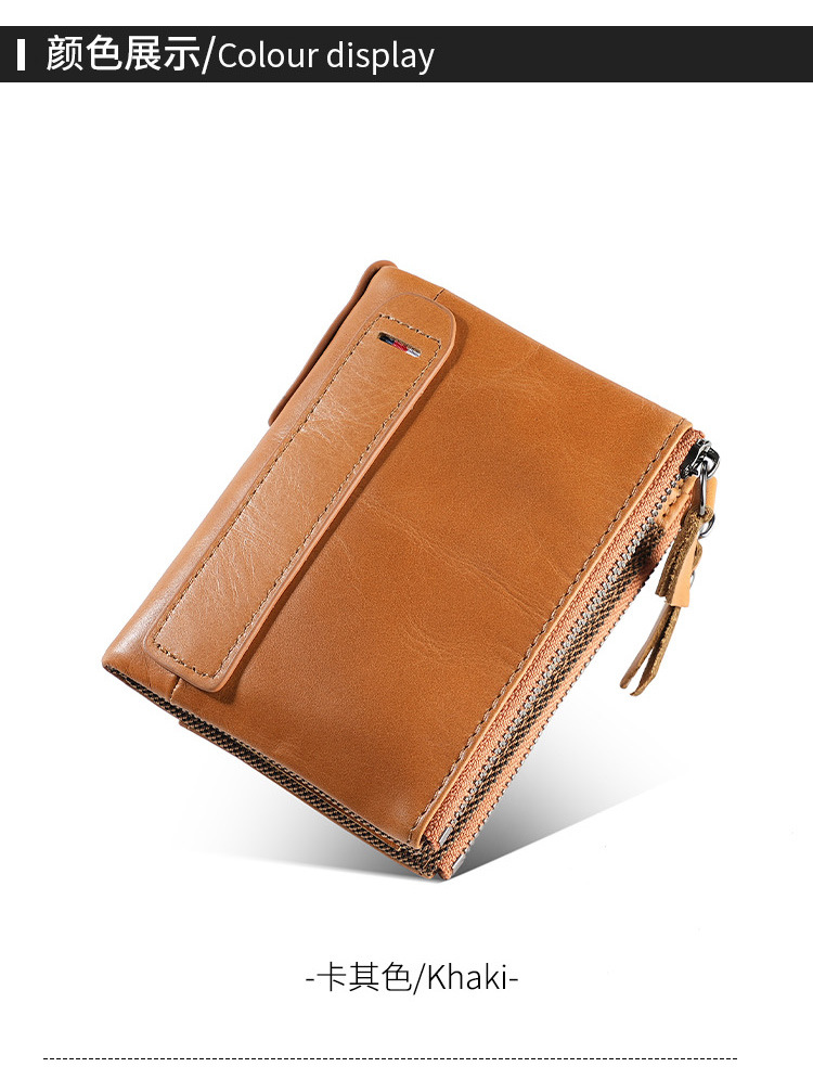 크레이지 호스 소가죽 남성 지갑 RFID 도난 방지 브러시 소가죽 짧은 남성 티켓 클립 지갑 더블 지퍼 동전 지갑스토어 가기