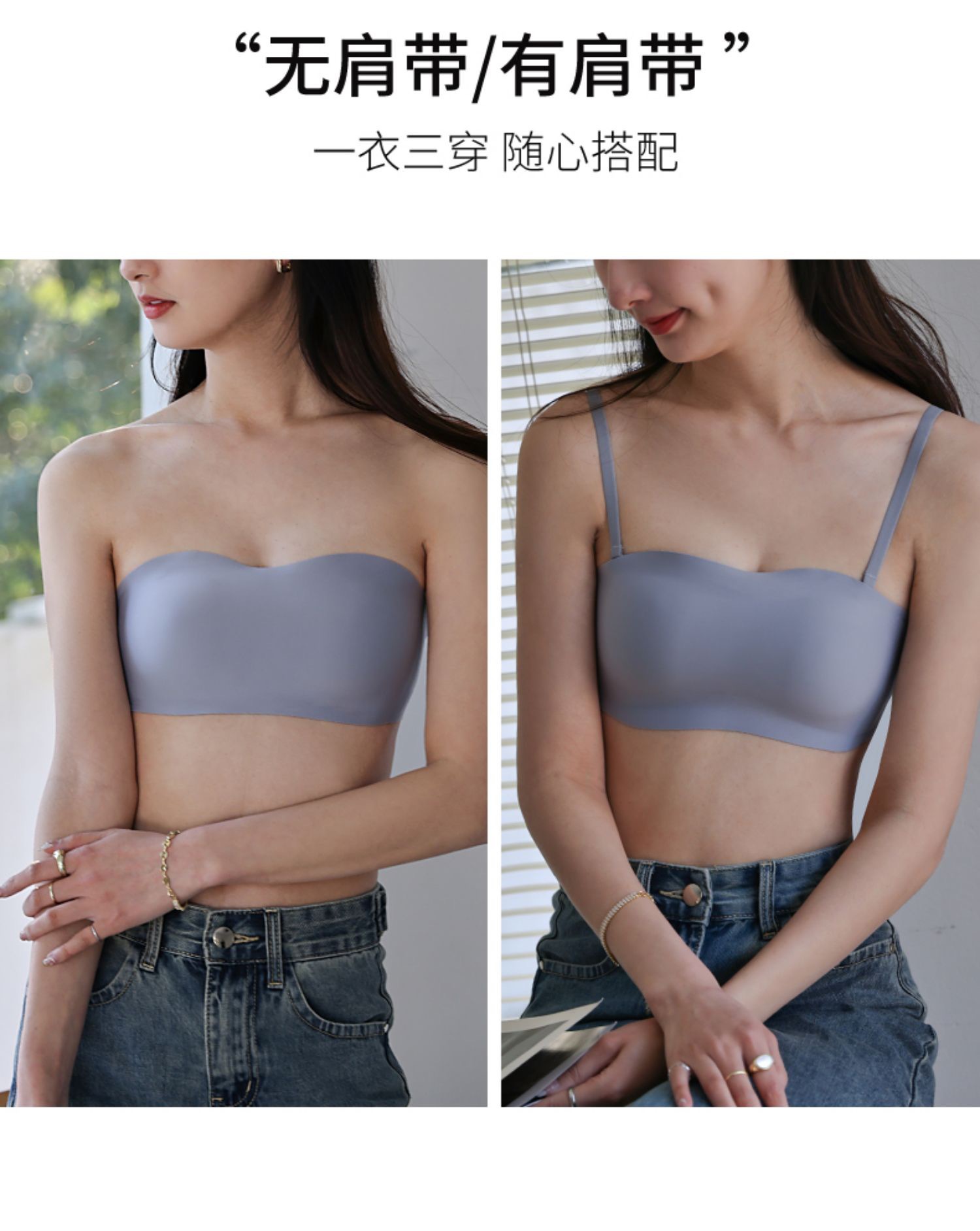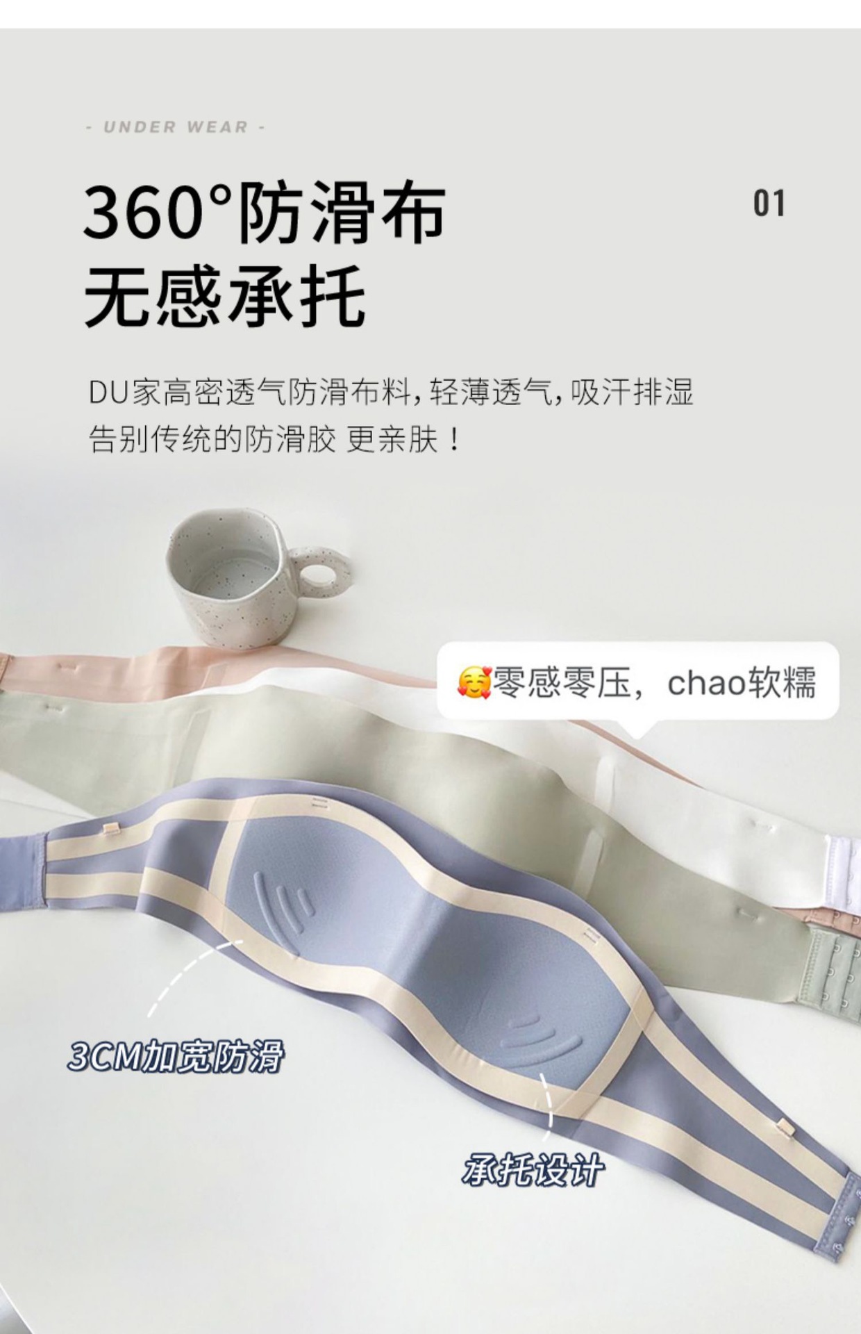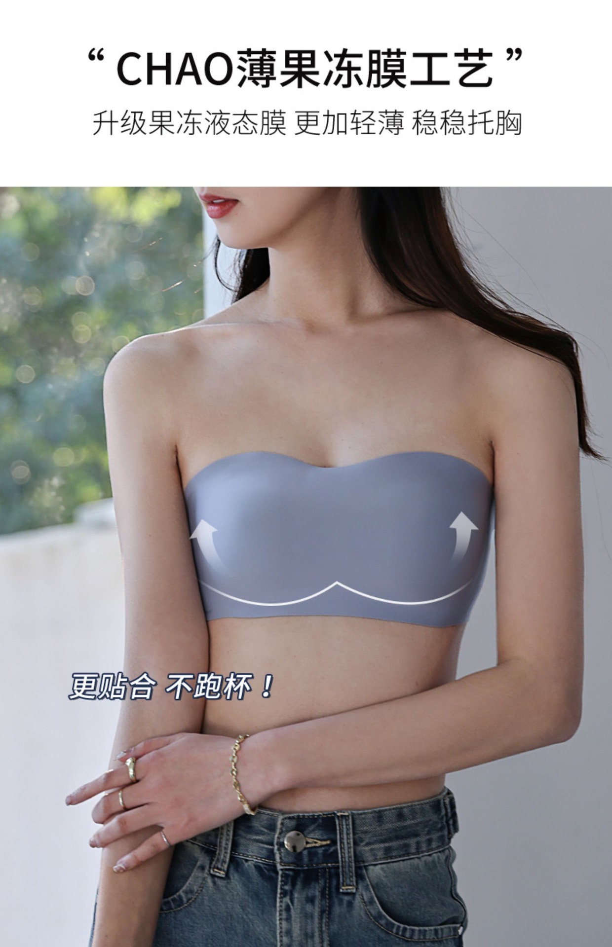 여름 끈이없는 속옷 여성용 미끄럼 방지 드롭 푸시 업 보이지 않는 끈이없는 비 스틸 링 아름다운 등 브래지어 얇은스토어 가기
