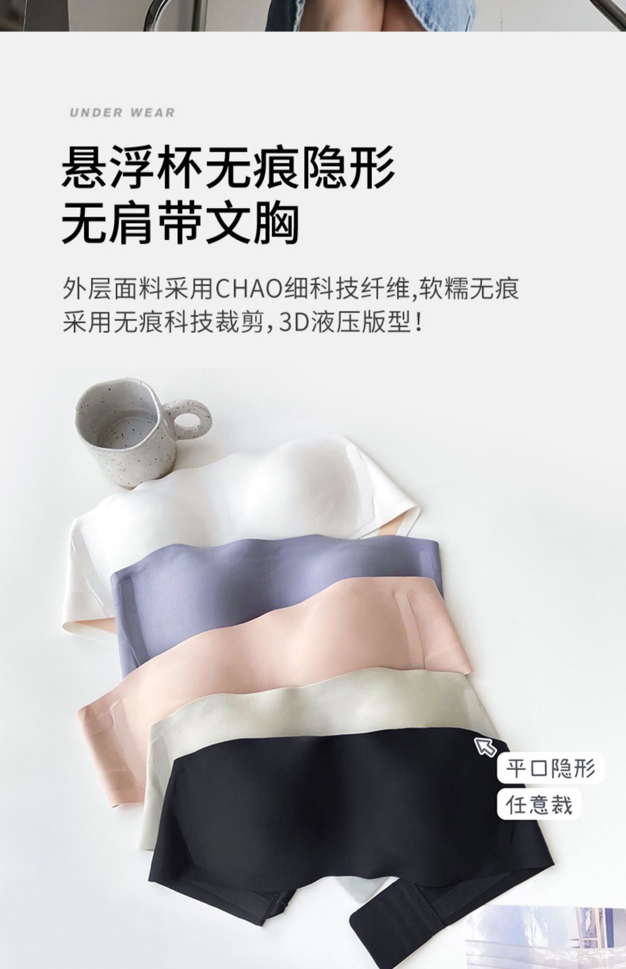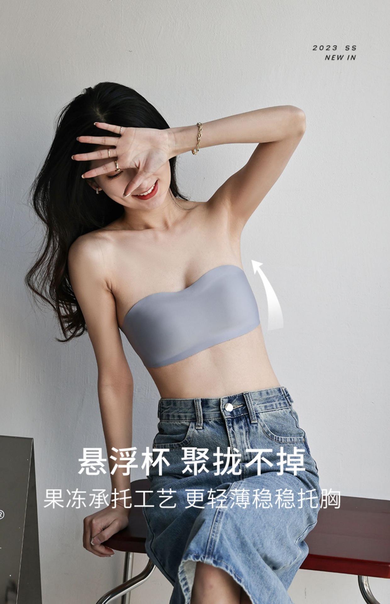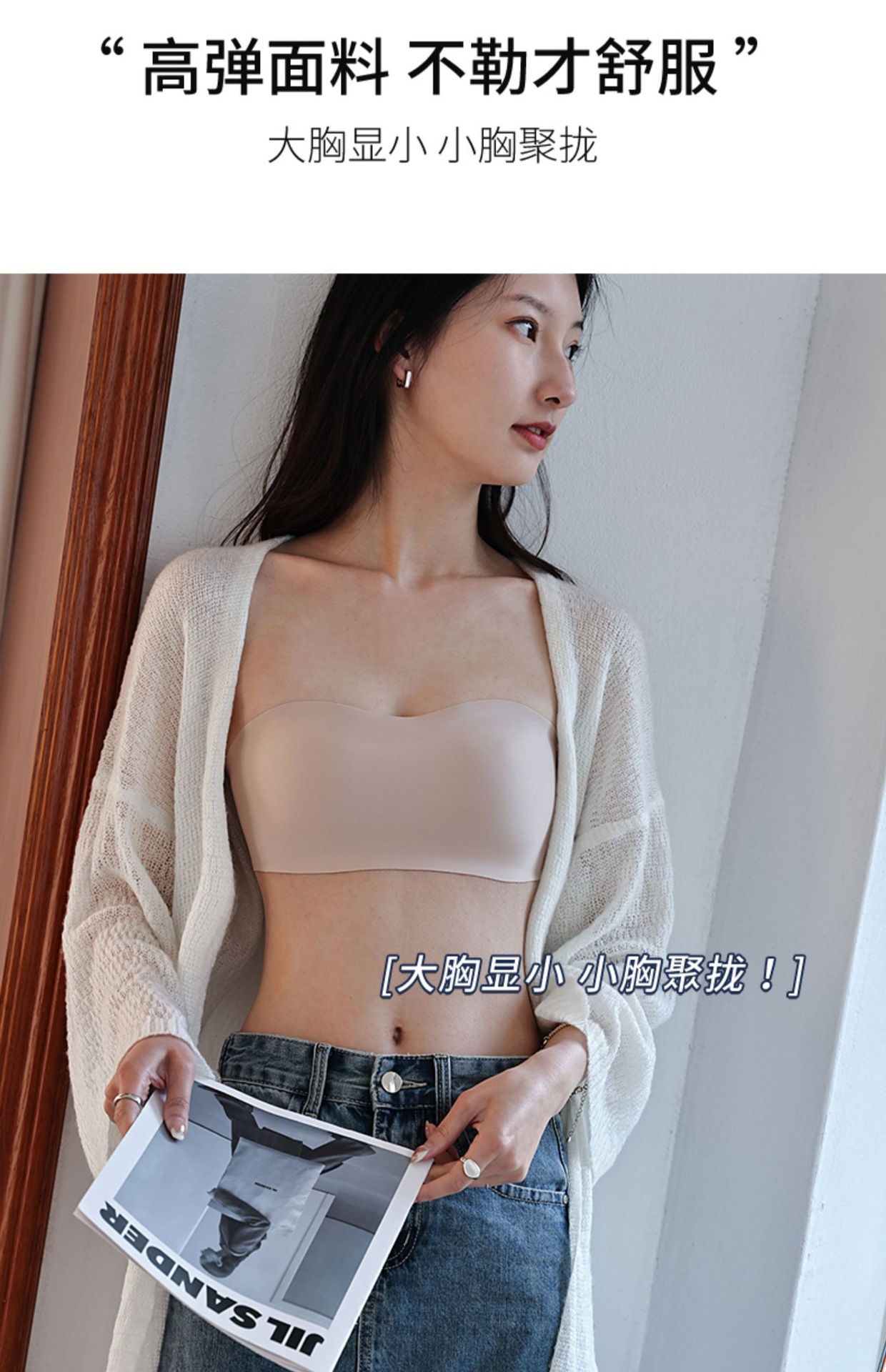 여름 끈이없는 속옷 여성용 미끄럼 방지 드롭 푸시 업 보이지 않는 끈이없는 비 스틸 링 아름다운 등 브래지어 얇은스토어 가기