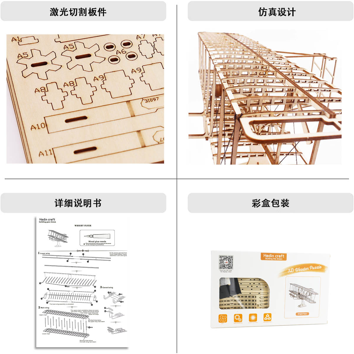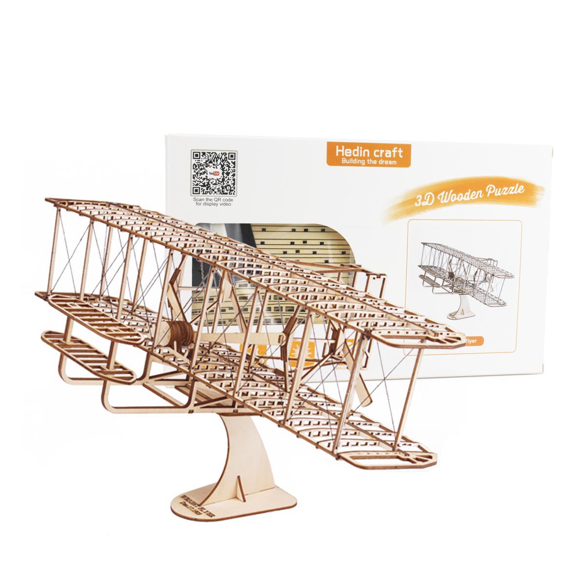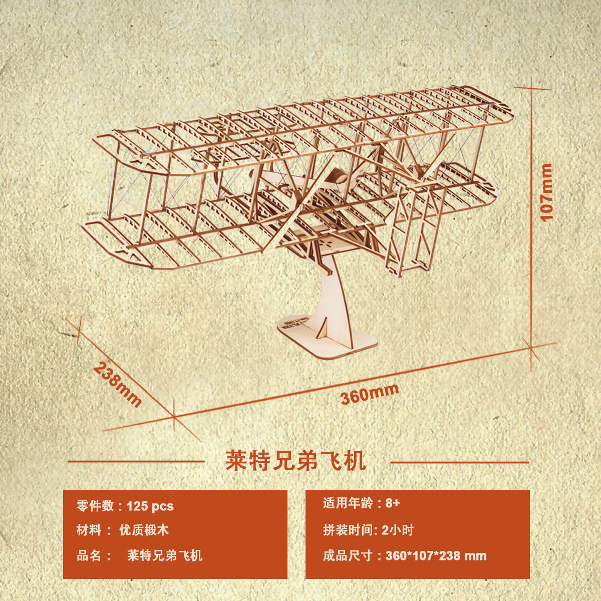 라이트 형제 나무 비행기 모형 접합 3 차원 퍼즐 선물 어린이 교육 공예 장식품스토어 가기