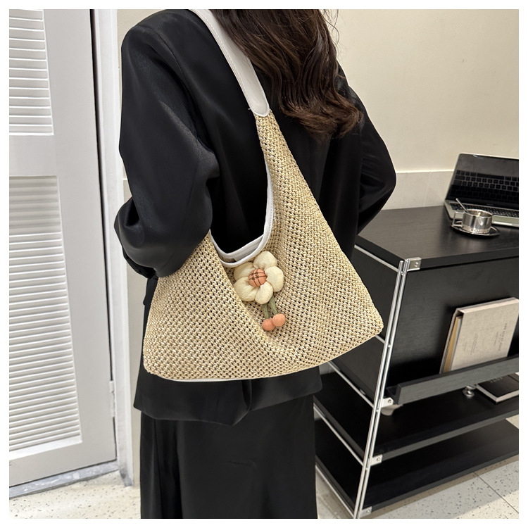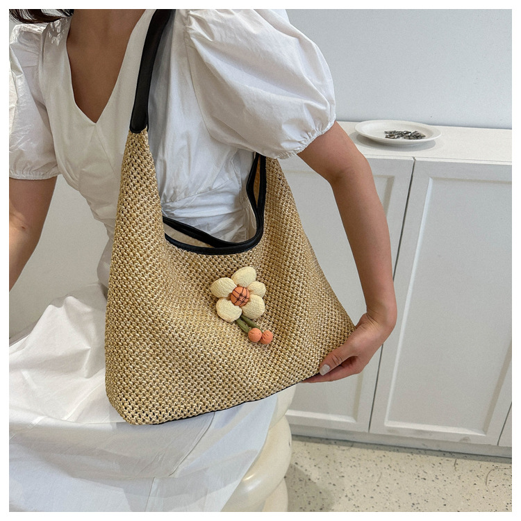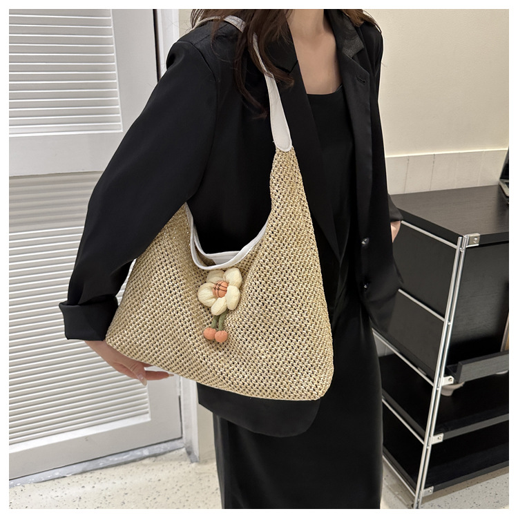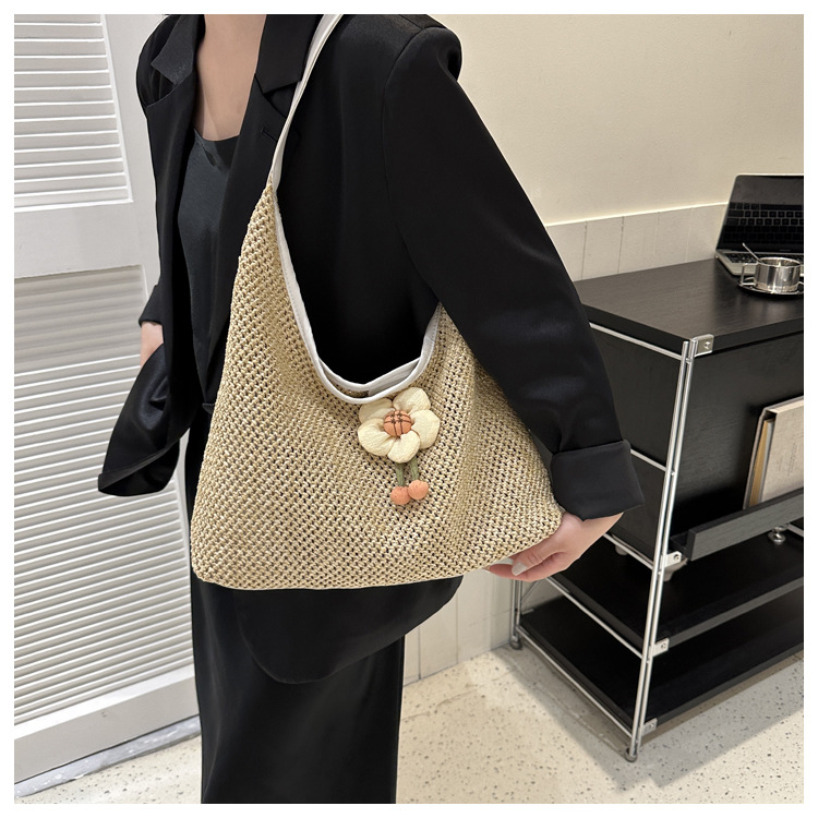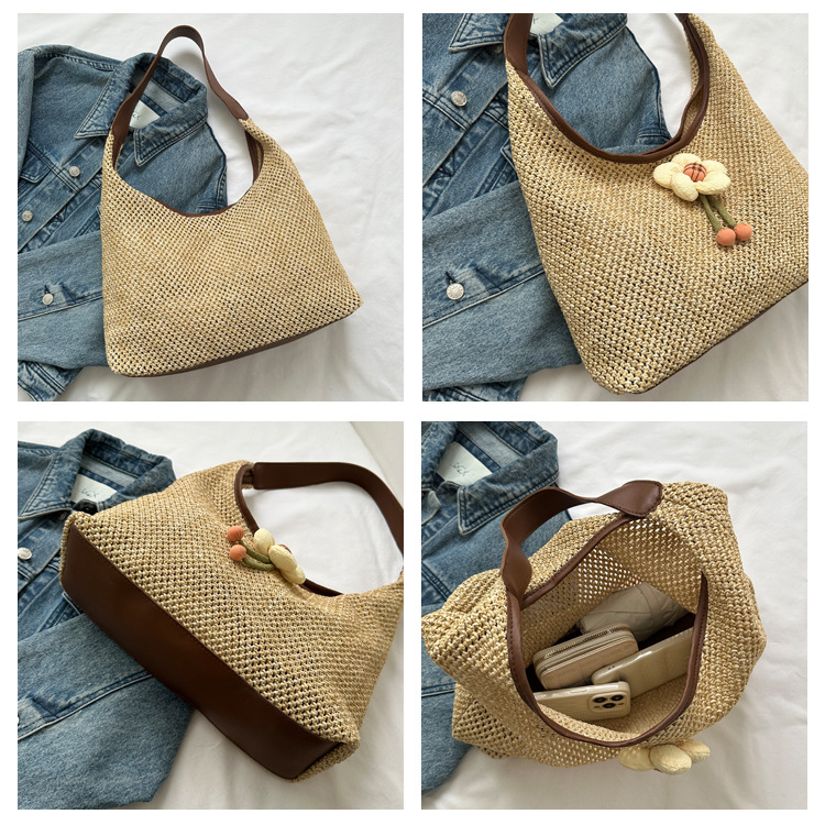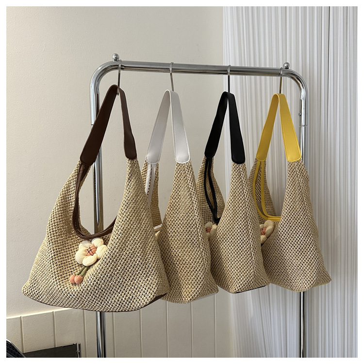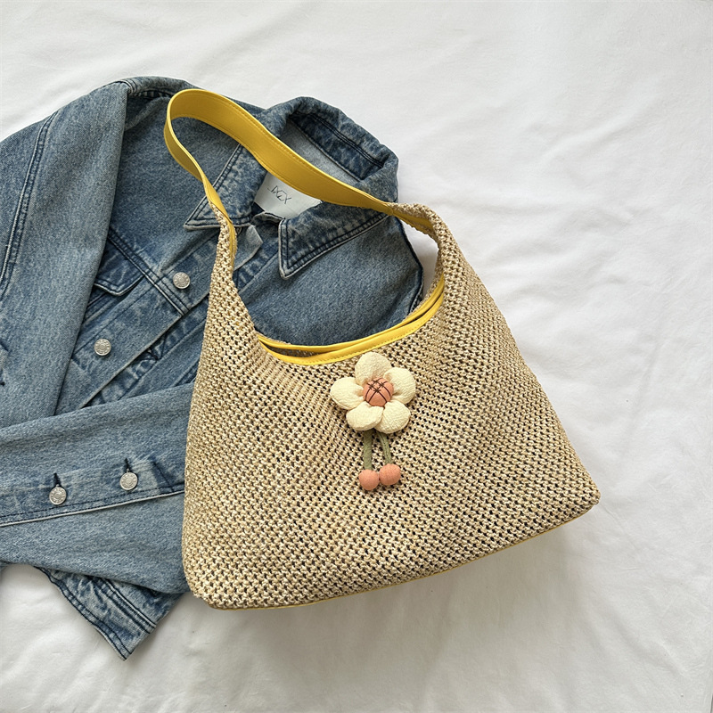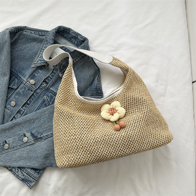 대용량 패셔너블하고 우아한 꽃무늬 직조 숄더백 여성용 2025 여름 신상 겨드랑이백 토트백스토어 가기