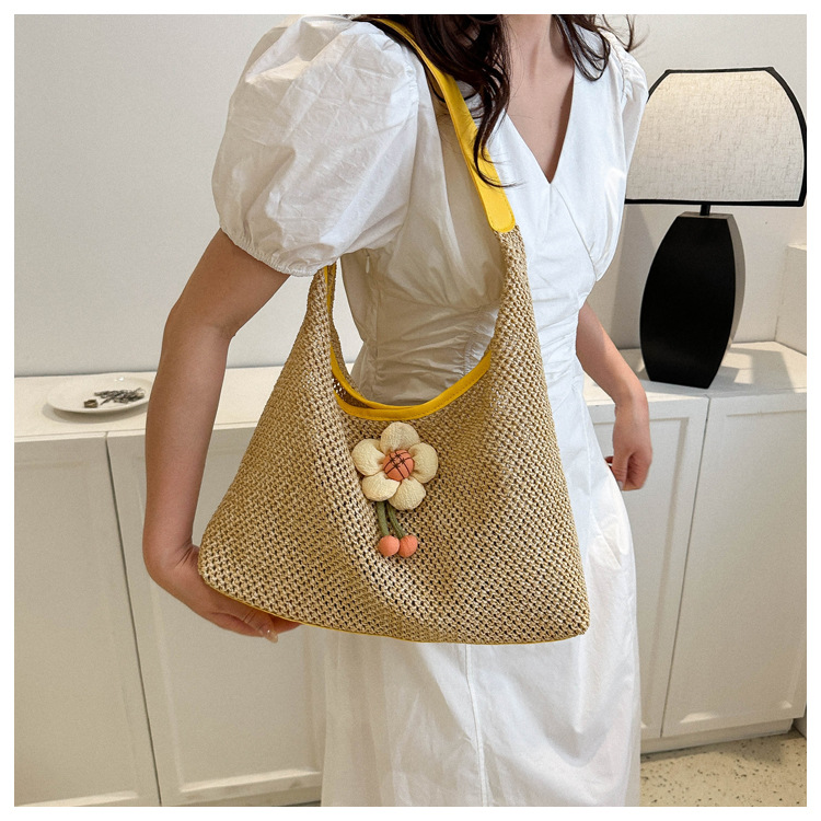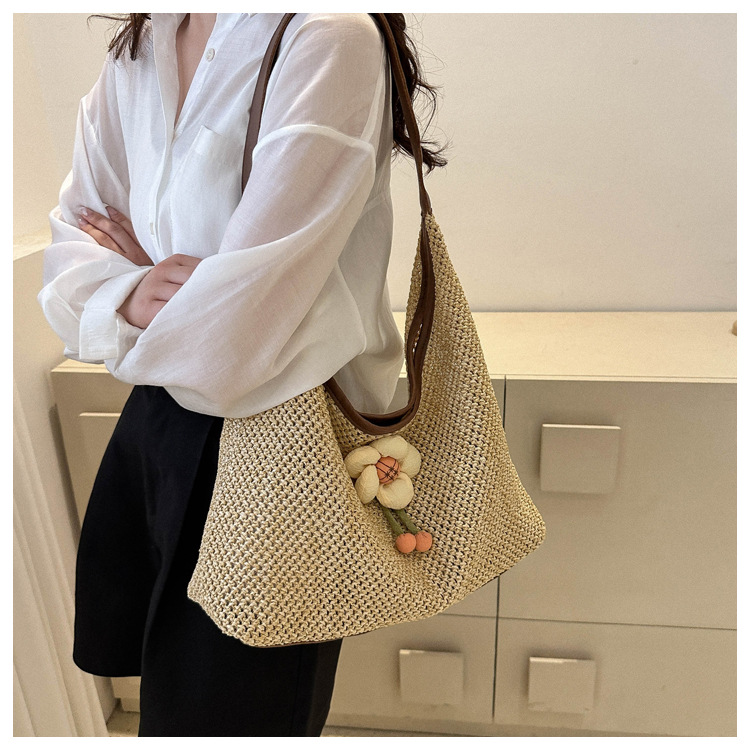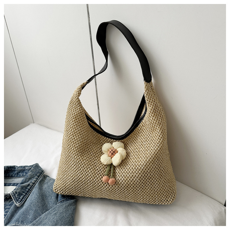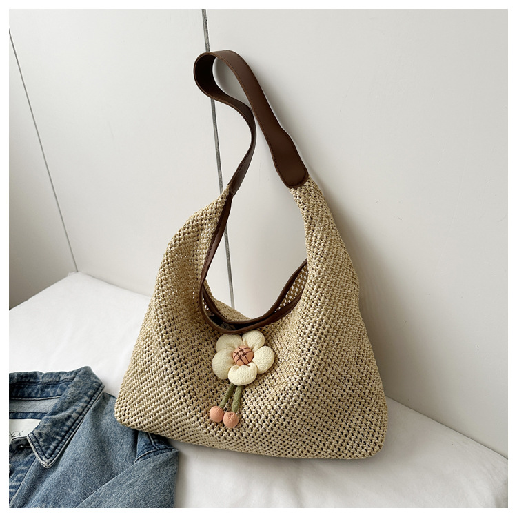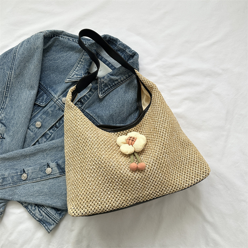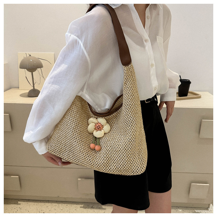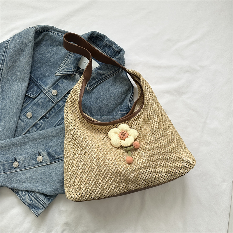 대용량 패셔너블하고 우아한 꽃무늬 직조 숄더백 여성용 2025 여름 신상 겨드랑이백 토트백스토어 가기