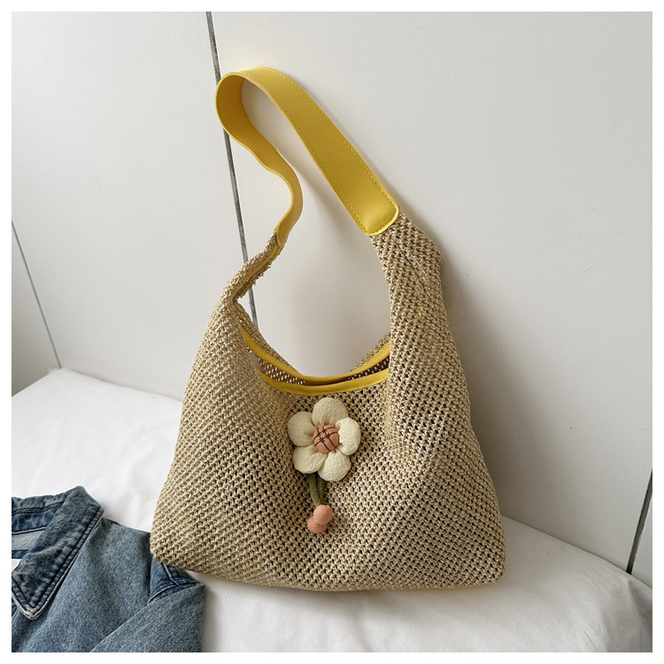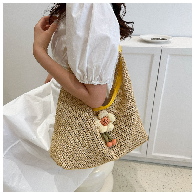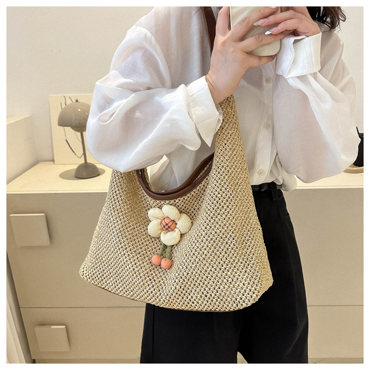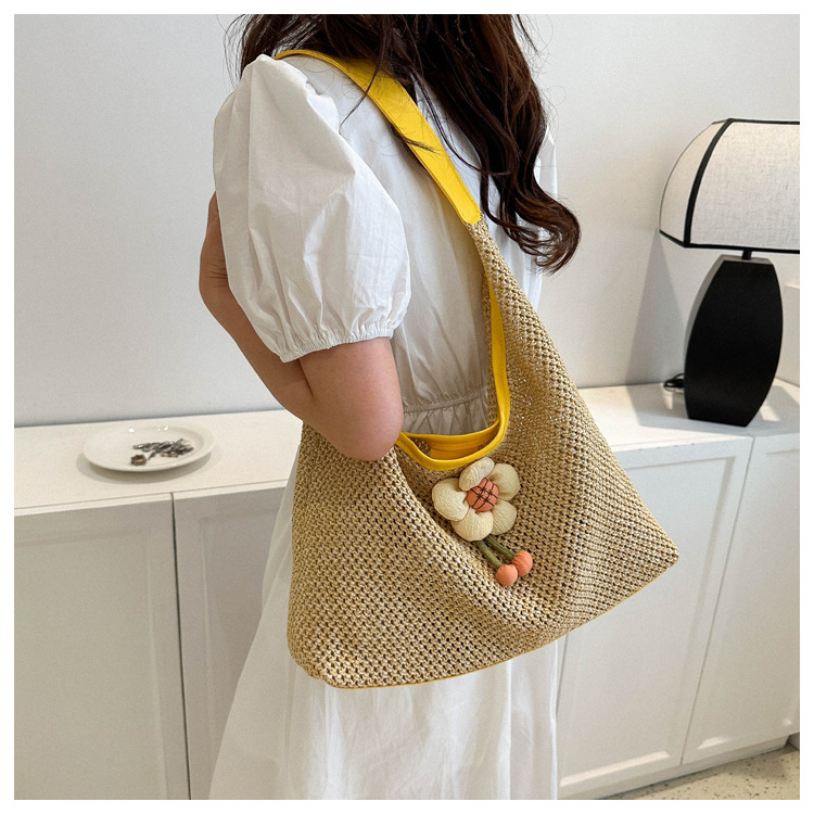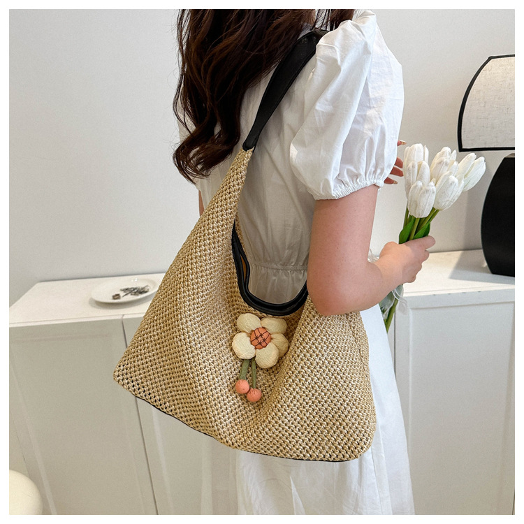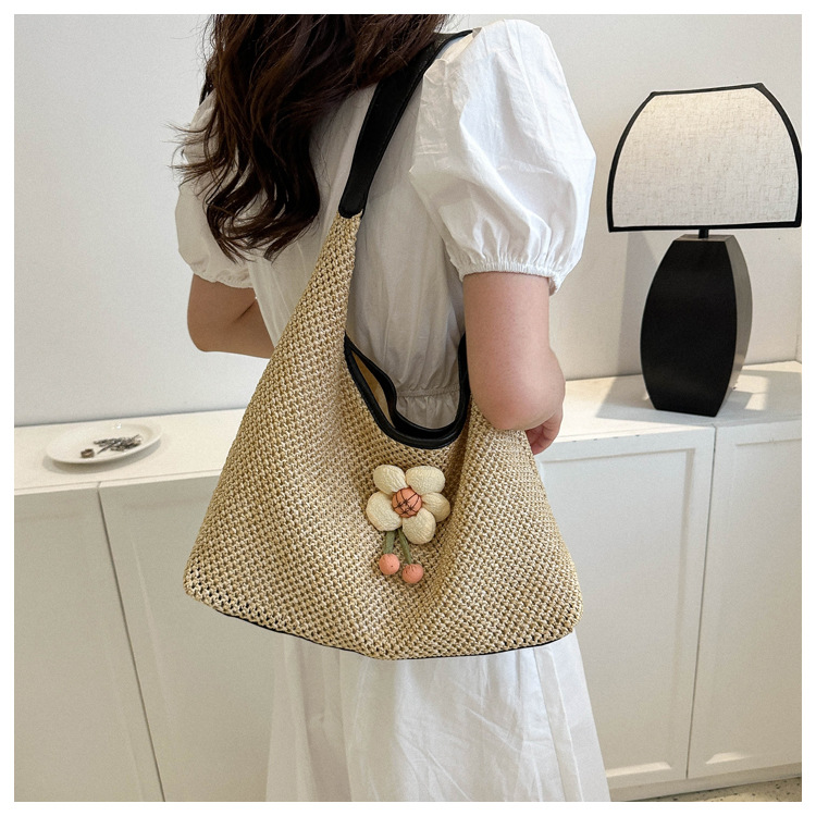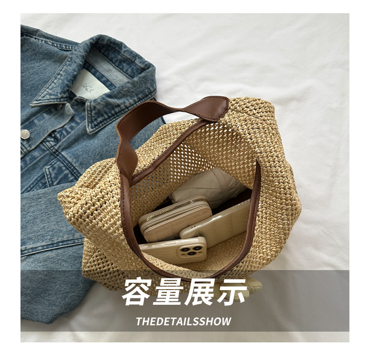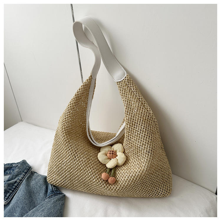 대용량 패셔너블하고 우아한 꽃무늬 직조 숄더백 여성용 2025 여름 신상 겨드랑이백 토트백스토어 가기