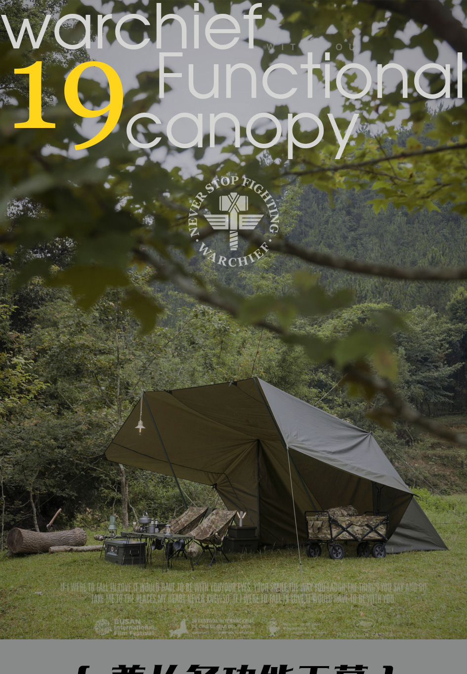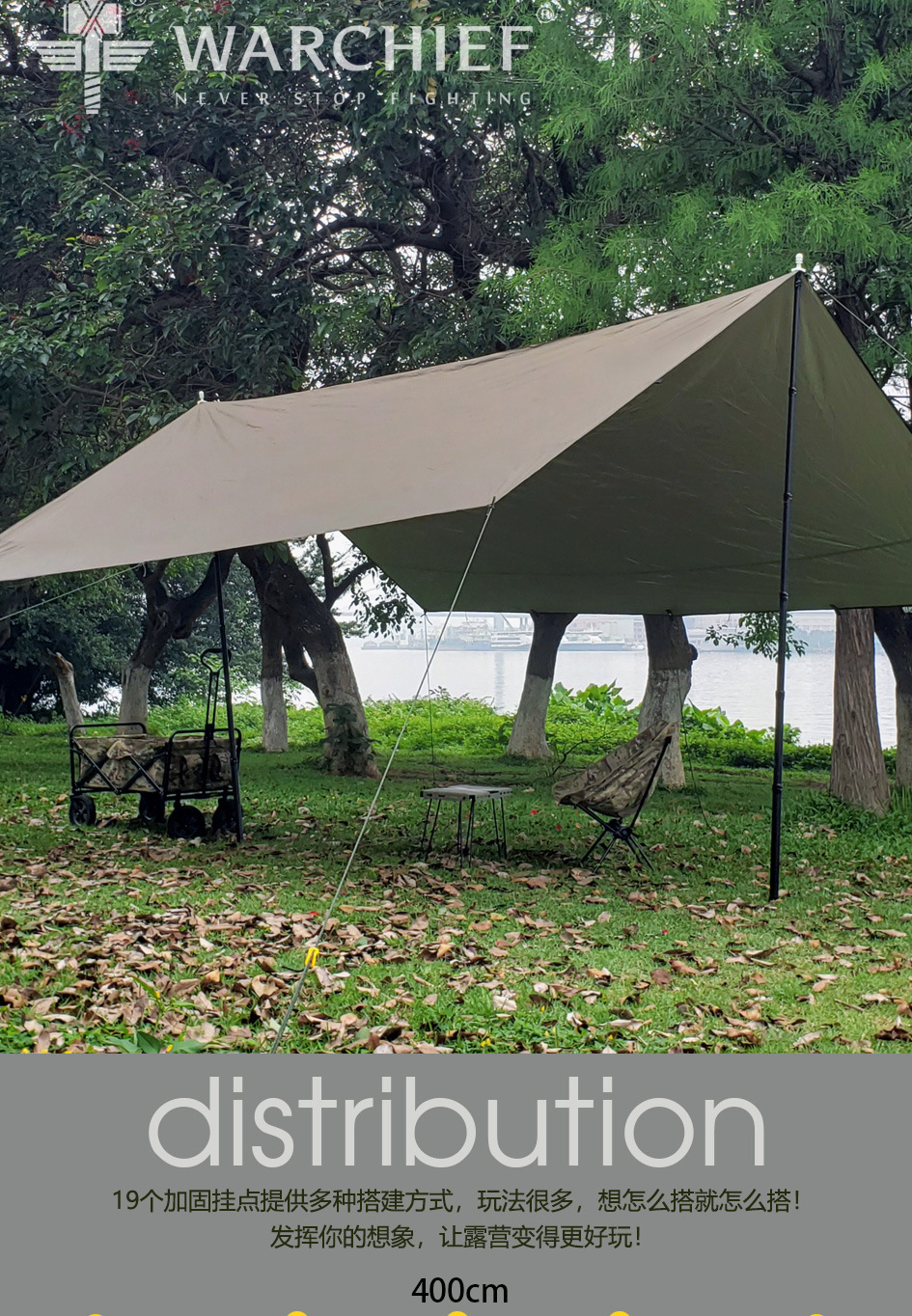Chieftain 스포츠 야외 캠핑 210T 실버 코팅 캐노피 텐트 19 교수형 포인트 캠핑 장비 방수 및 자외선 차단제스토어 가기