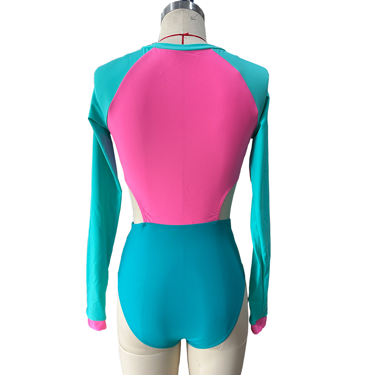 아마존 새로운 유럽과 미국의 패션 컬러 매칭 섹시 슬림 모양의 지퍼 수영복 여성용 꽉 긴팔 서핑 수트스토어 가기
