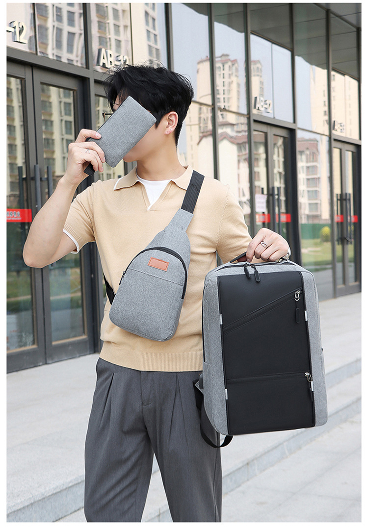 실용적인 심플한 남성용 비즈니스 쓰리 피스 크로스 보더 새로운 컴퓨터 백팩 남성용 대용량 학생 레저 백팩
