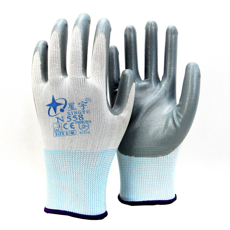 도매 정품 Xingyu N558 니트릴 담근 부드러운 내마모성 미끄럼 방지 내유성 기계 자동 수리 노동 보호 장갑