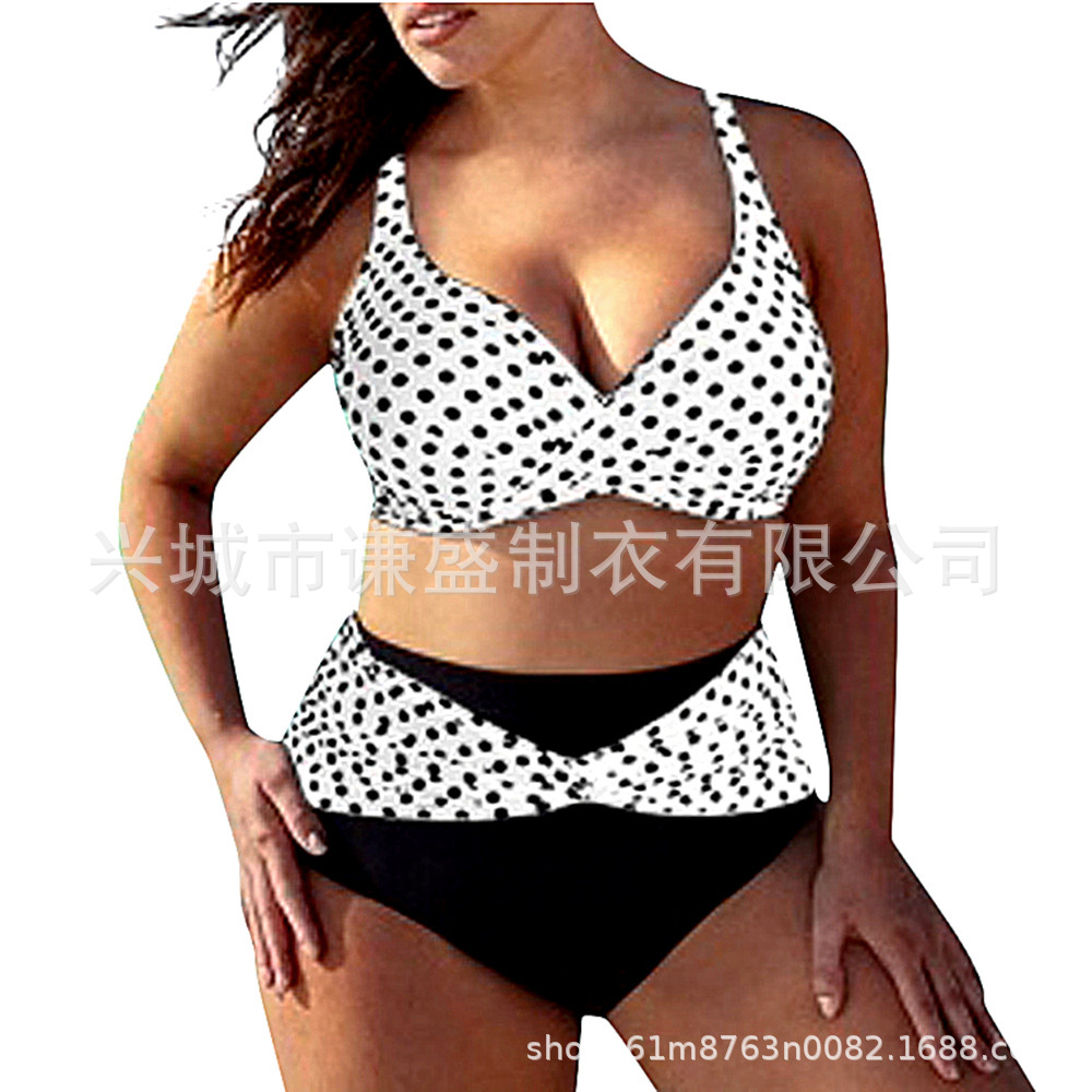 2025 신상 여성 폴카 도트 스플릿 섹시 플러스 사이즈 비키니 AliExpress 수영복 유럽과 미국의 대량 재고 모델
