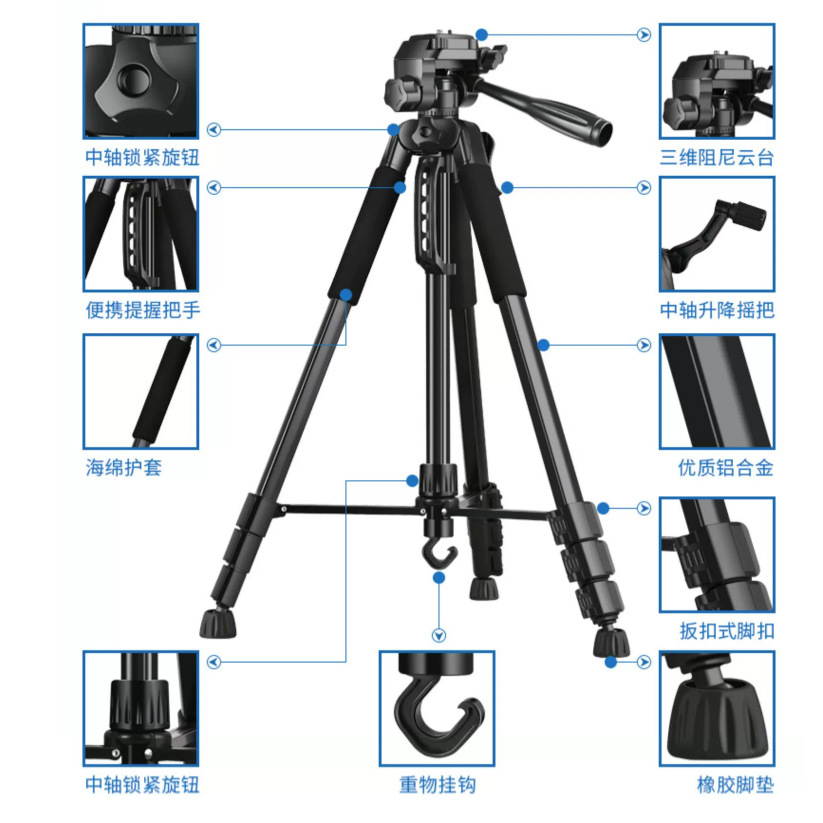 카메라 삼각대, SLR 2m 각도 조절 가능 스탠드, 휴대폰 라이브 방송 스탠드, 야간 낚시 조명, 망원경 스탠드, 야외용