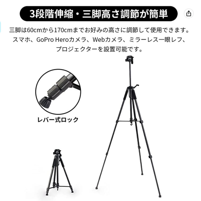 • 1.7 m 삼각대 + 플랫 더블 클립 + 리모콘