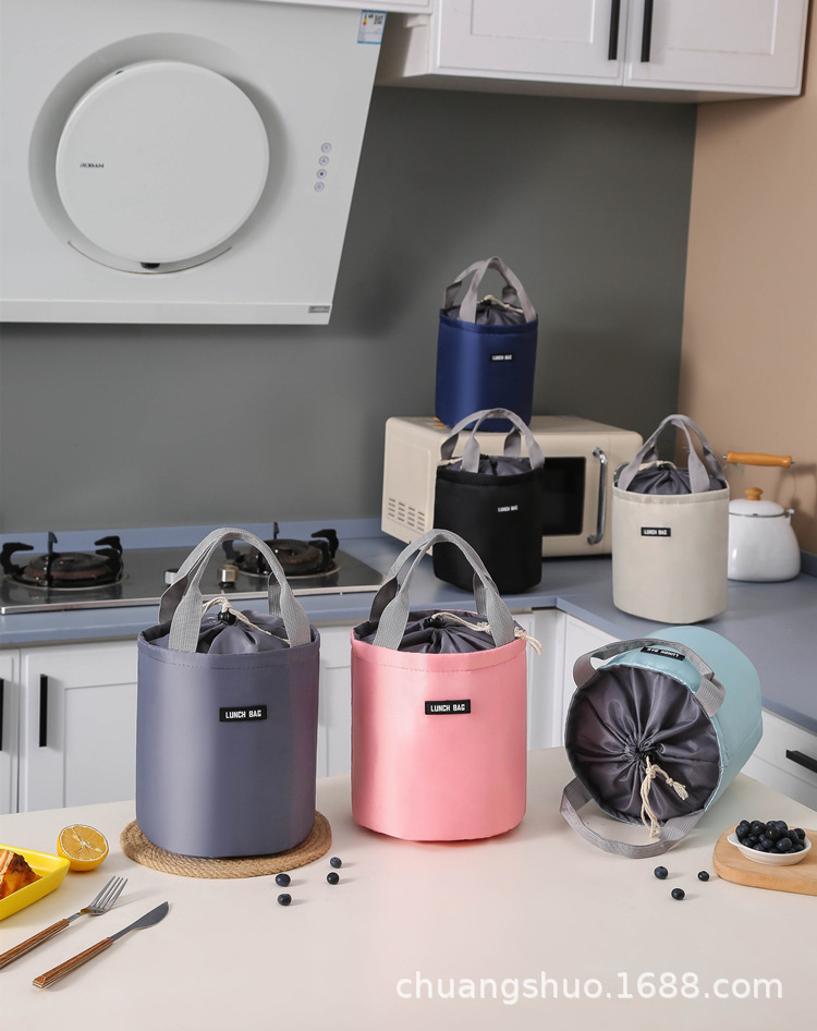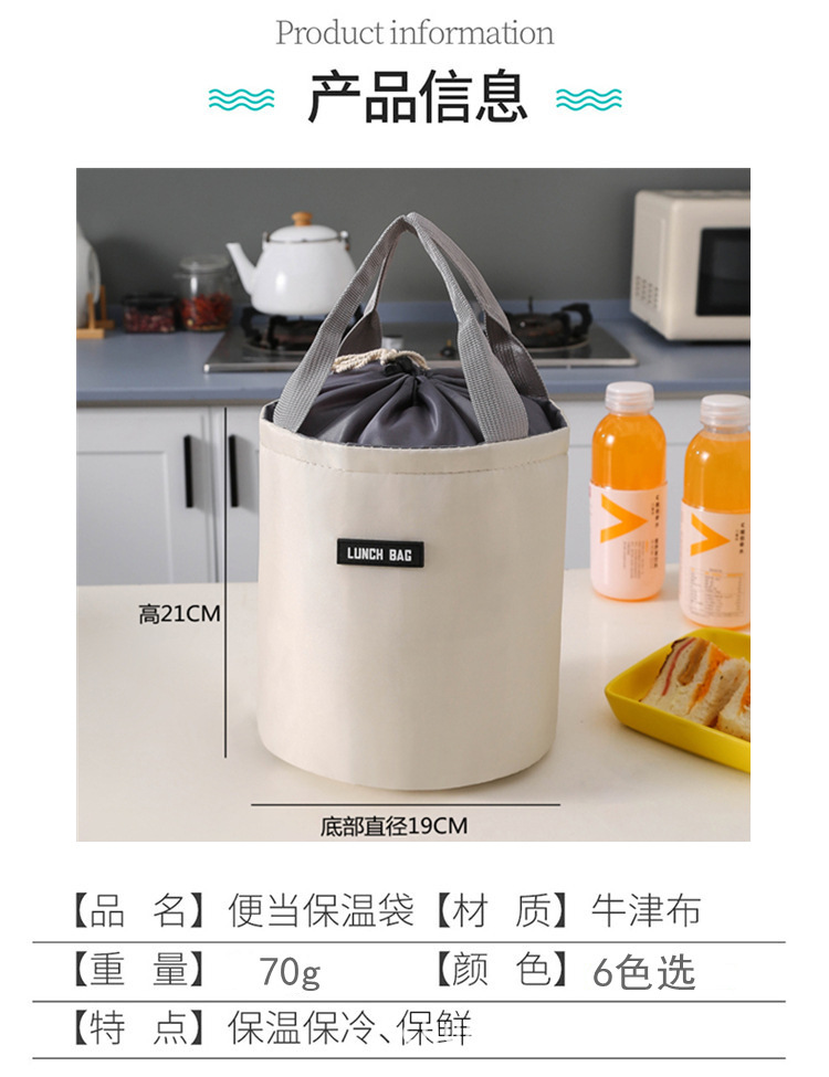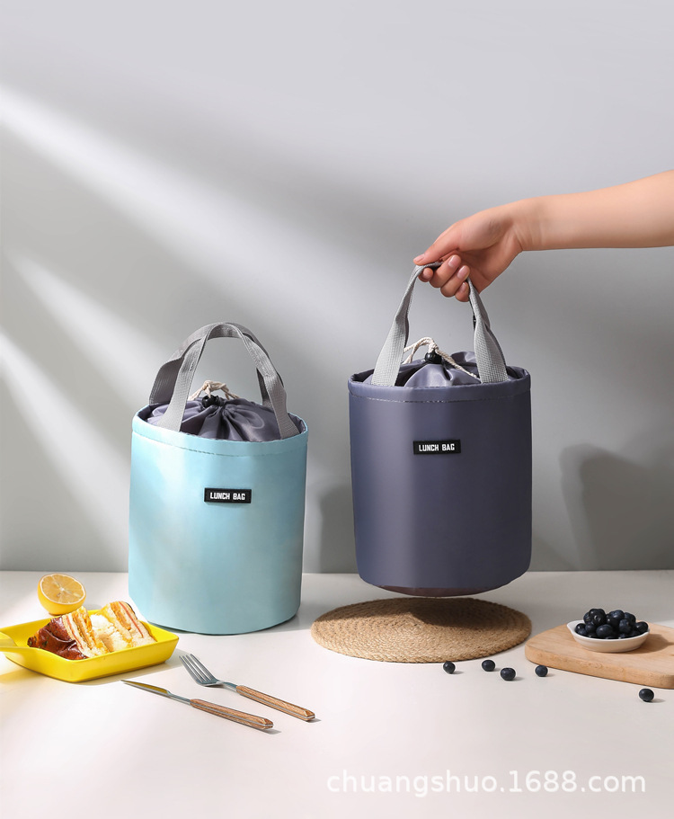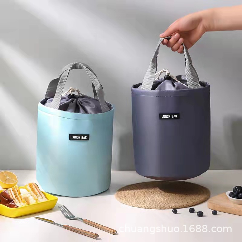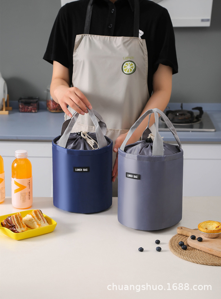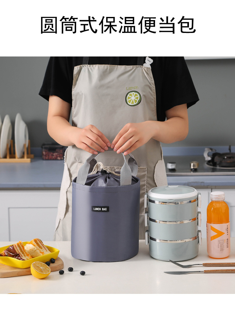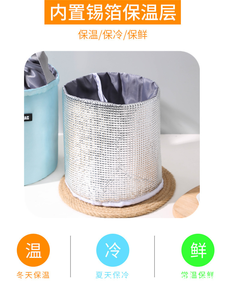 원통형 보온 도시락 가방 대형 알루미늄 호일 휴대용 원형 도시락 가방 직장용 도시락 가방 보냉 보온스토어 가기