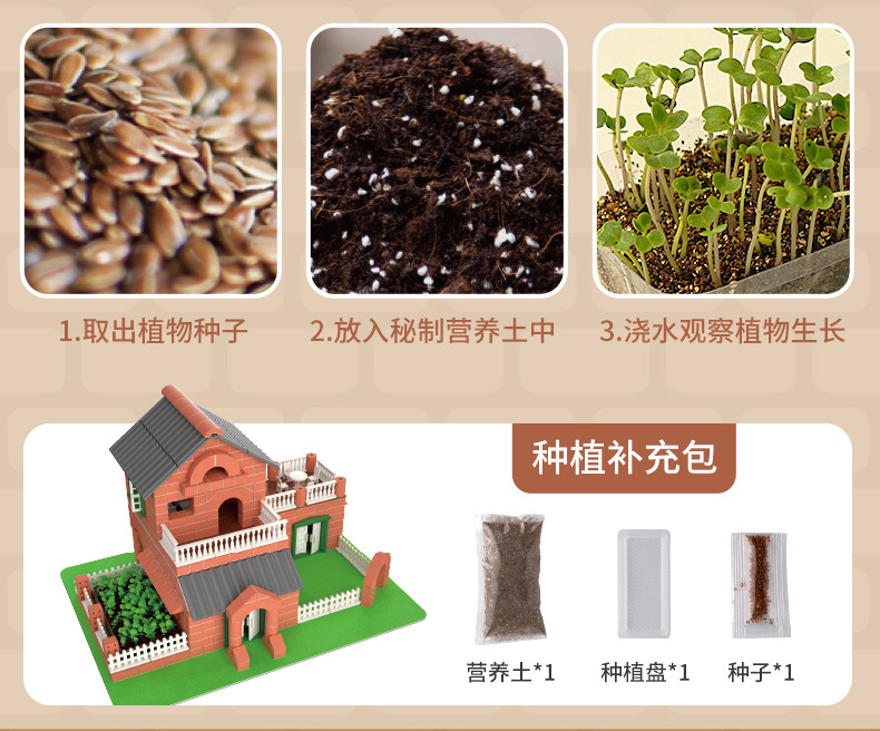 Kebao 작은 벽돌공 시멘트 집 만들기 장난감 어린이 교육 건설 시뮬레이션 모델 미니 벽돌 집 만들기스토어 가기