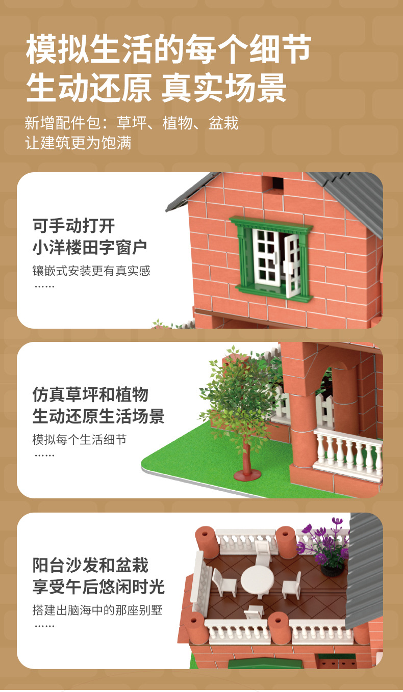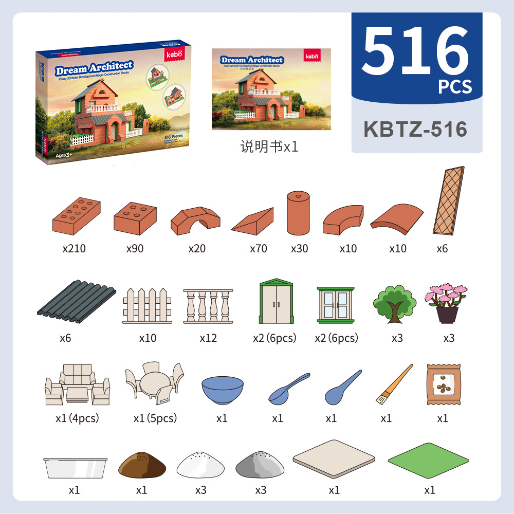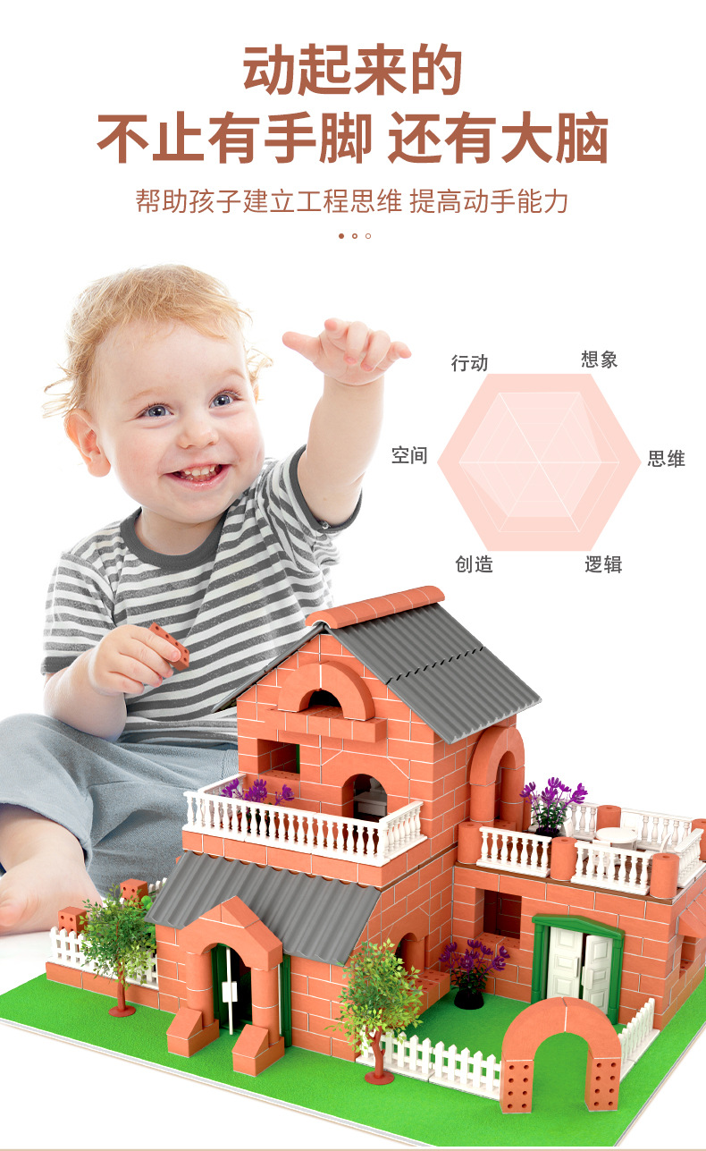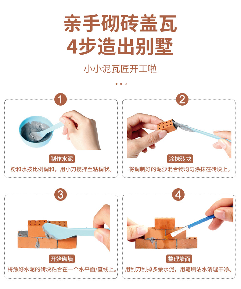 Kebao 작은 벽돌공 시멘트 집 만들기 장난감 어린이 교육 건설 시뮬레이션 모델 미니 벽돌 집 만들기