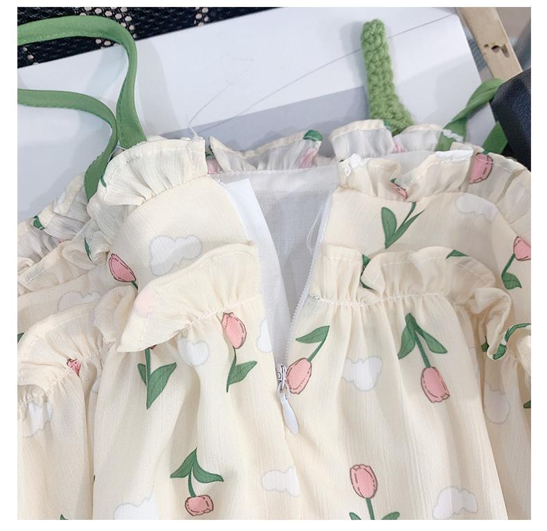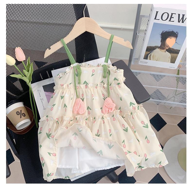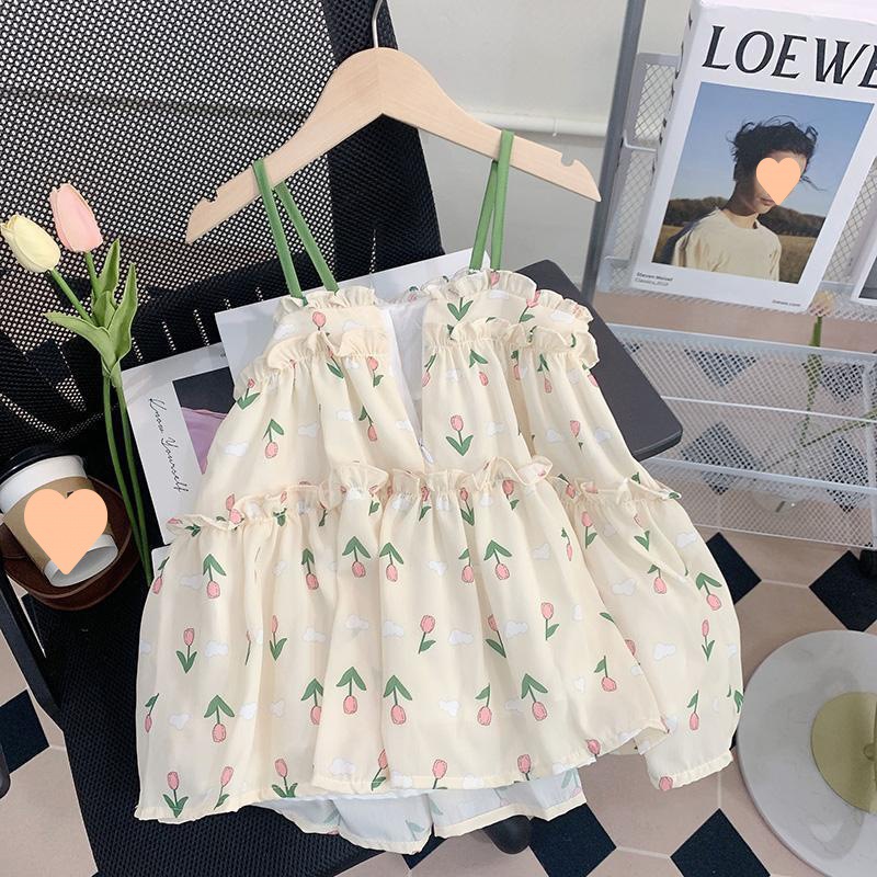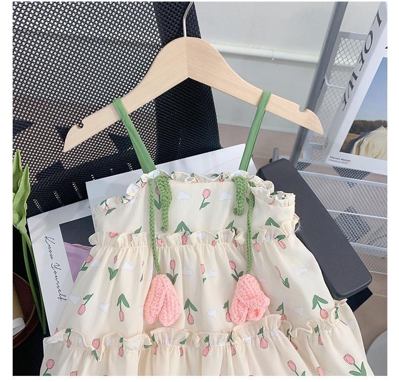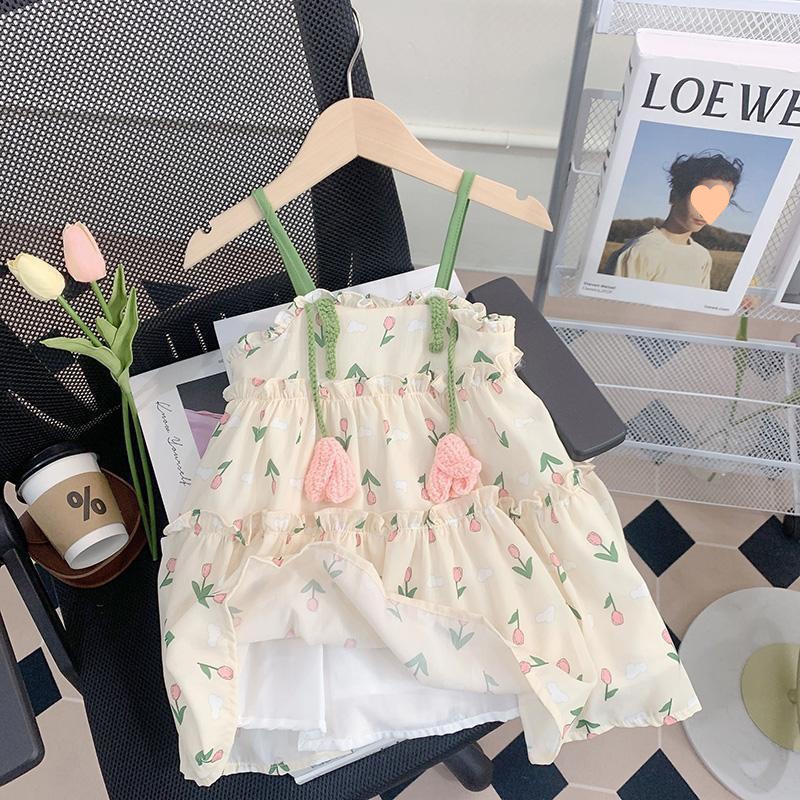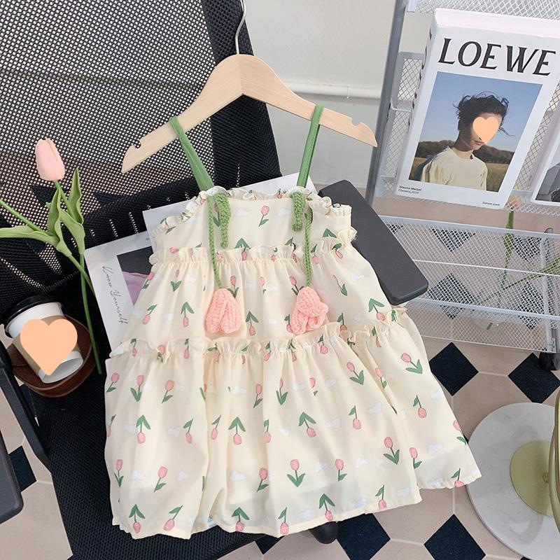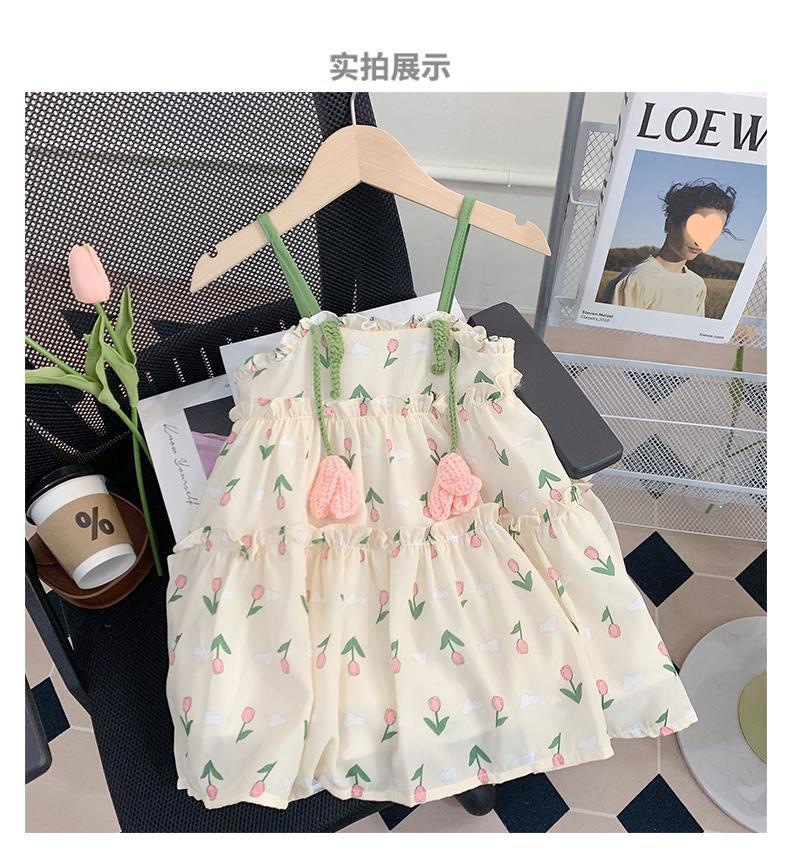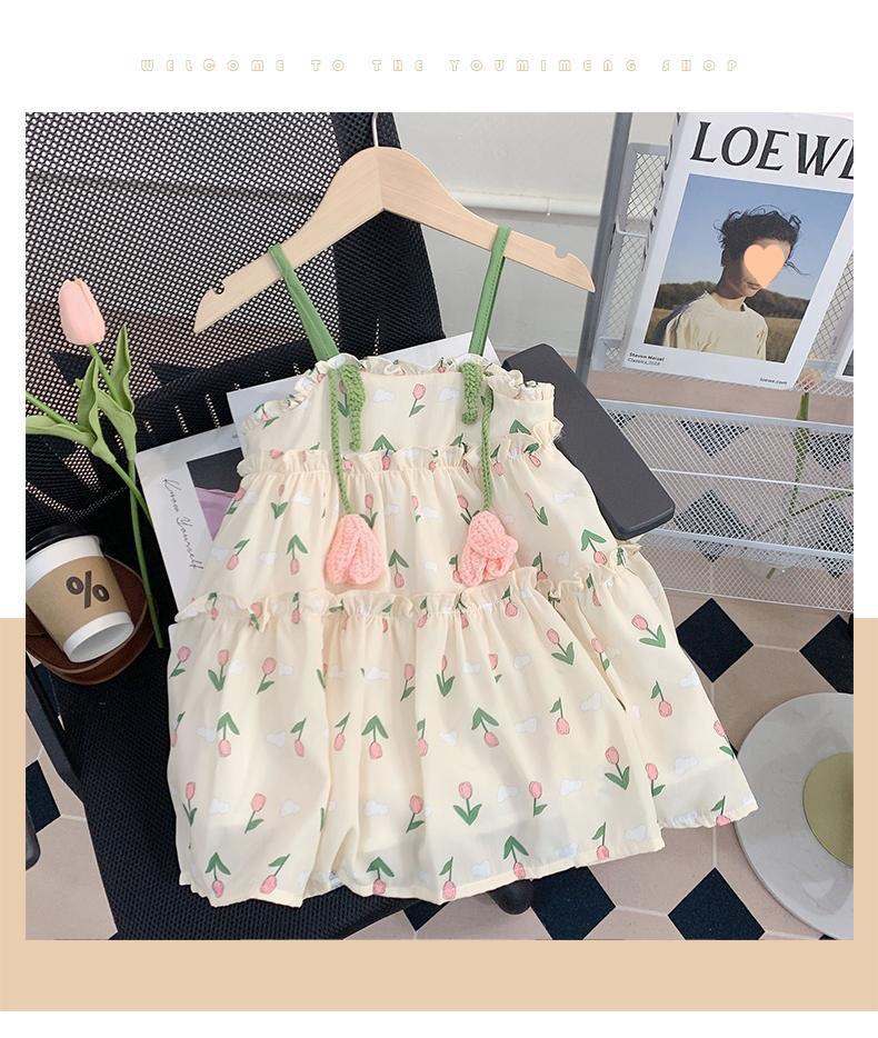 소녀의 여름 슬링 원피스 세련된 어린이 여름 원피스 공주 원피스 아기의 쉬폰 조끼 스커트 얇은스토어 가기