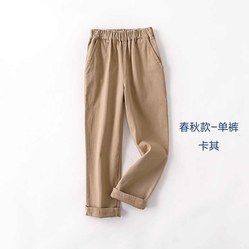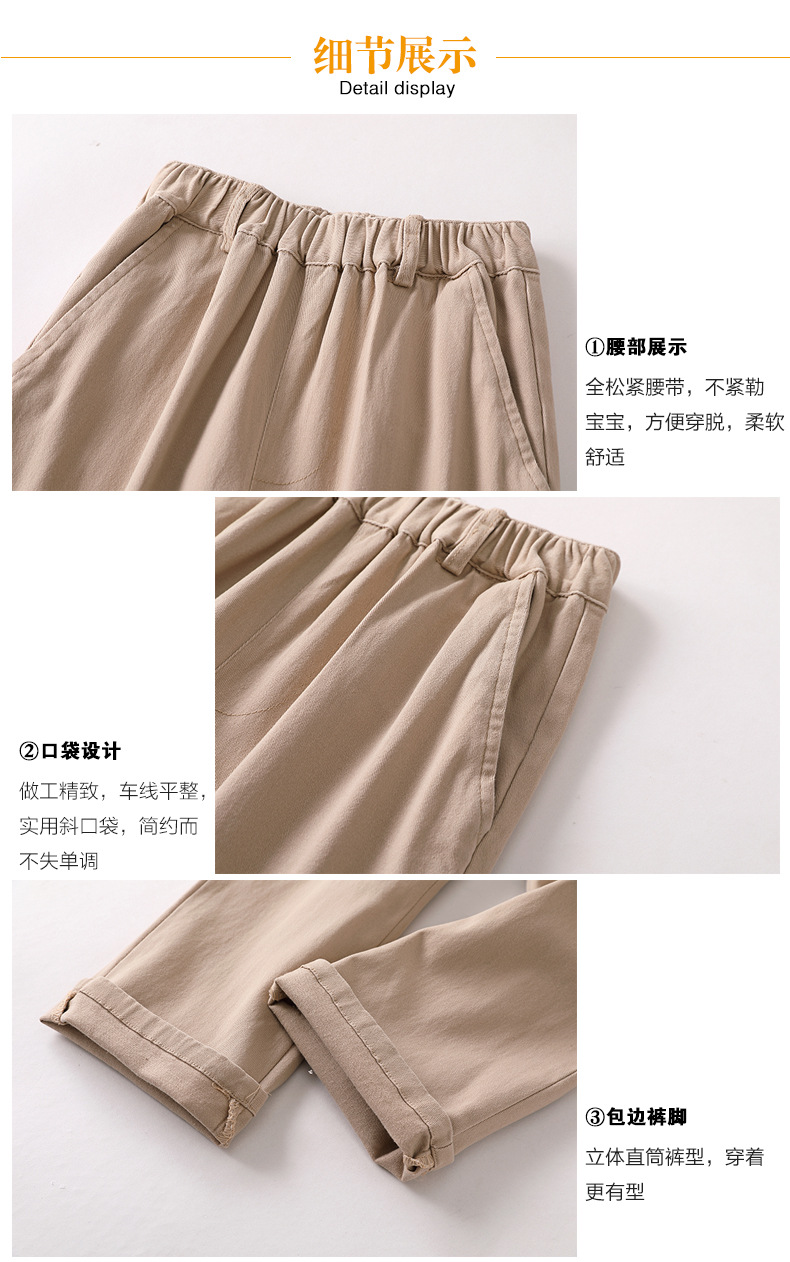 초등 및 중학생을위한 소년 코튼 카키 학교 바지 봄과 가을 얇은 어린이 바지 여아 네이비 긴 바지스토어 가기