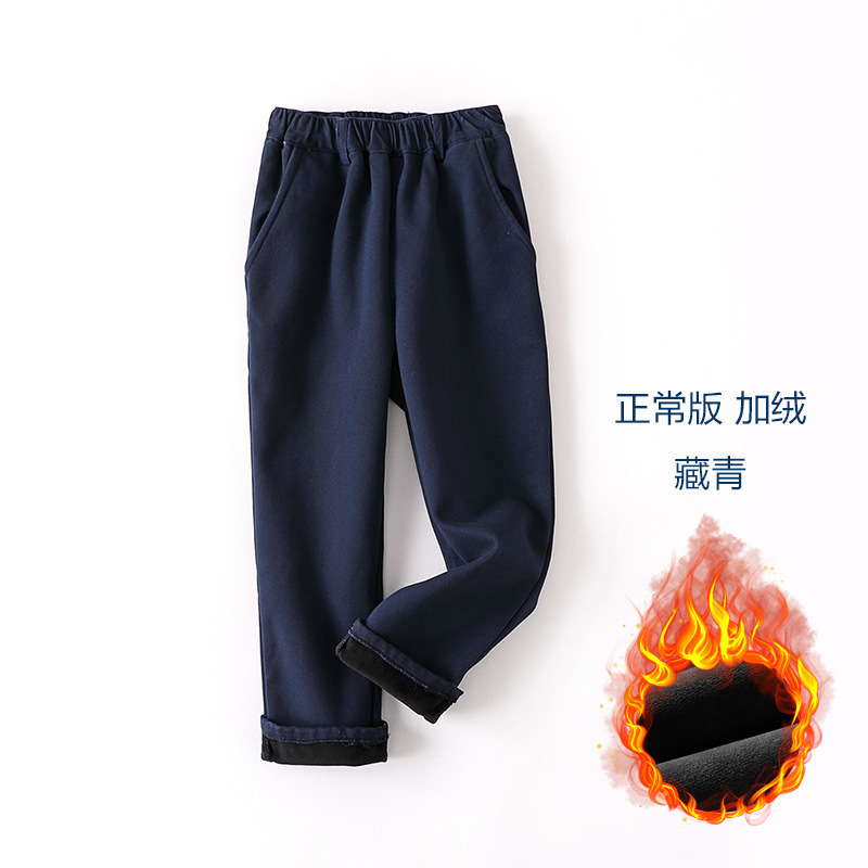 초등 및 중학생을위한 소년 코튼 카키 학교 바지 봄과 가을 얇은 어린이 바지 여아 네이비 긴 바지