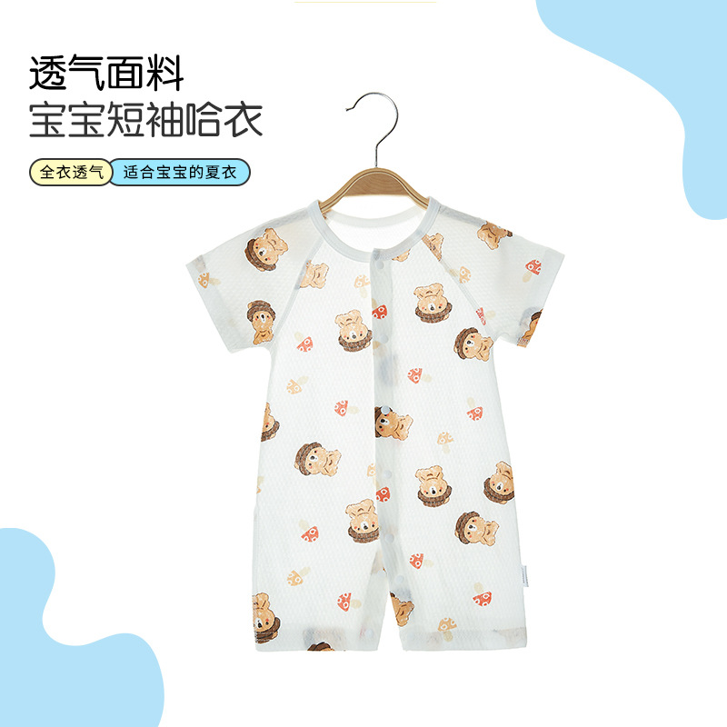 아기 반팔 점프 수트 순면 여름 신생아를위한 얇은 시원한 통기성 등산 세트 소년과 소녀를위한 하퍼 아기 잠옷스토어 가기