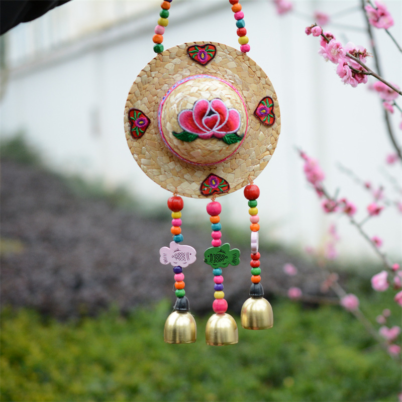윈난 에스닉 스타일 밀짚모자 윈드 차임 기능 수제 홈 베란다 벽걸이 농가 홈스테이 월 펜던트스토어 가기