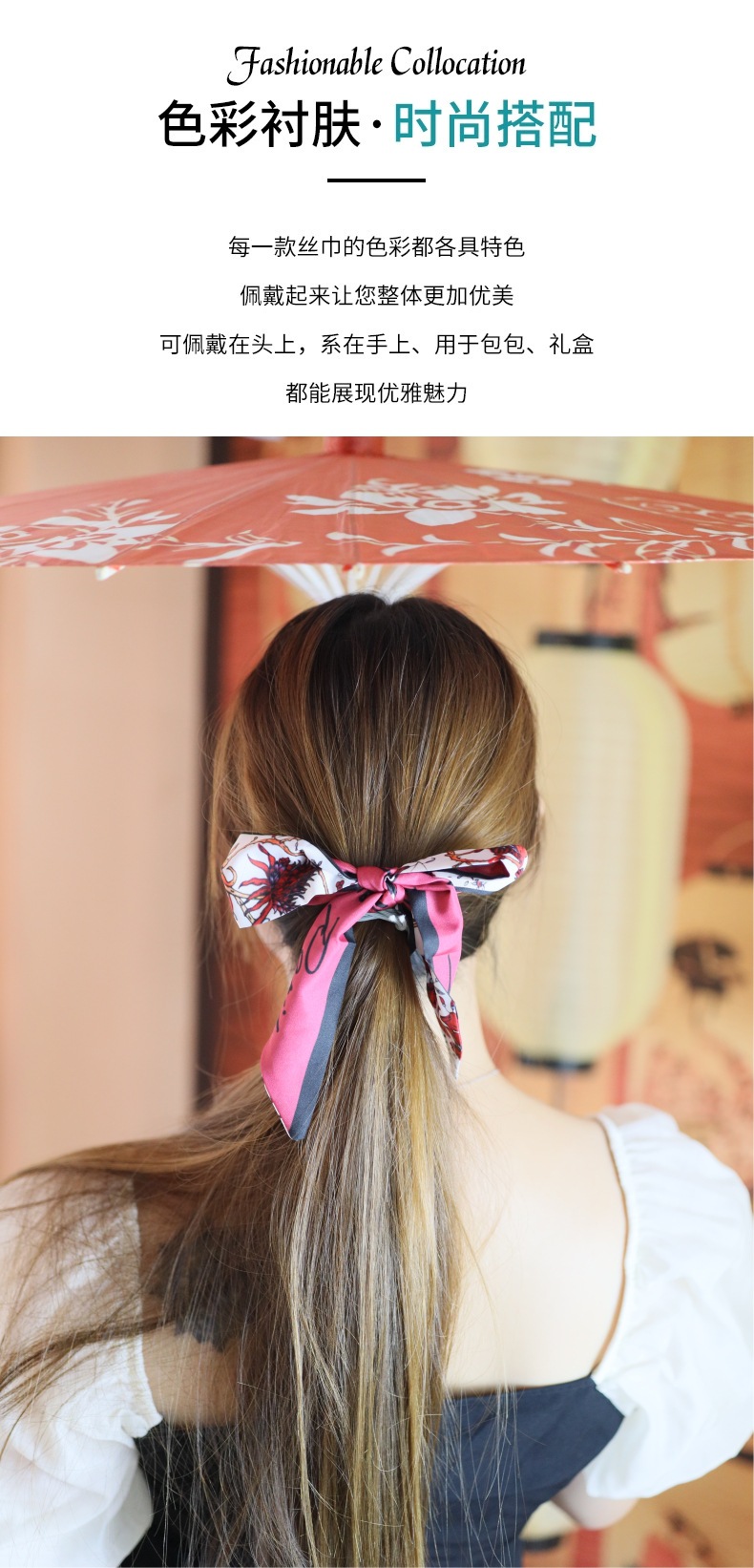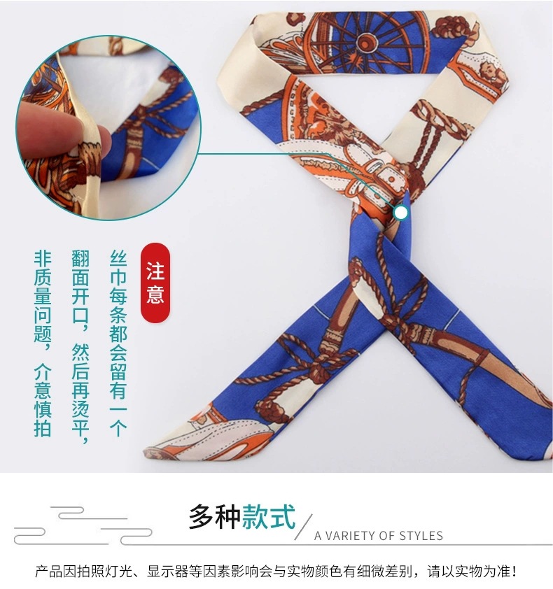 흰색과 나이를 줄이는 녹색 작은 실크 스카프 여성용 봄과 여름 얇은 좁은 리본 헤어 스트랩 헤어 타이 백 장식 긴 스카프