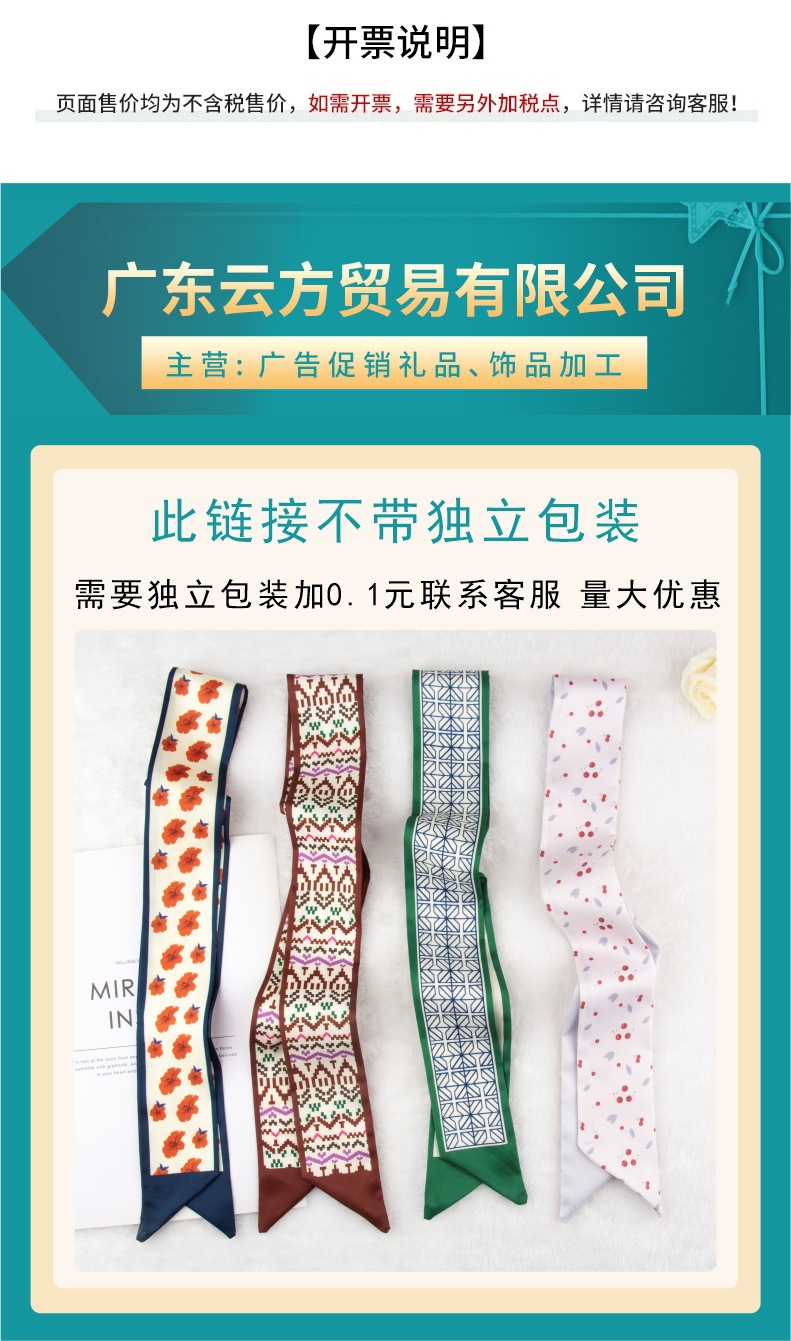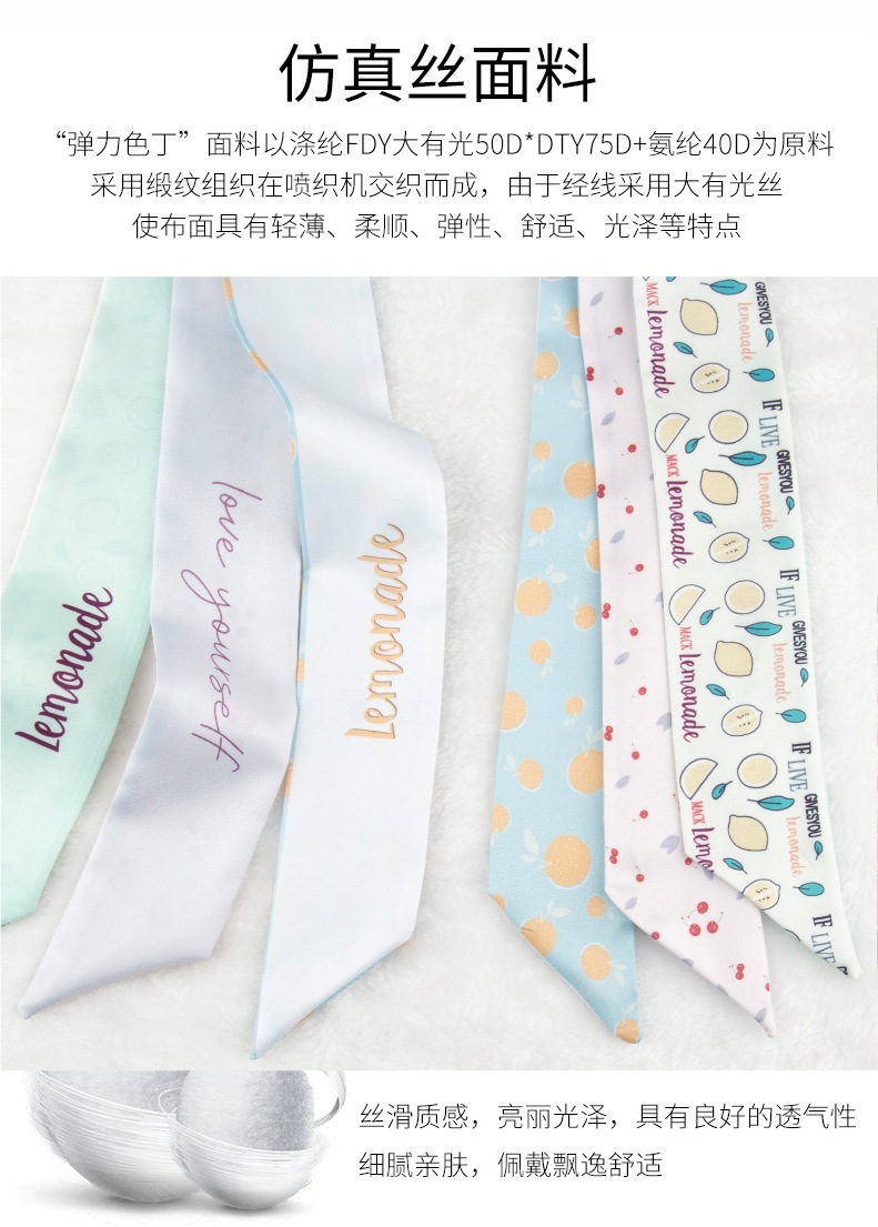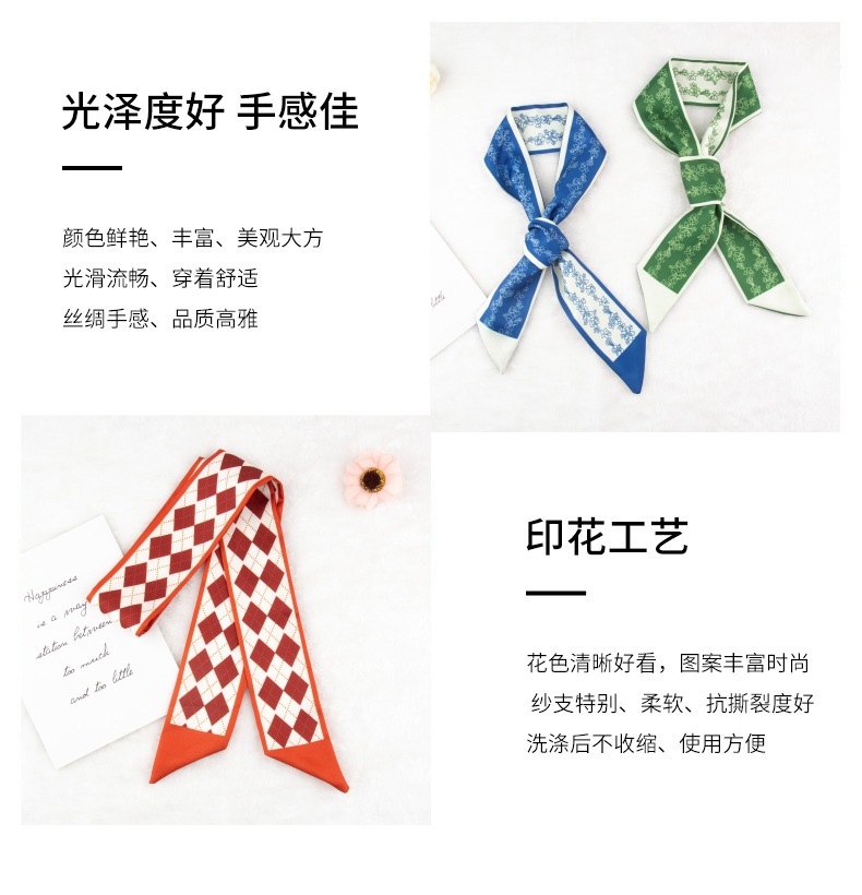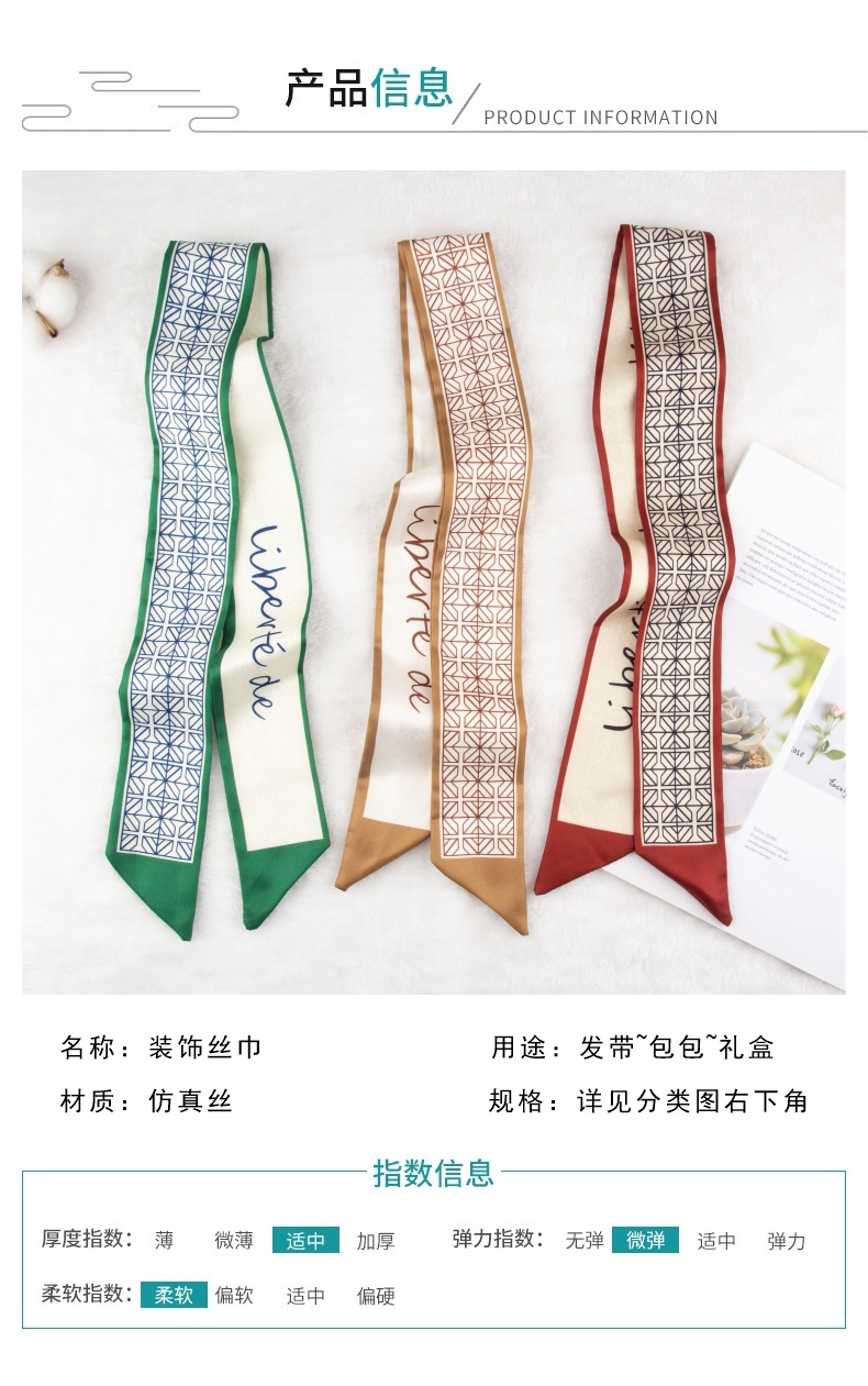 흰색과 나이를 줄이는 녹색 작은 실크 스카프 여성용 봄과 여름 얇은 좁은 리본 헤어 스트랩 헤어 타이 백 장식 긴 스카프스토어 가기
