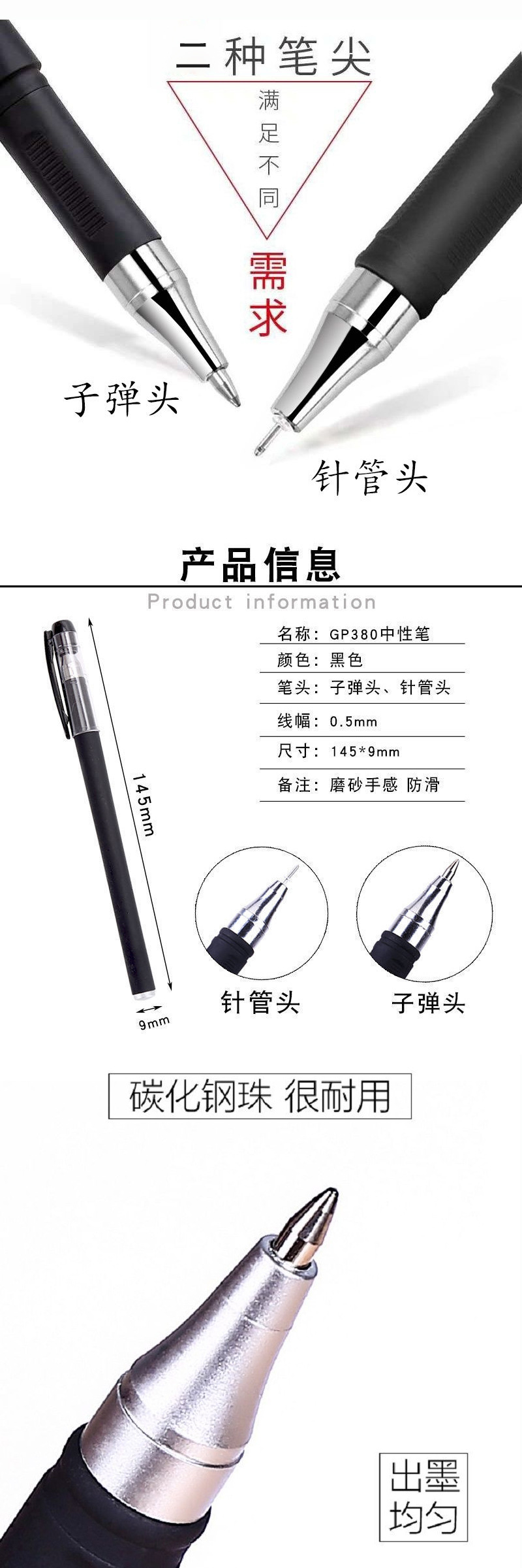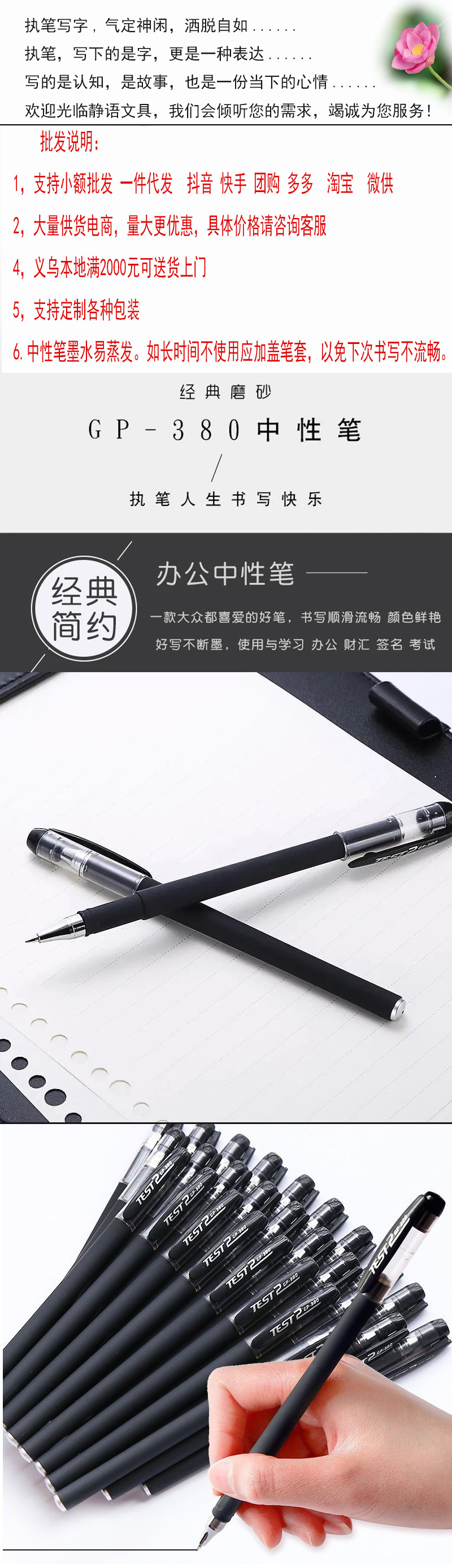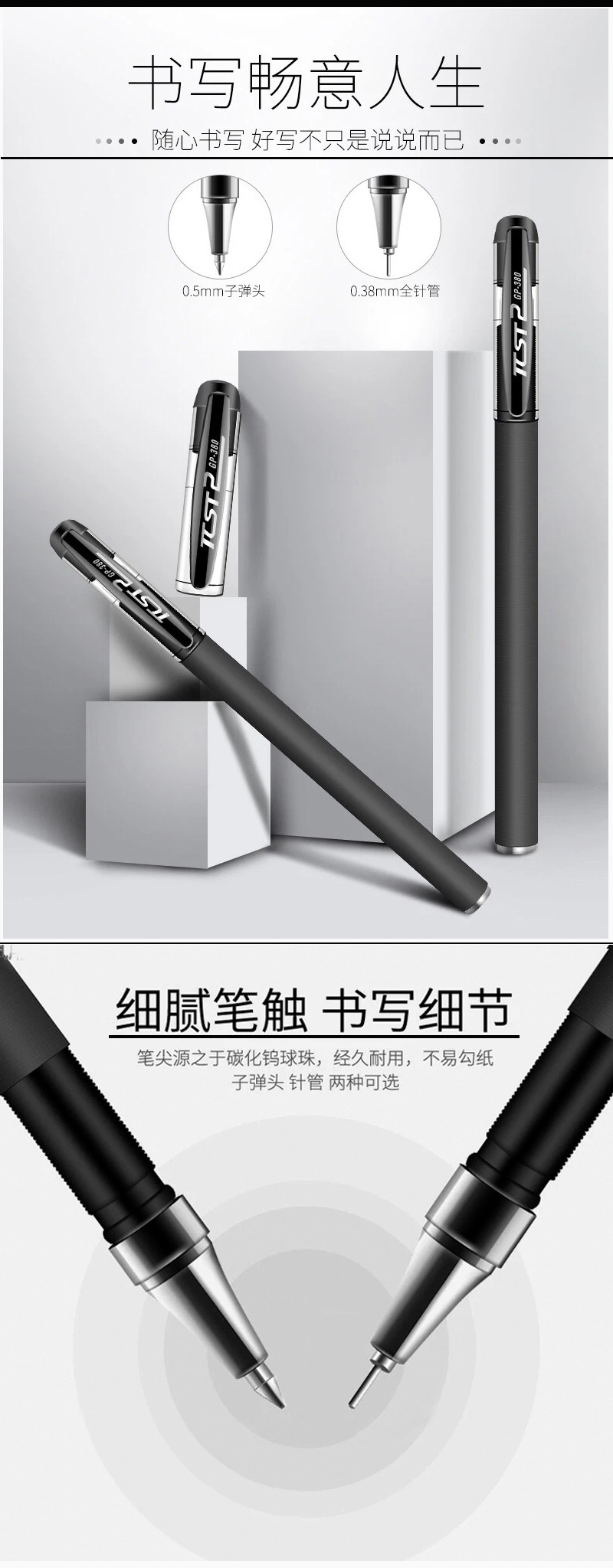 서리로 덥은 펜 젤 펜 GP380 사무실 시험 학생 펜 비즈니스 서명 펜 볼펜 블랙 카본 펜