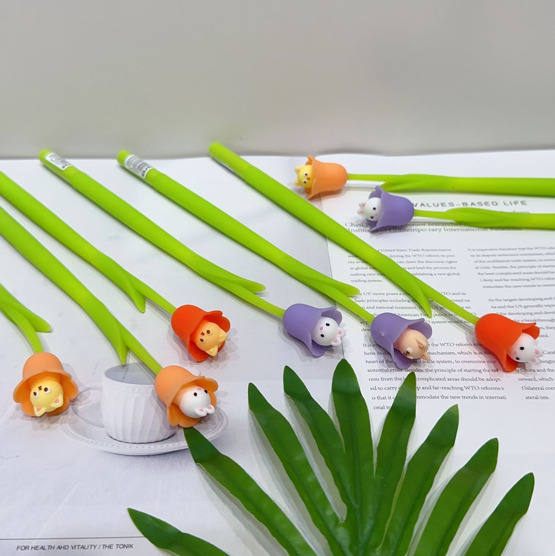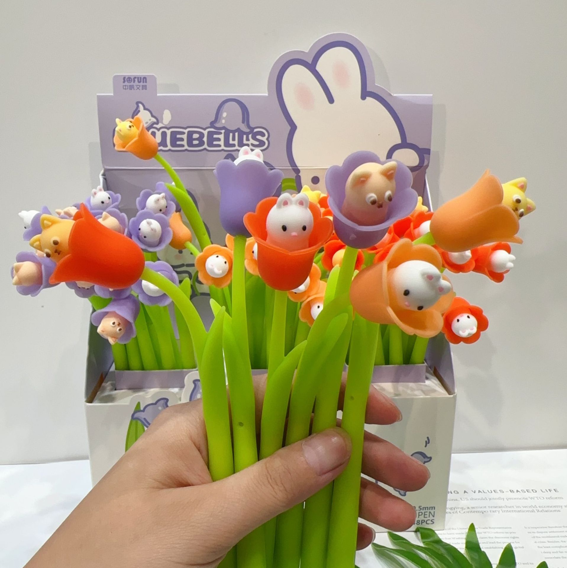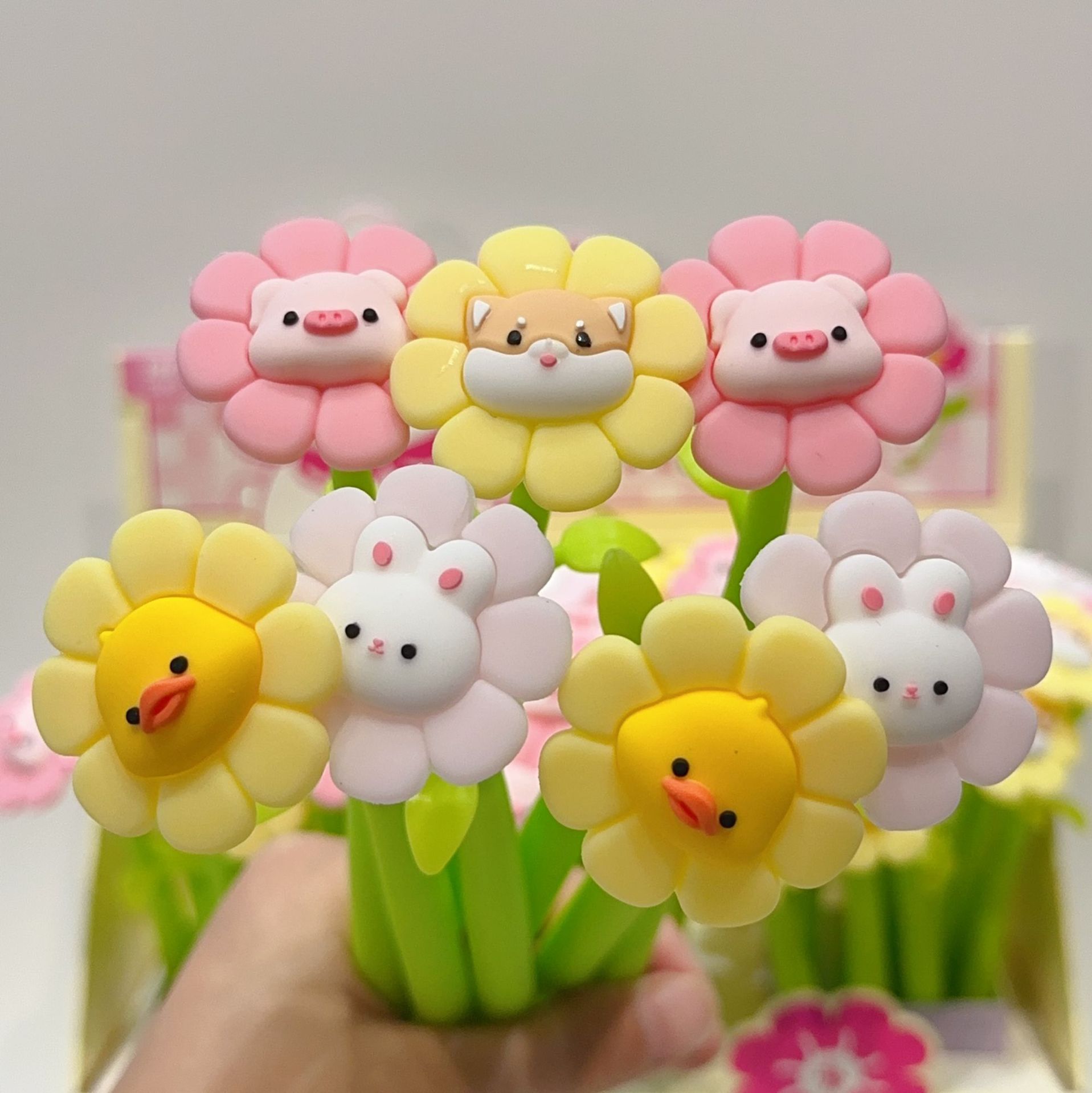 새로운 한국 스타일의 창조적 인 꽃 모양 젤 펜 귀여운 다채로운 작은 꽃 실리콘 쉐이크 펜 서명 펜 물 기반 펜스토어 가기