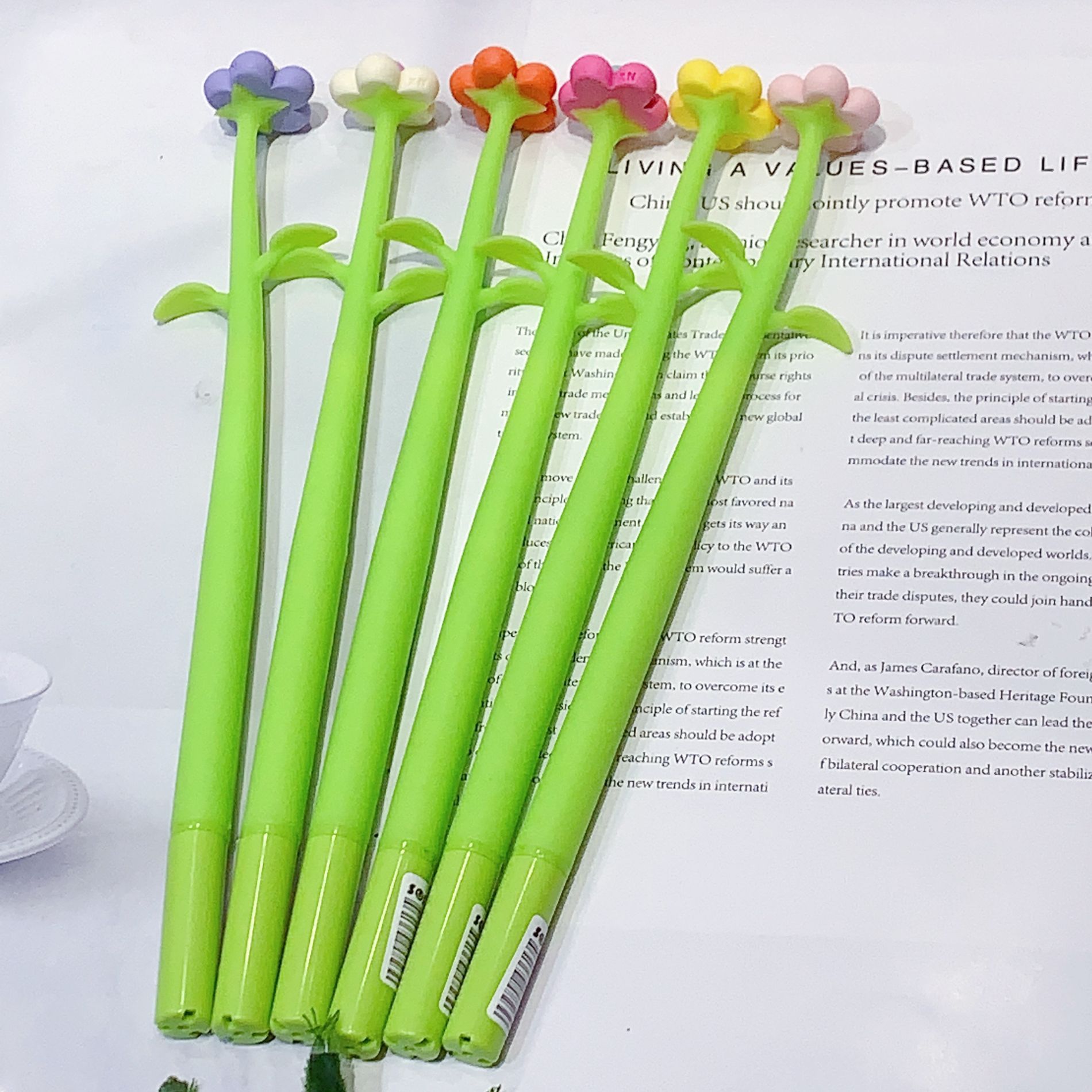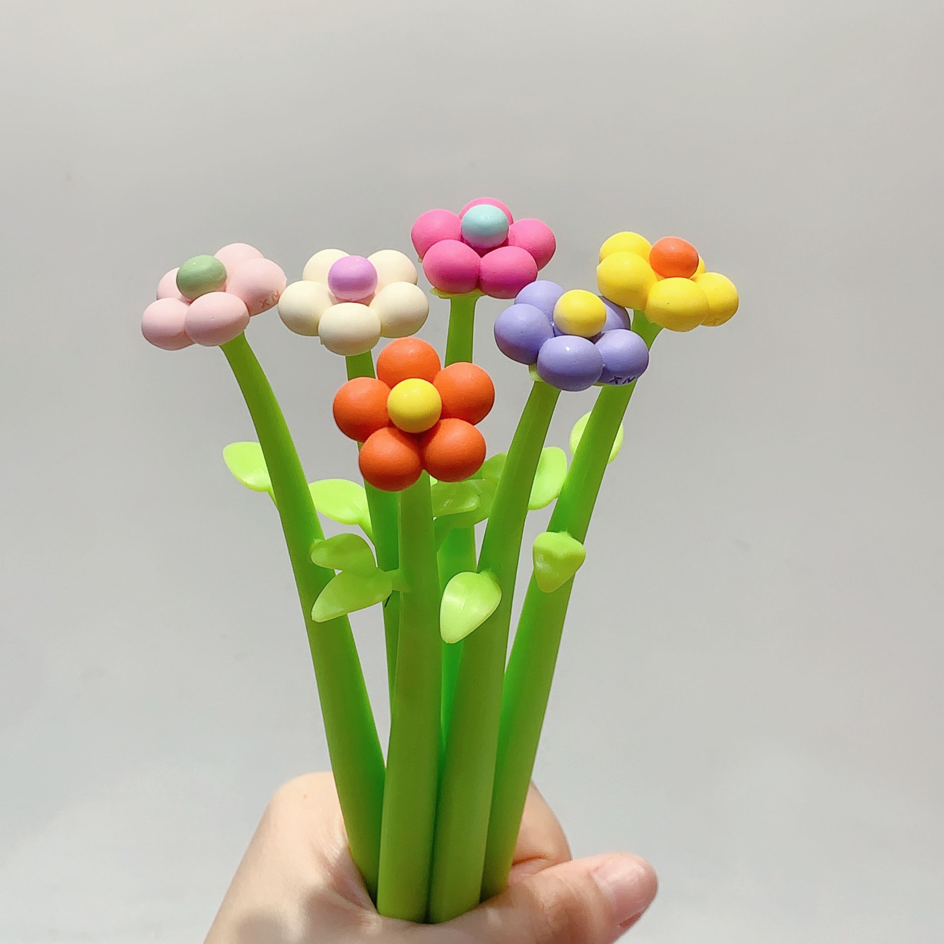 새로운 한국 스타일의 창조적 인 꽃 모양 젤 펜 귀여운 다채로운 작은 꽃 실리콘 쉐이크 펜 서명 펜 물 기반 펜