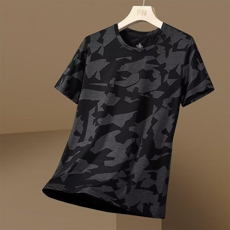 아이스 실크 메쉬 반팔 남성용 티셔츠 여름 느슨한 얇은 속건 스포츠 캐주얼 위장 탑 남성용 반팔 트렌디스토어 가기