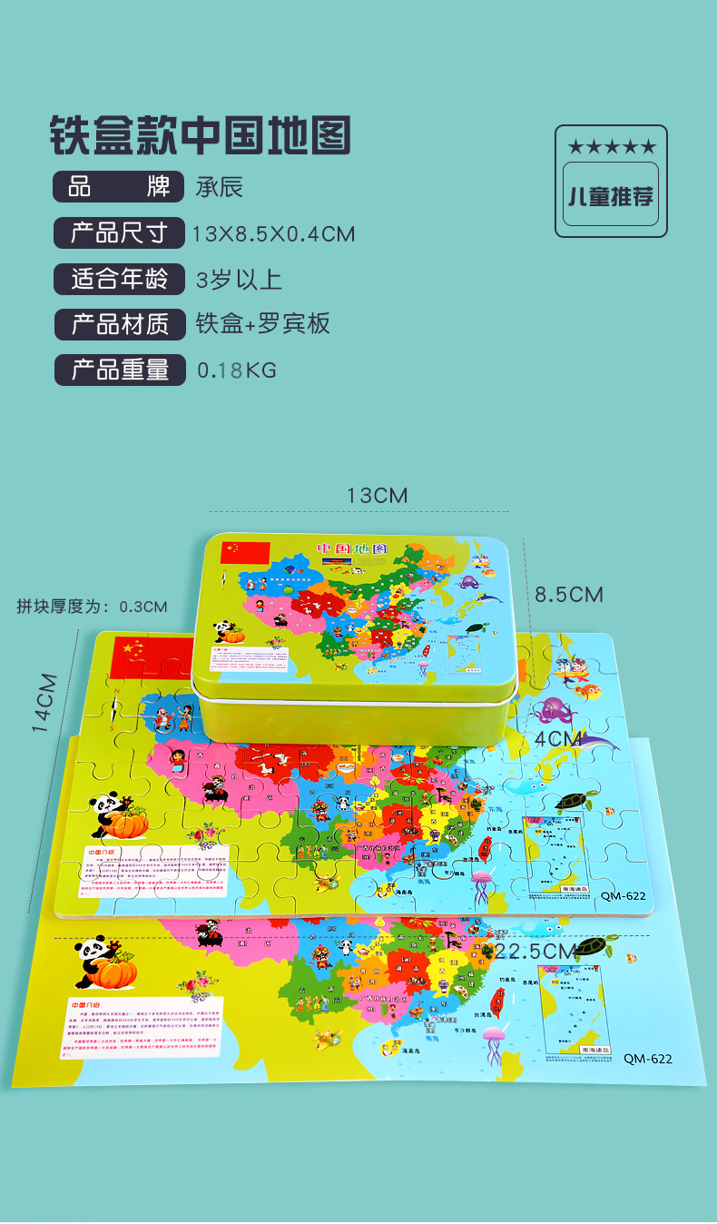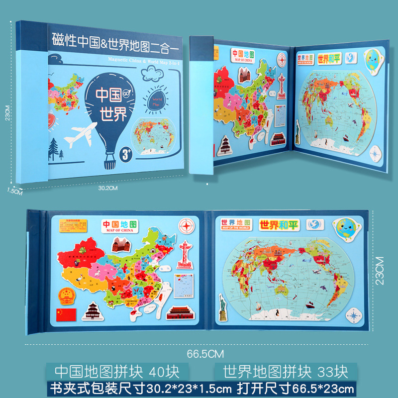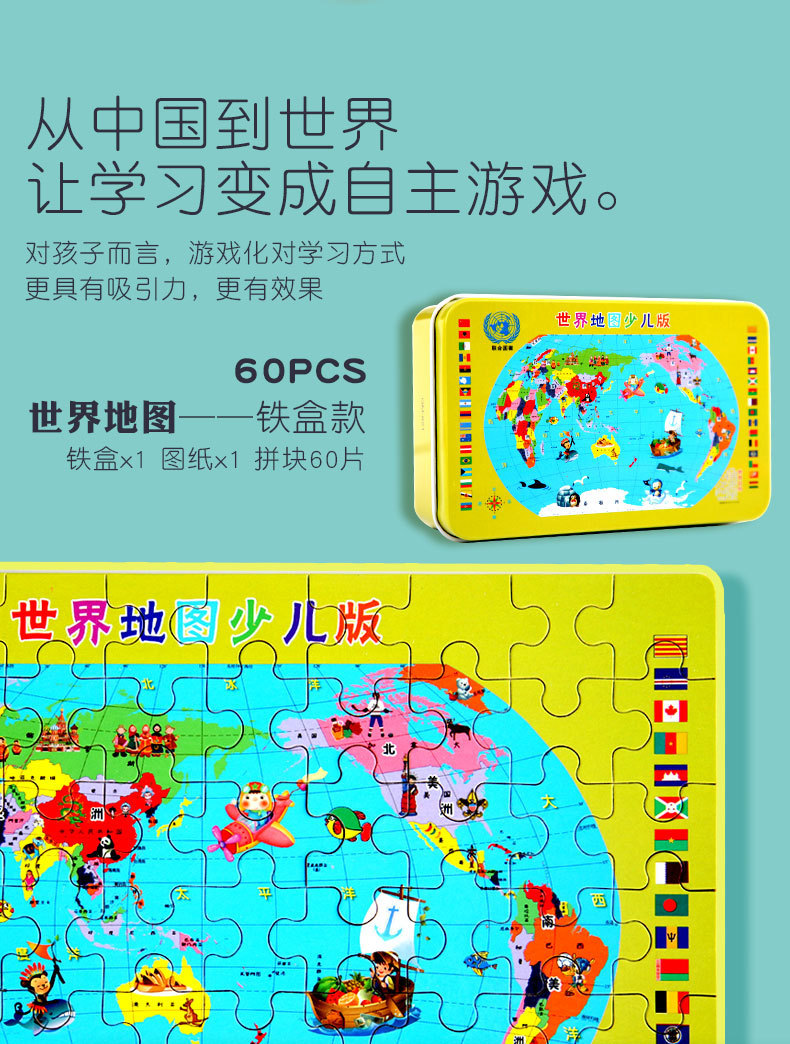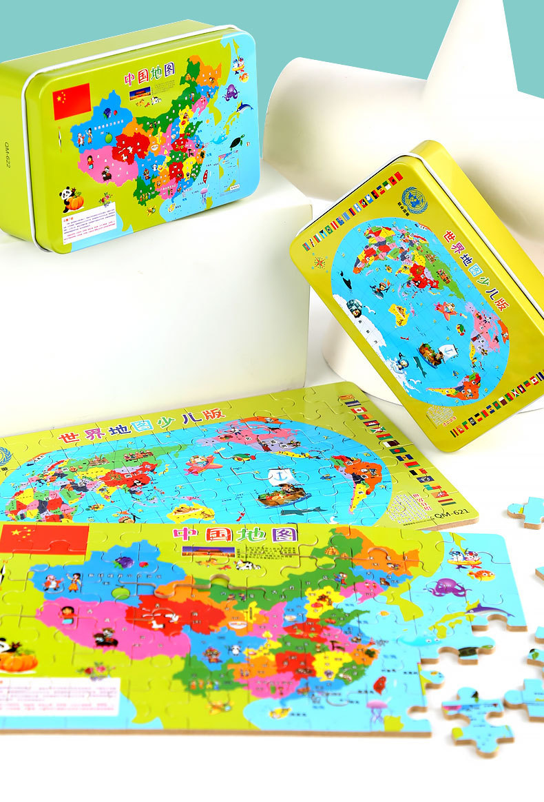중국지도 퍼즐 자기 세계 나무 철 상자 두꺼운 조기 교육 어린이 퍼즐 조기 교육 3 차원 자기 퍼즐