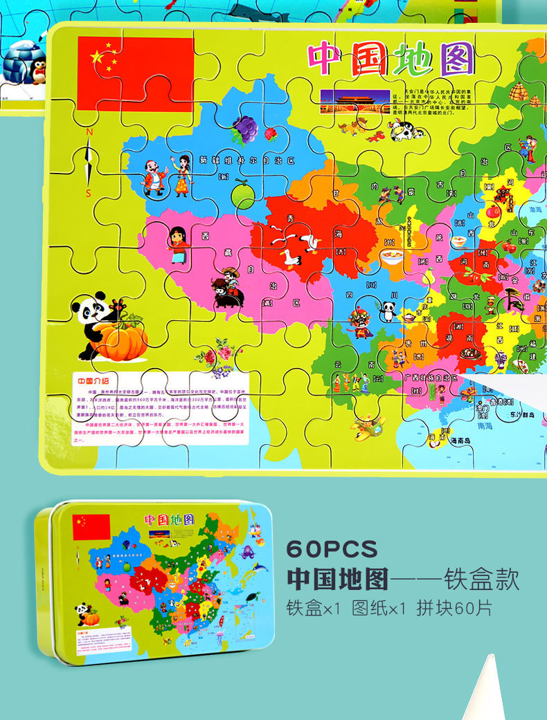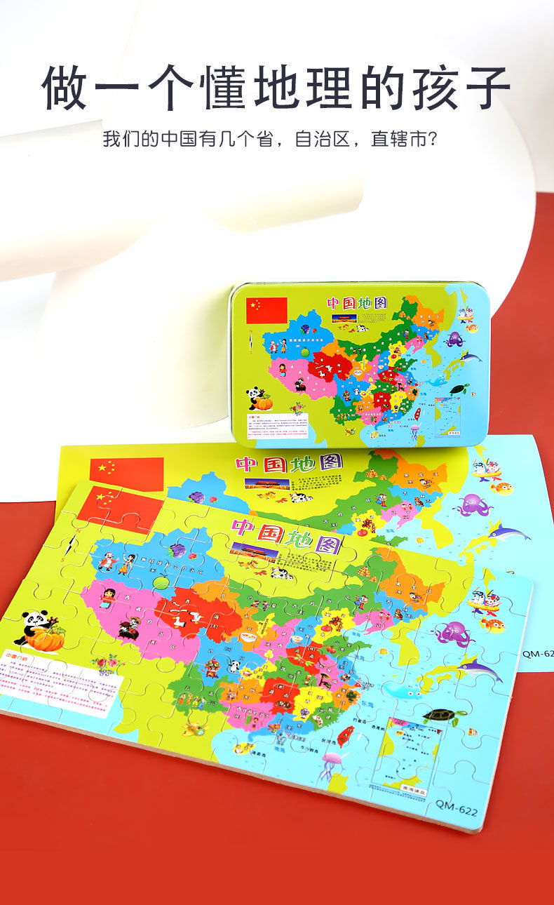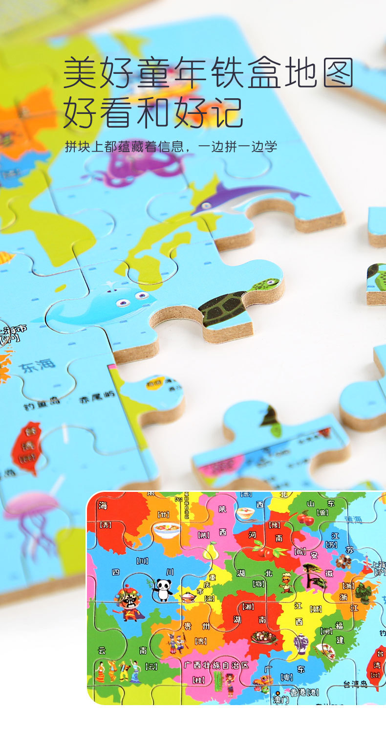 중국지도 퍼즐 자기 세계 나무 철 상자 두꺼운 조기 교육 어린이 퍼즐 조기 교육 3 차원 자기 퍼즐스토어 가기