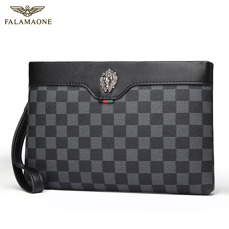 FaleArmani 라이트 럭셔리 격자 무늬 남성 핸드백 캐주얼 모든 매치 클램프 백 비즈니스 캐주얼 남성 가방 패션 트렌드