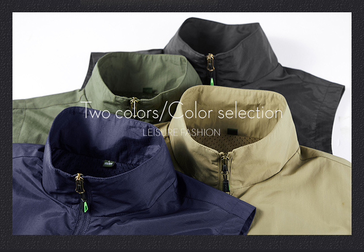 야외 속건 조끼 남자의 얇은 낚시 등산 사진 조끼 방수 조끼 스탠드 칼라 민소매 재킷