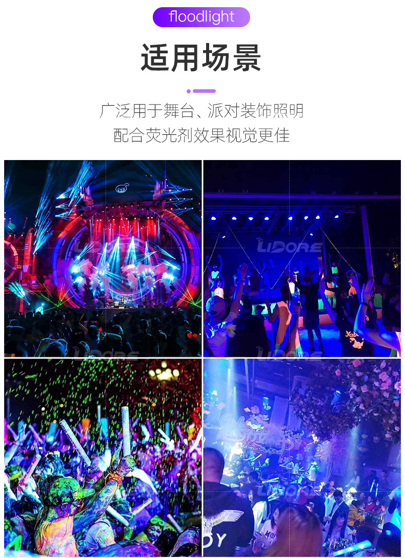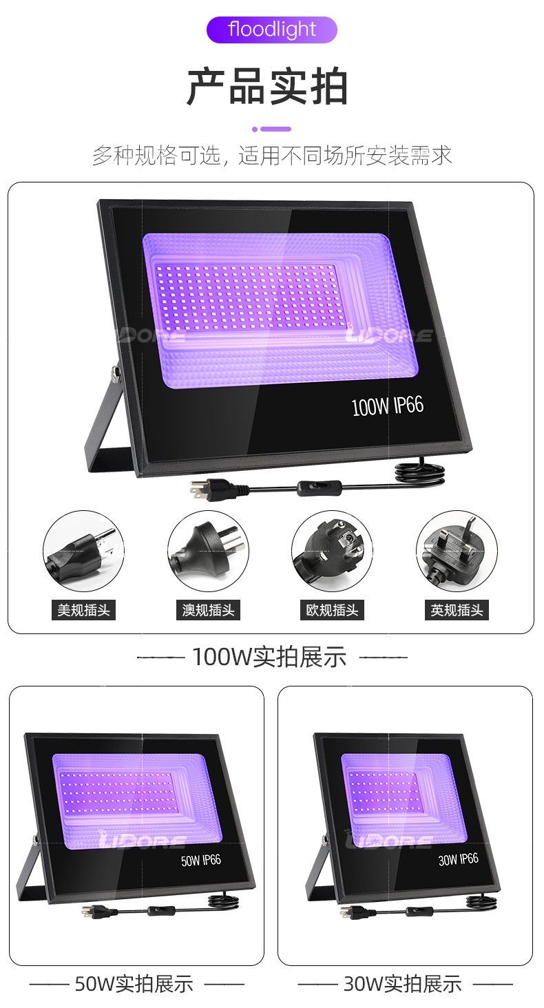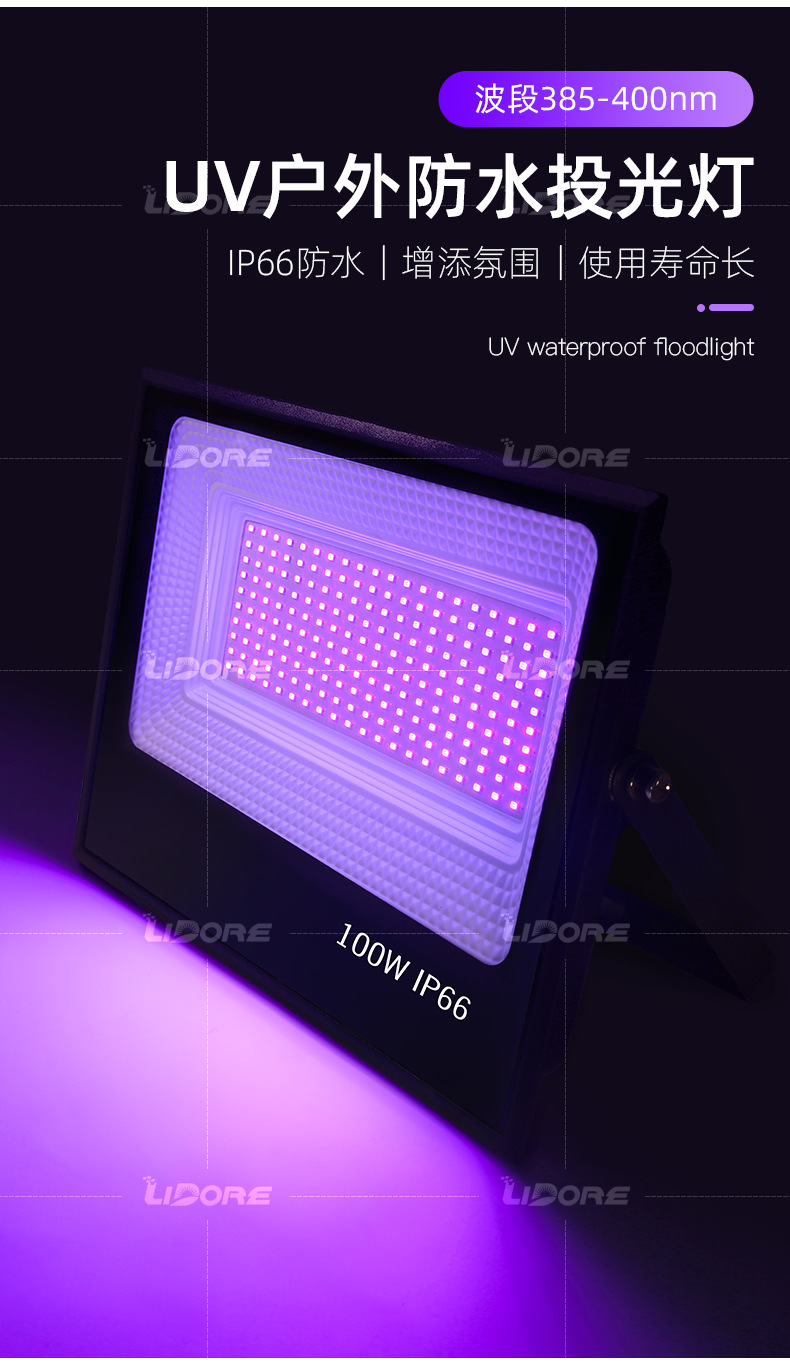 외국 무역 투광등 보라색 UV 야외 방수 IP66 할로윈 유령의 집 분위기 조명 395nm 투광등스토어 가기