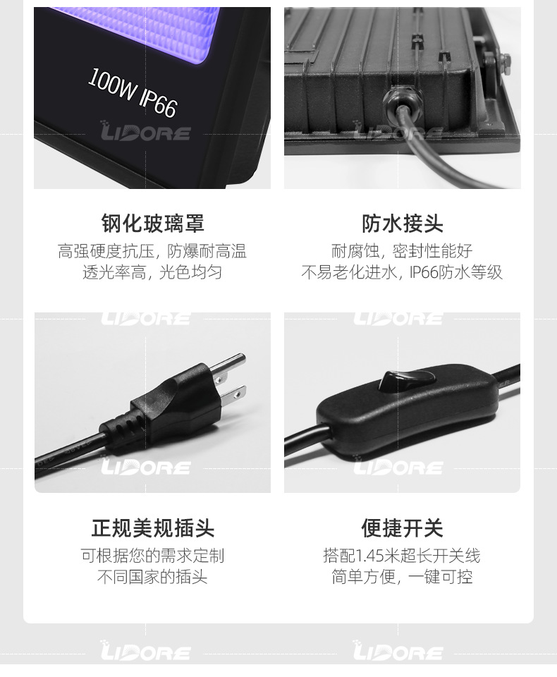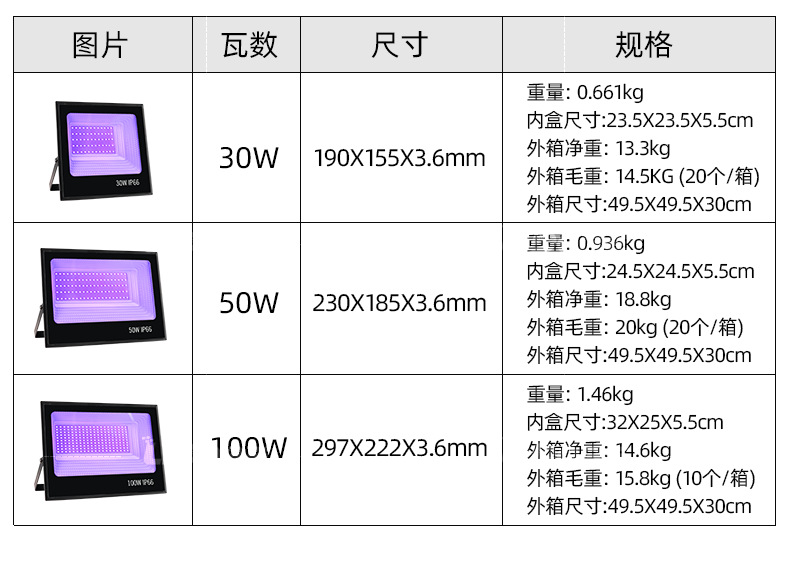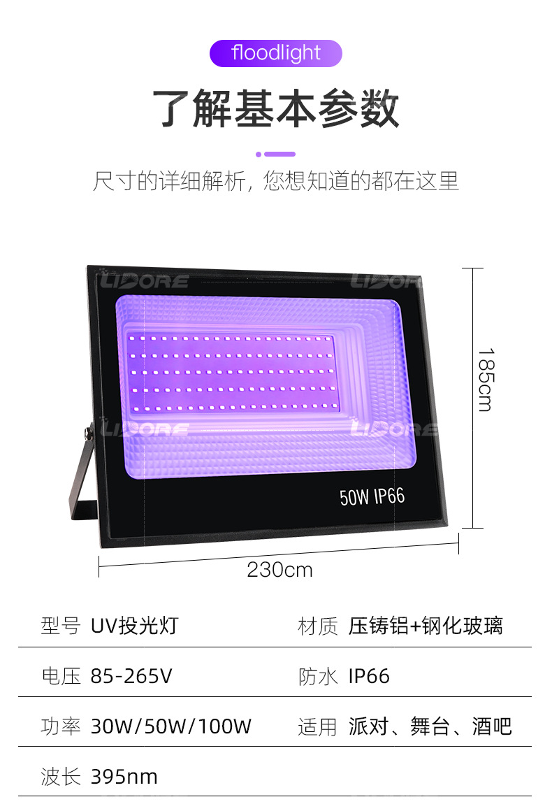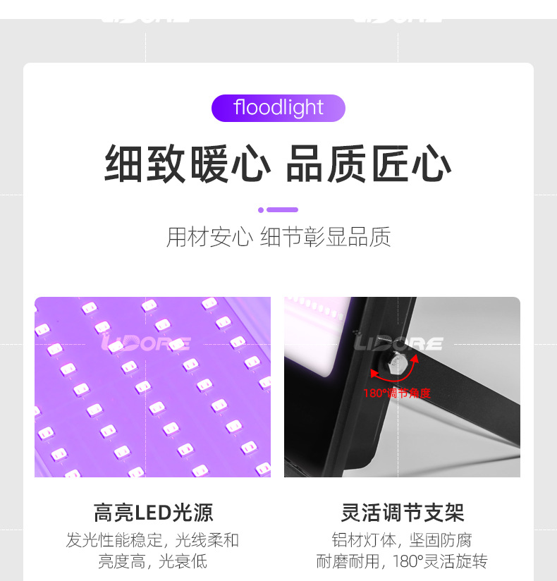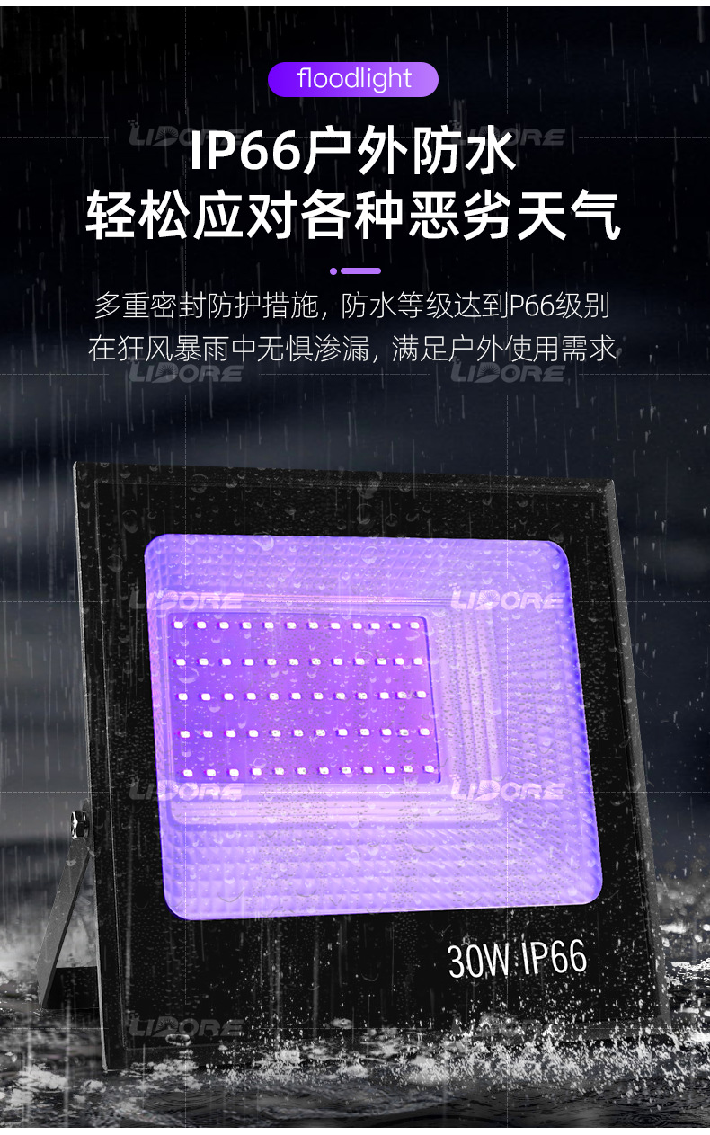 외국 무역 투광등 보라색 UV 야외 방수 IP66 할로윈 유령의 집 분위기 조명 395nm 투광등스토어 가기