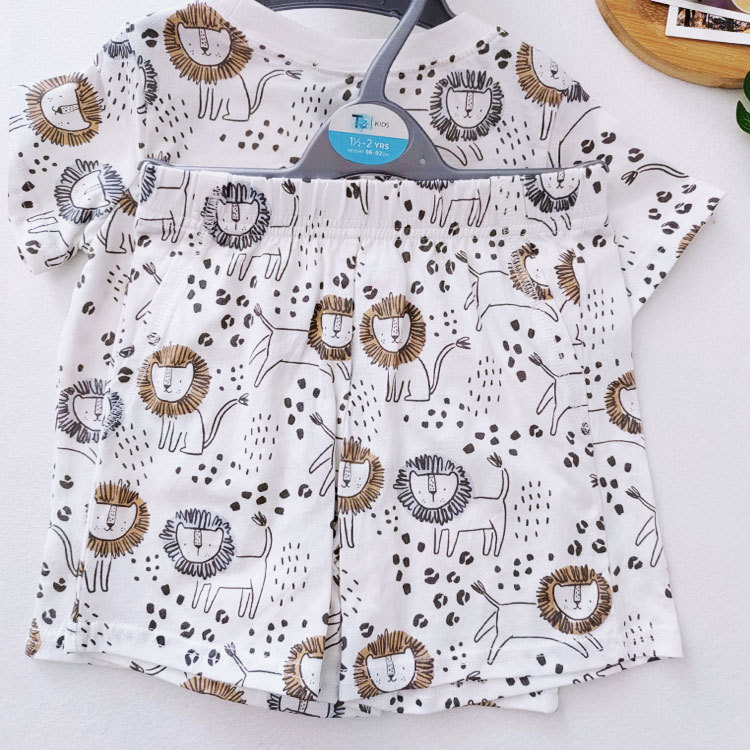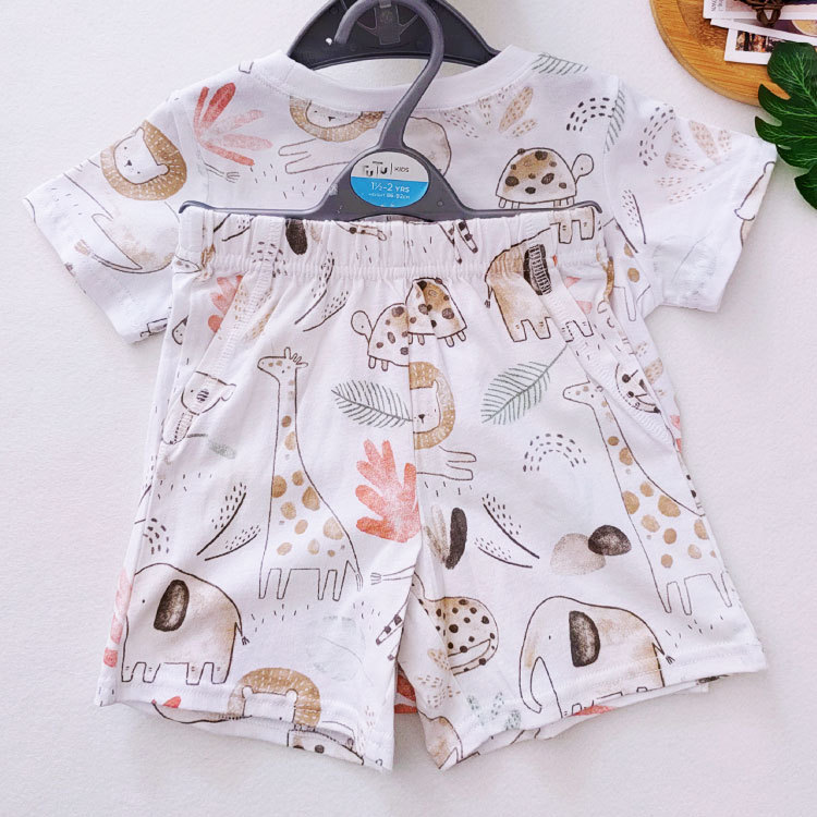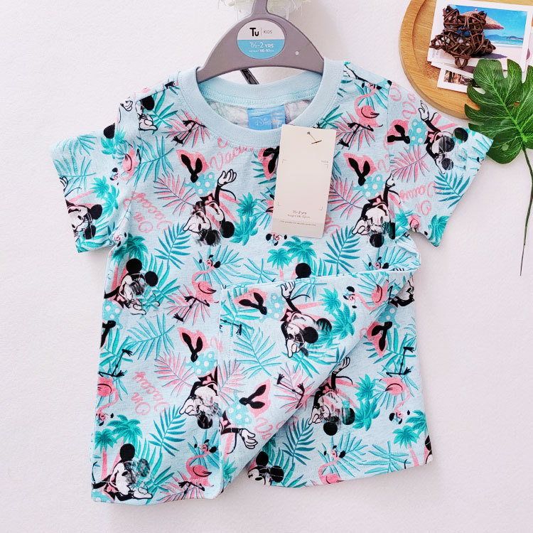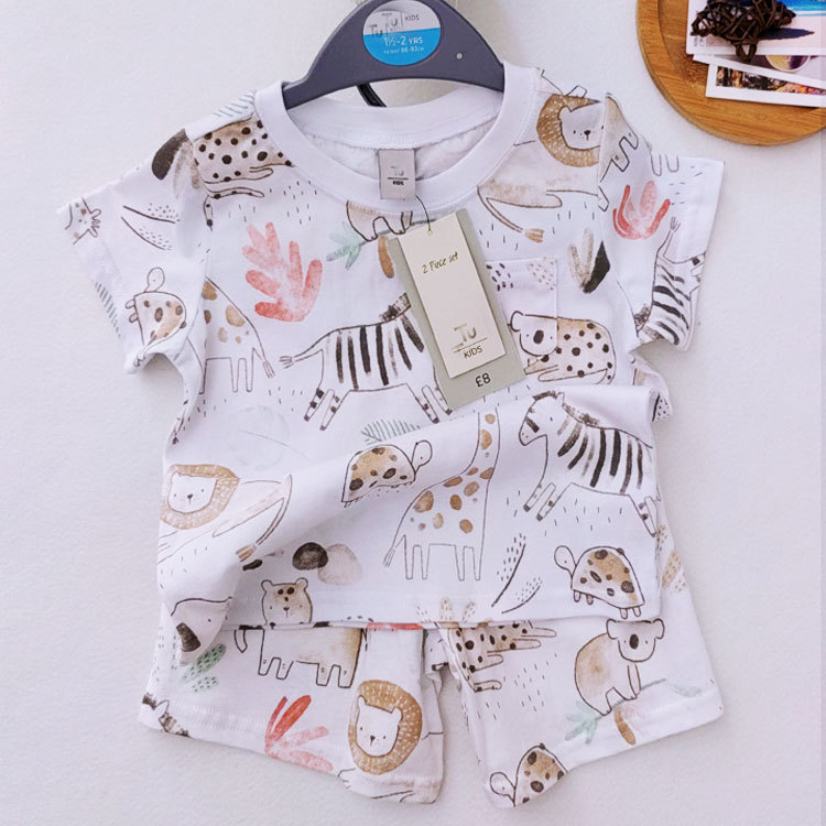 어린이 가정 옷 어린이 만화 패턴 전체 인쇄 짧은 소매 반바지 아기 여름 투피스 국경 대외 무역 도매스토어 가기