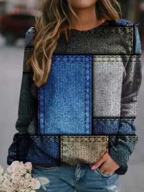 가을과 겨울 컬러 스플라이싱 크루넥 스웻셔츠 남성 및 여성용 크로스 보더 아마존 공급 승화 코트 여성용 스웻셔츠스토어 가기