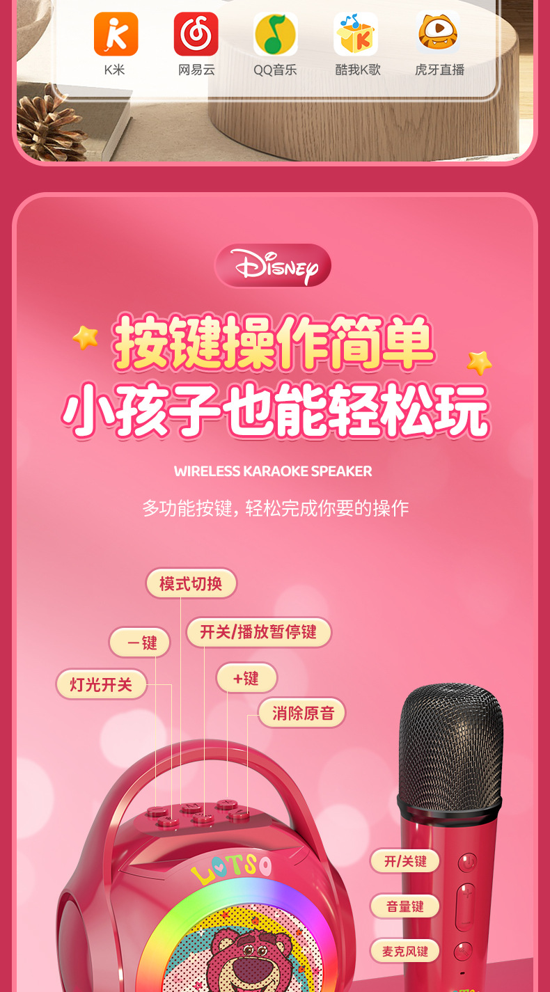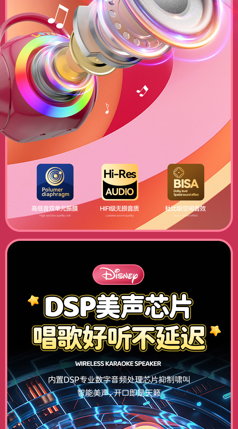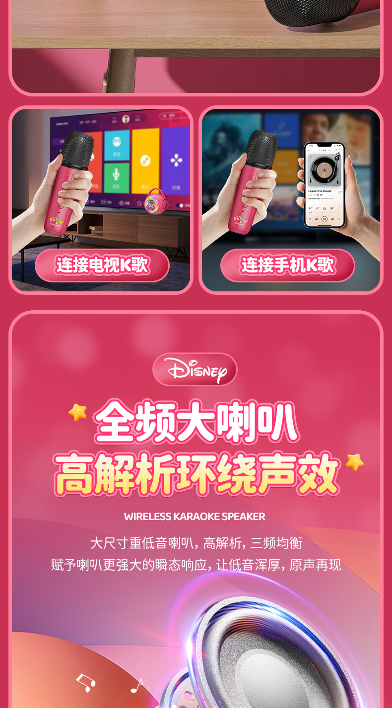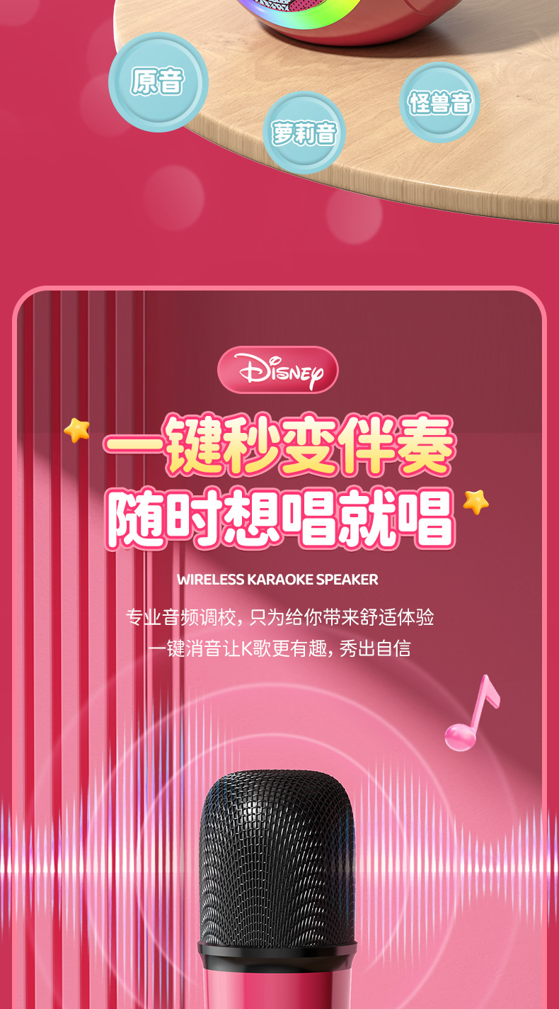 DISNEY/디즈니 KTV 마이크 오디오 통합 마이크 휴대 전화 블루투스 노래 어린이 전국 노래방
