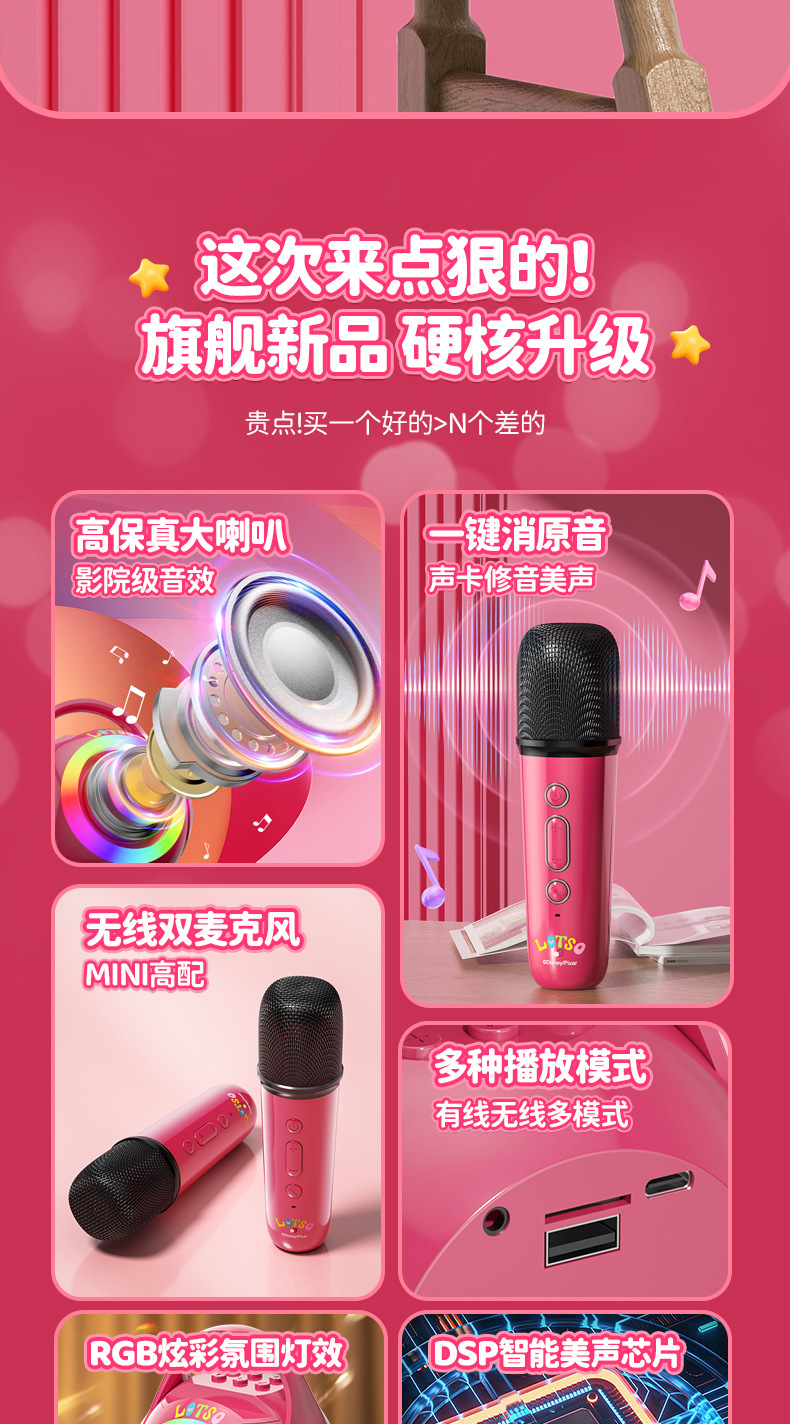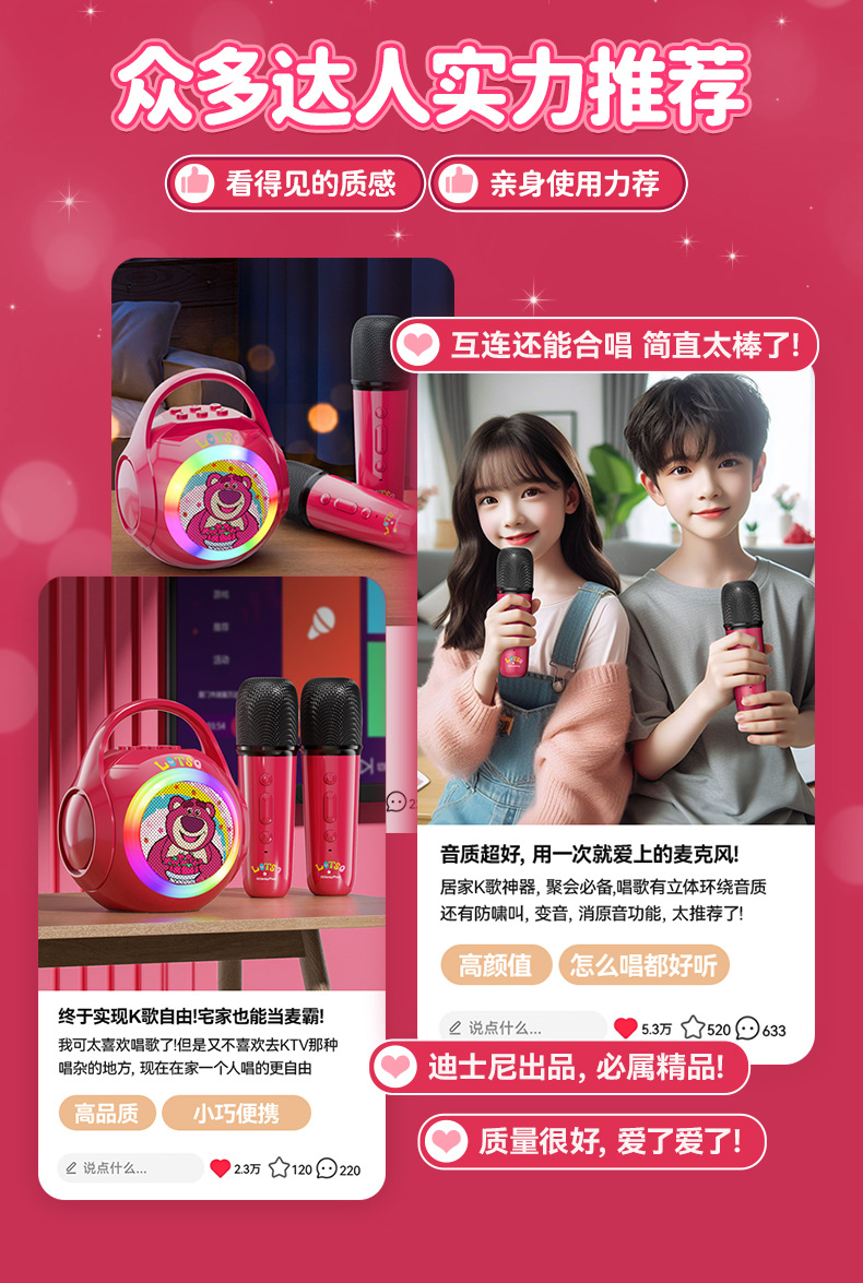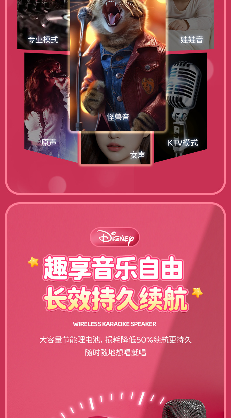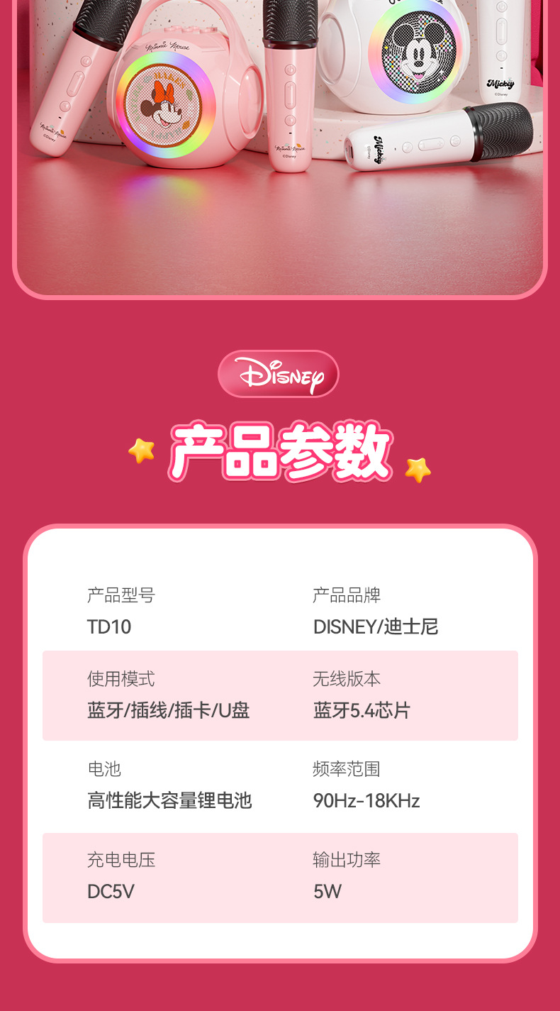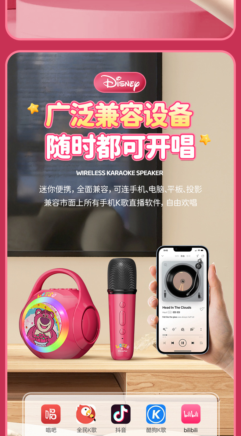 DISNEY/디즈니 KTV 마이크 오디오 통합 마이크 휴대 전화 블루투스 노래 어린이 전국 노래방