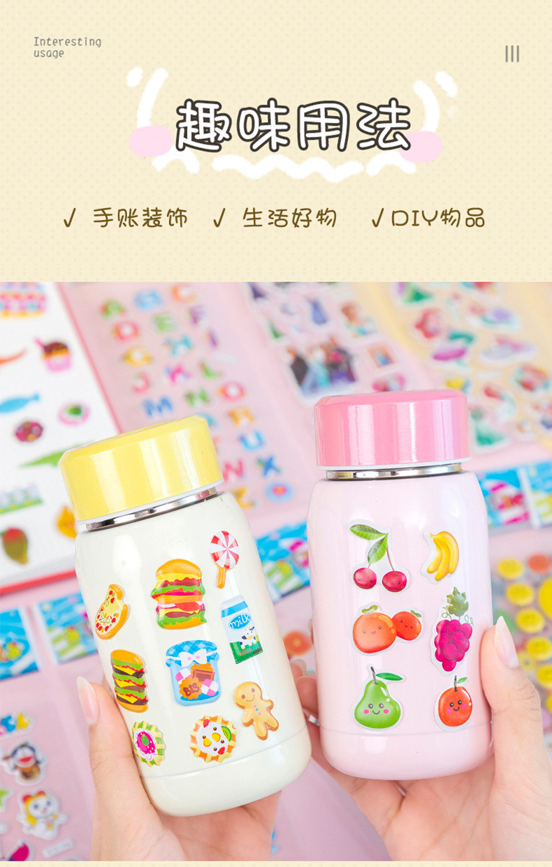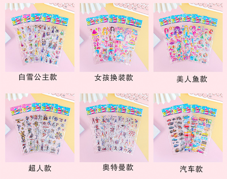 3D 스테레오 버블 스티커 종이 스티커 어린이 만화 스티커 애니메이션 공주 스티커 유치원 상 스티커 도매스토어 가기