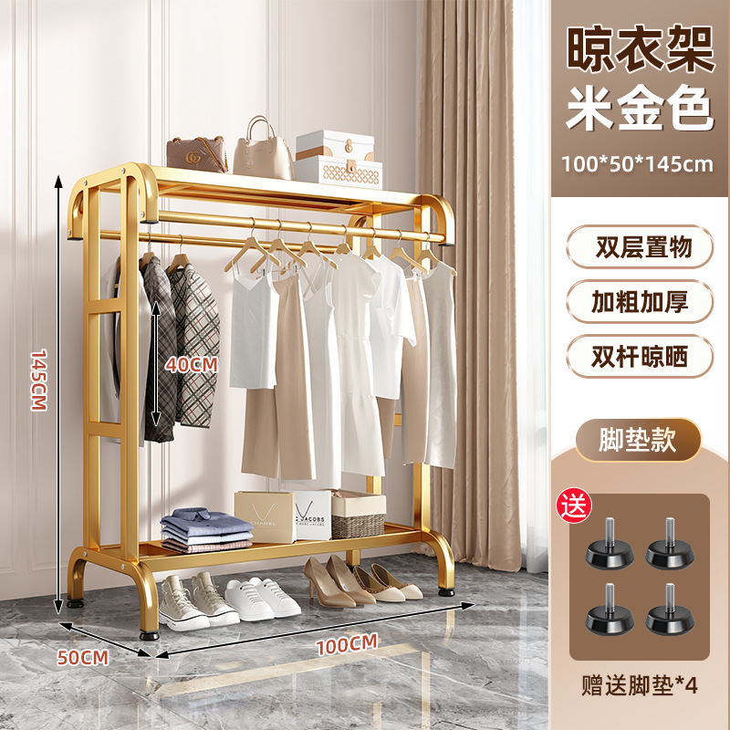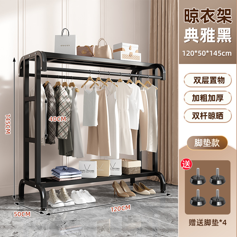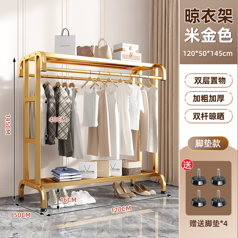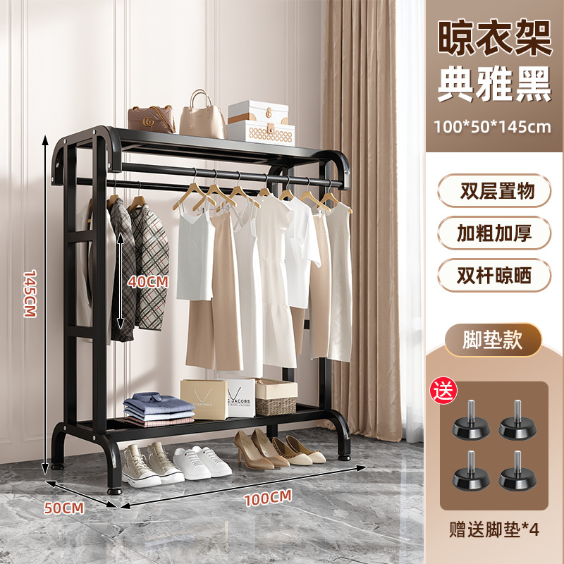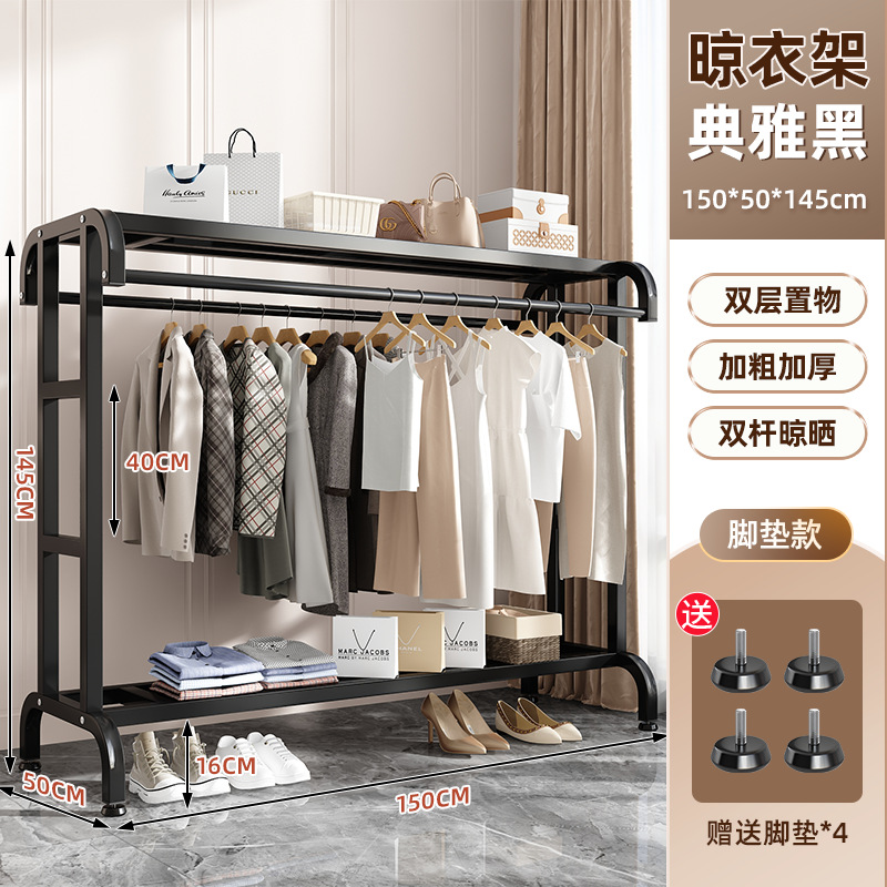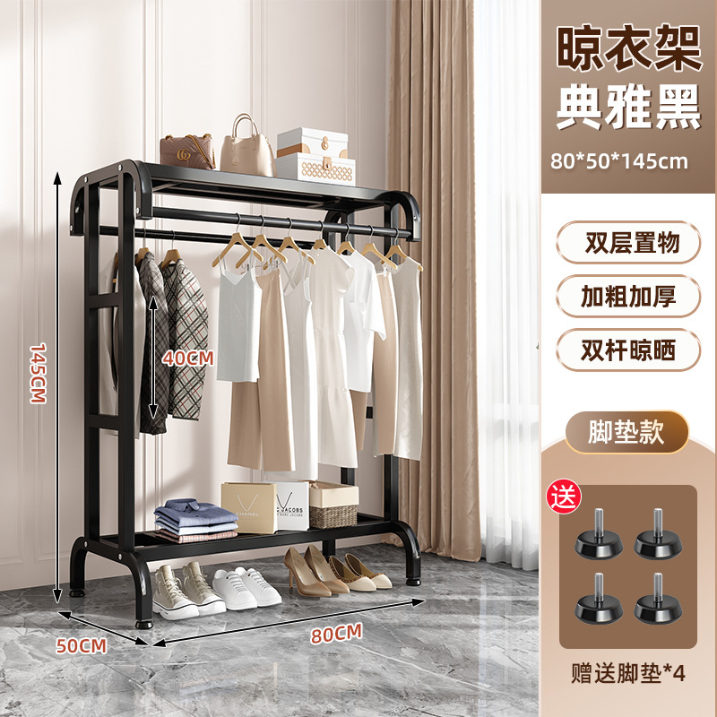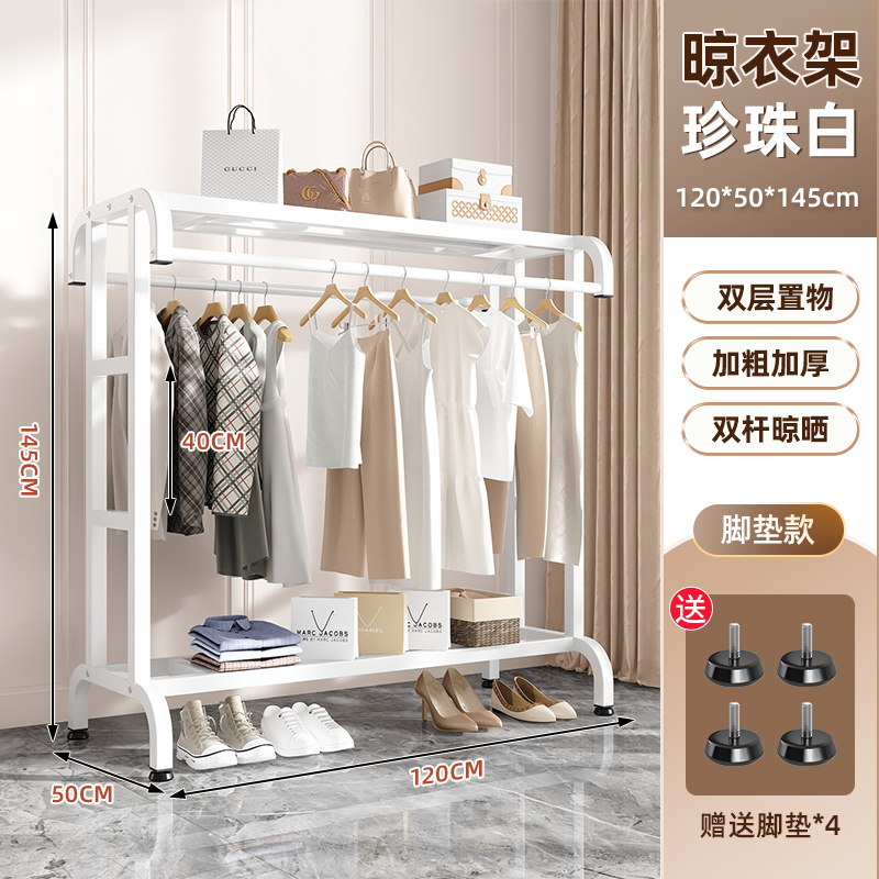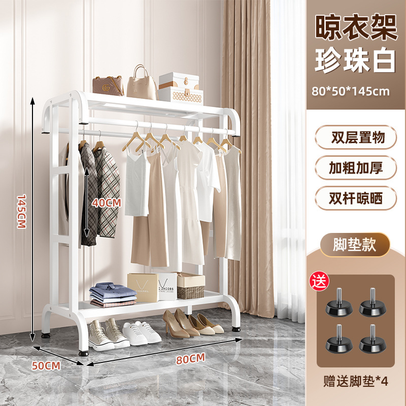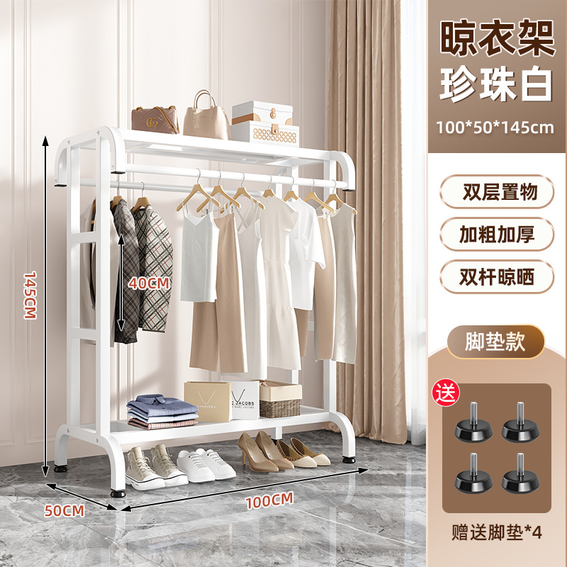 간단한 코트 랙 더블 로드 건조 랙 바닥 실내 방 걸이 가정용 침실 옷 보관 랙