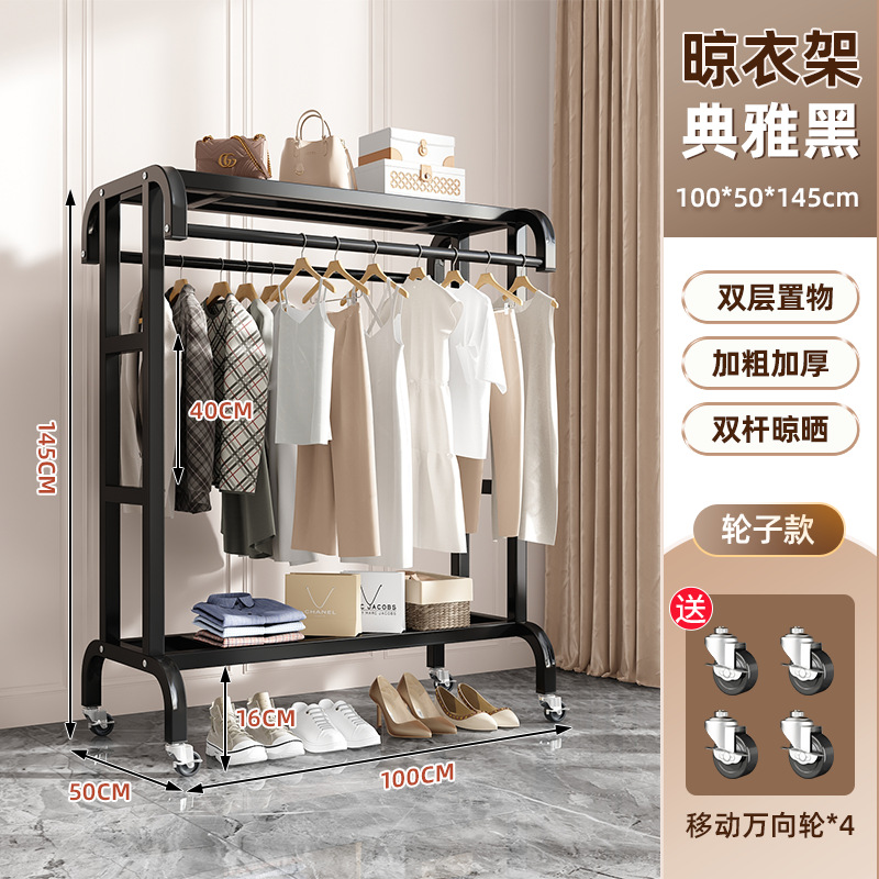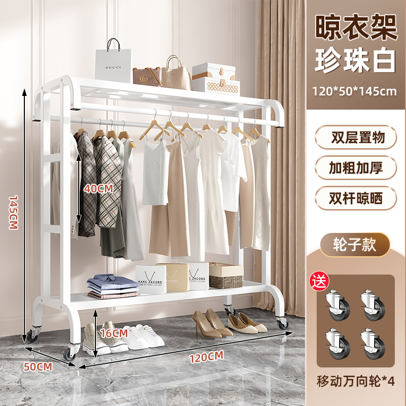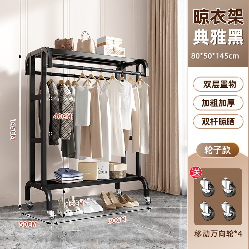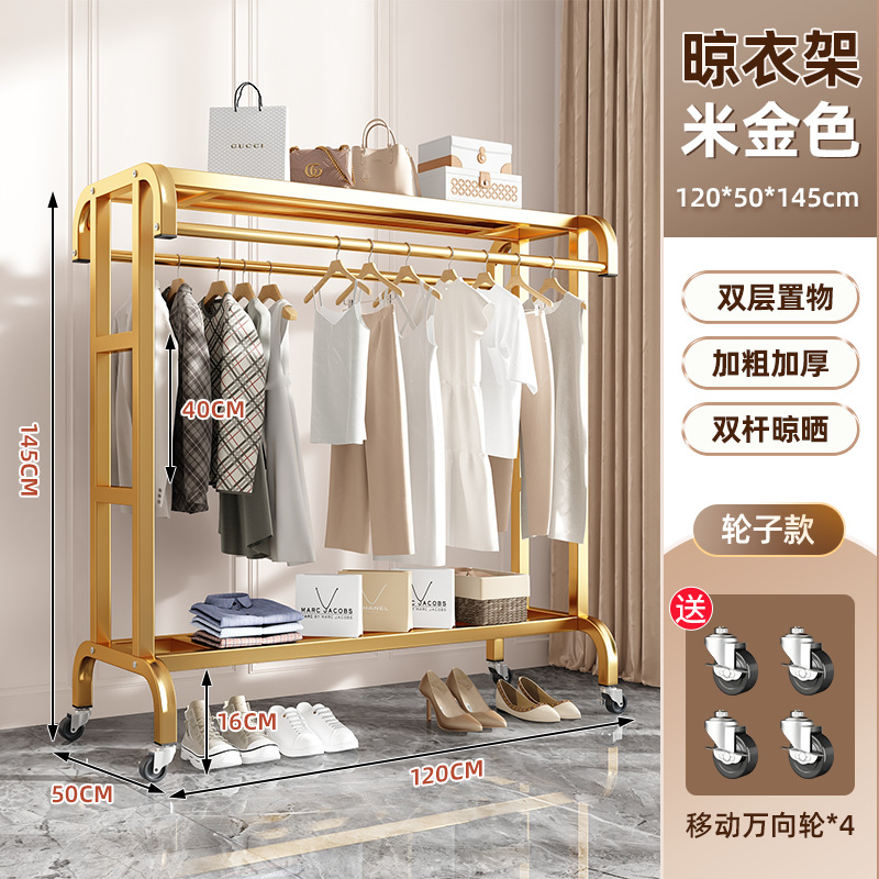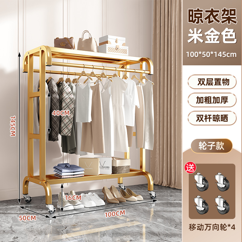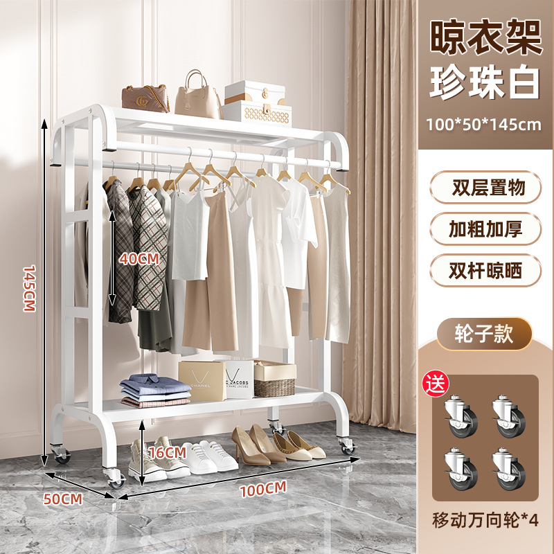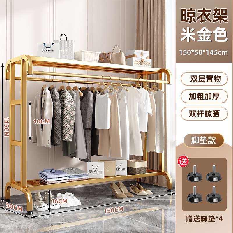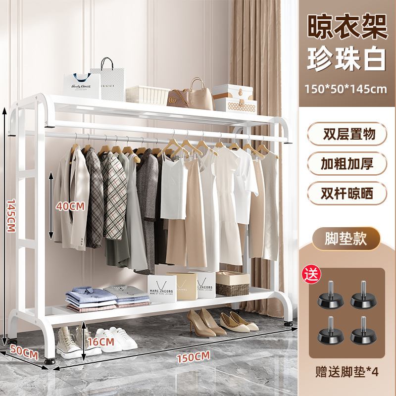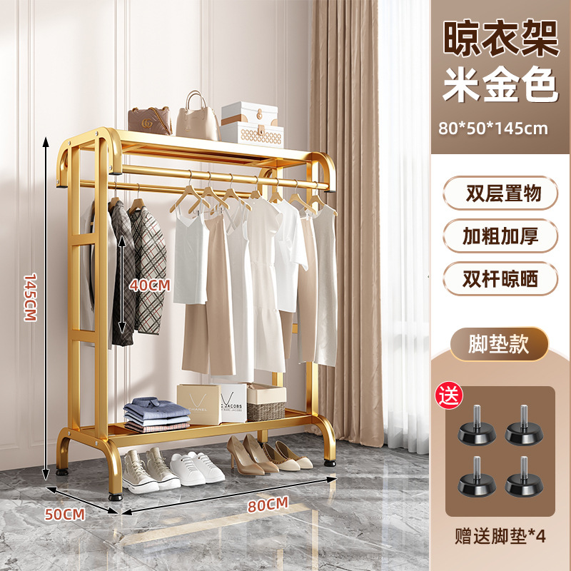 간단한 코트 랙 더블 로드 건조 랙 바닥 실내 방 걸이 가정용 침실 옷 보관 랙