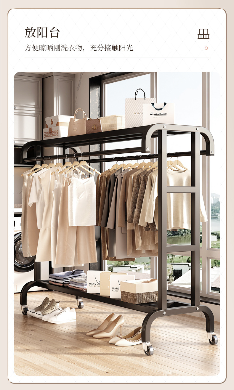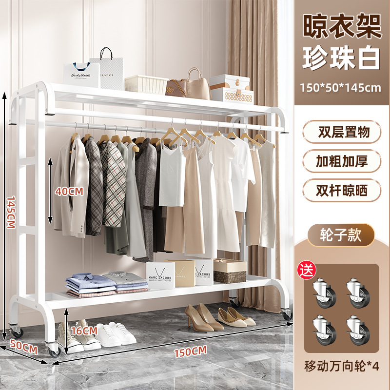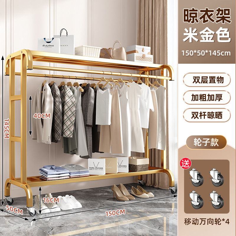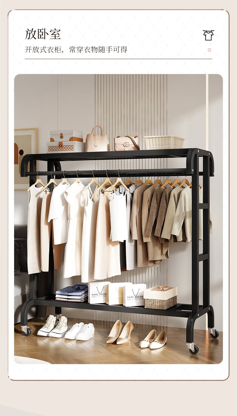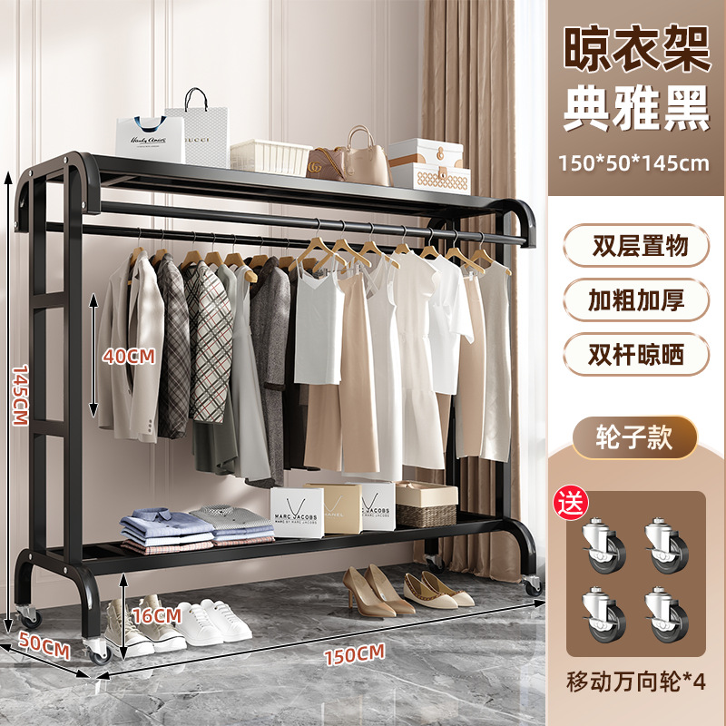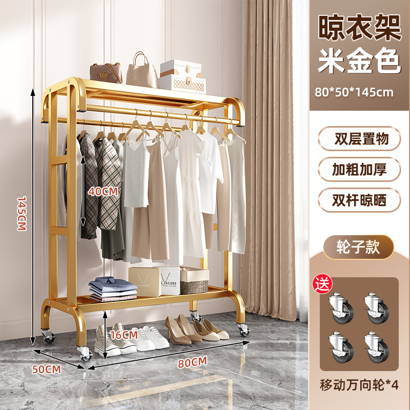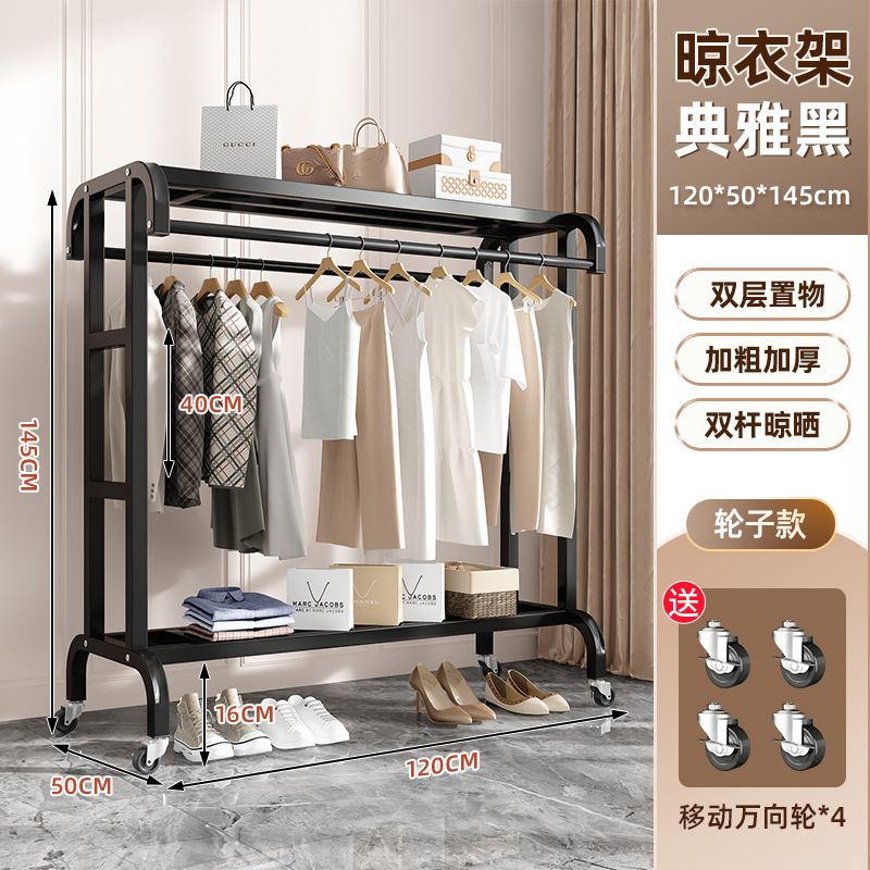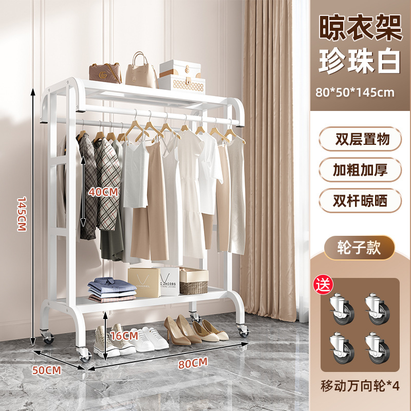 간단한 코트 랙 더블 로드 건조 랙 바닥 실내 방 걸이 가정용 침실 옷 보관 랙
