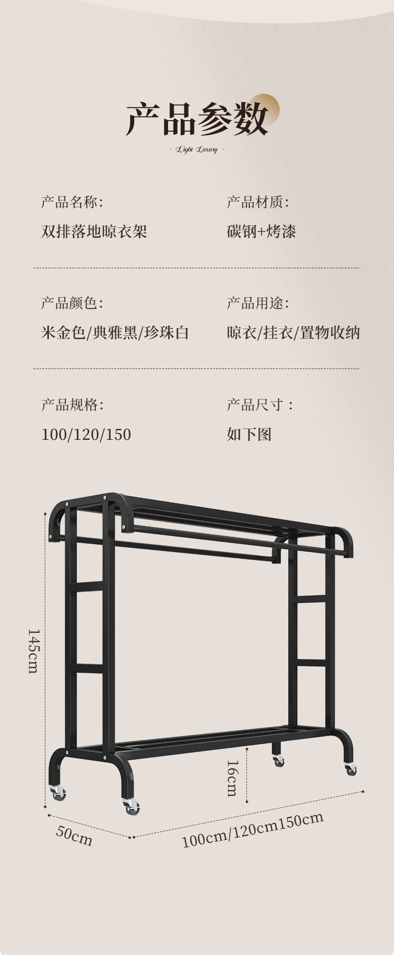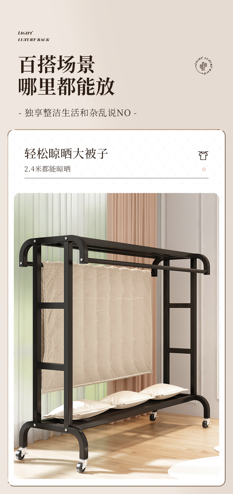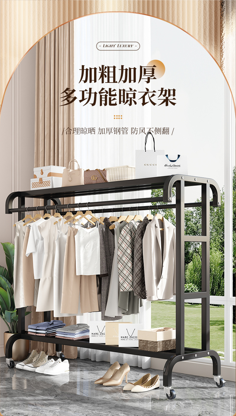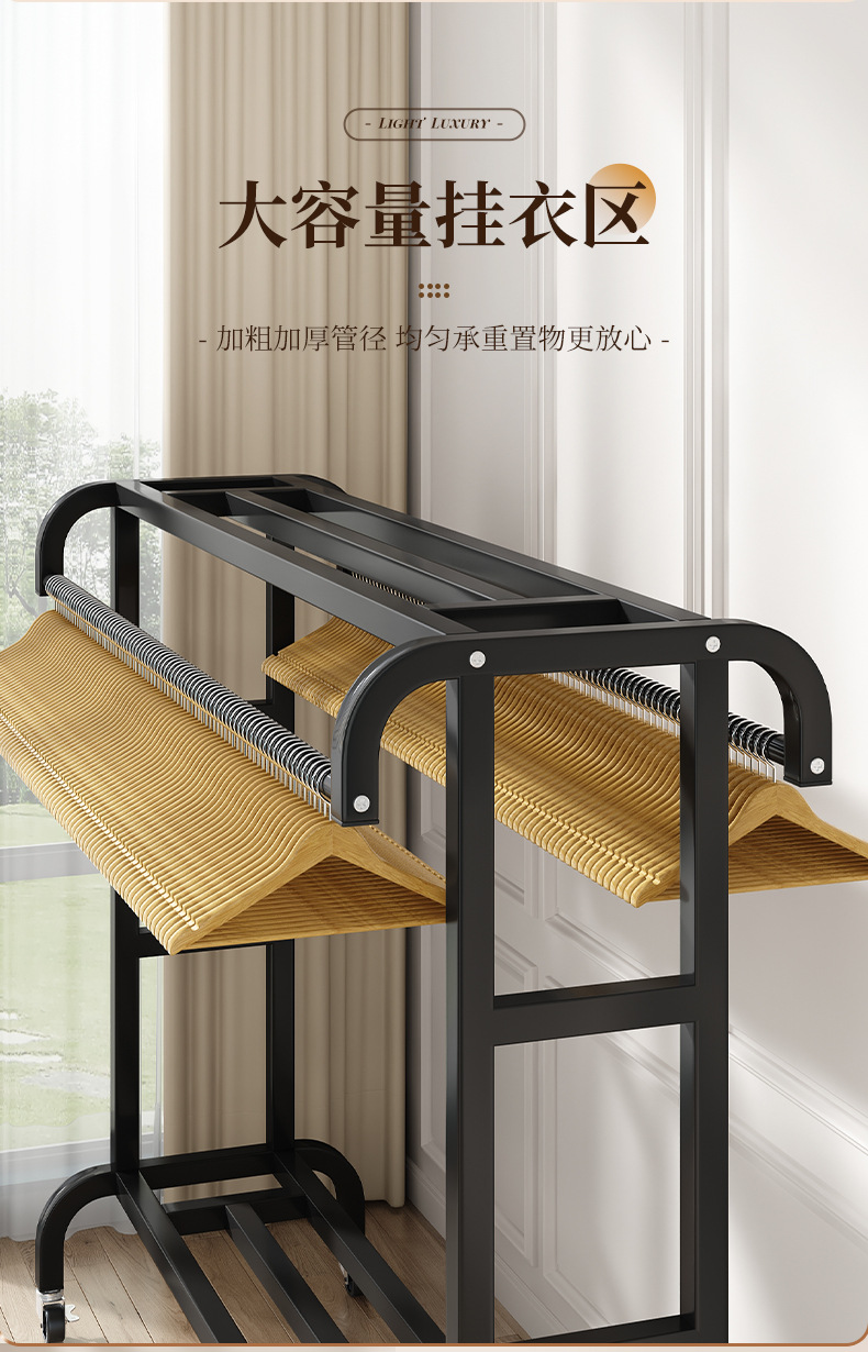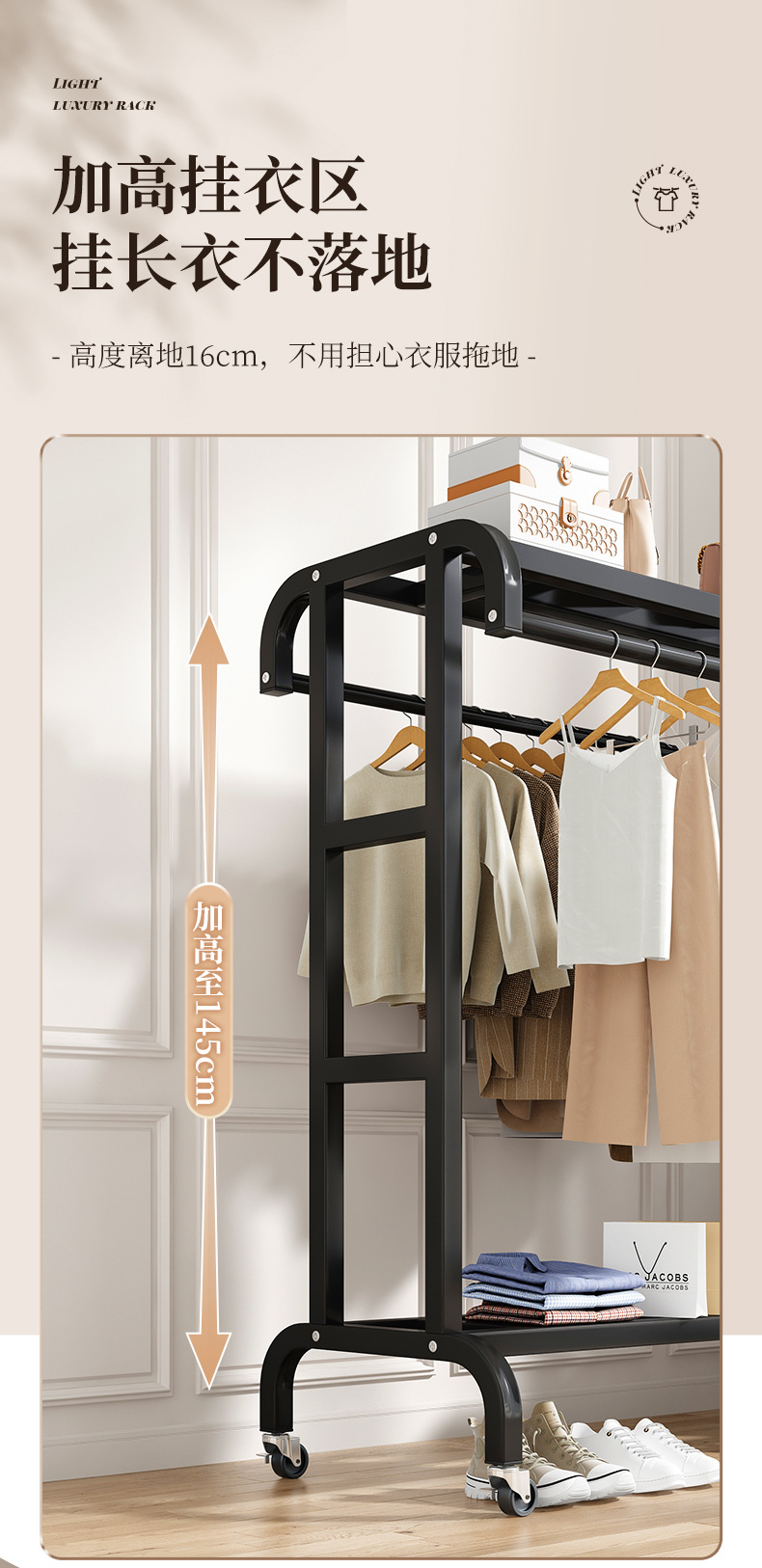 간단한 코트 랙 더블 로드 건조 랙 바닥 실내 방 걸이 가정용 침실 옷 보관 랙