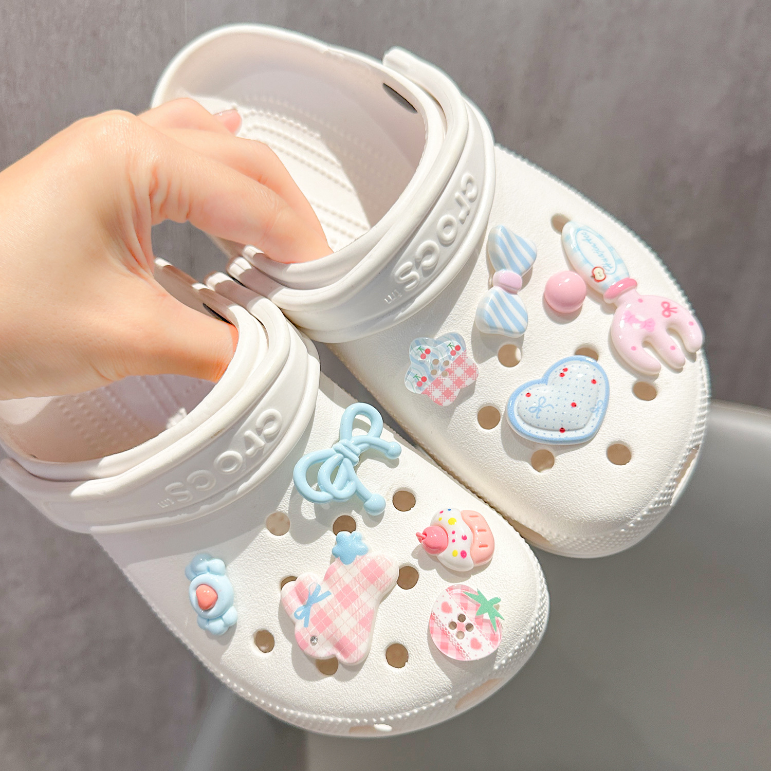 슬리핑 스타 나막신 액세서리, 고급 신발 버클 액세서리, 크로스 신발 버클 만화 DIY 액세서리스토어 가기