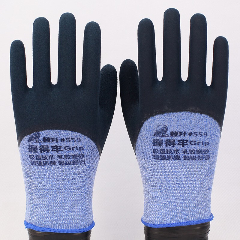 도매 Dengsheng 그립 #559 세미 행잉 담근 표면 샌딩 기술 미끄럼 방지 내마모성 편안한 노동 보호 장갑
